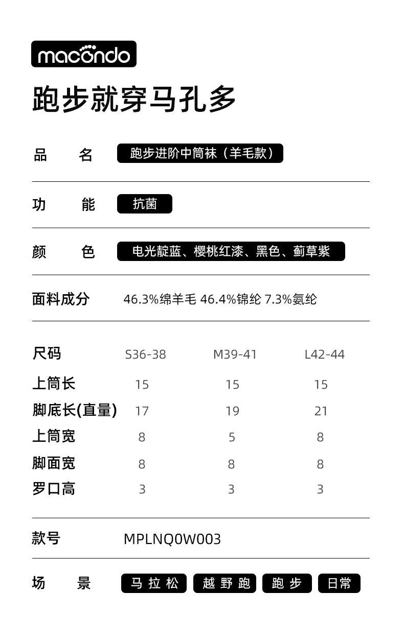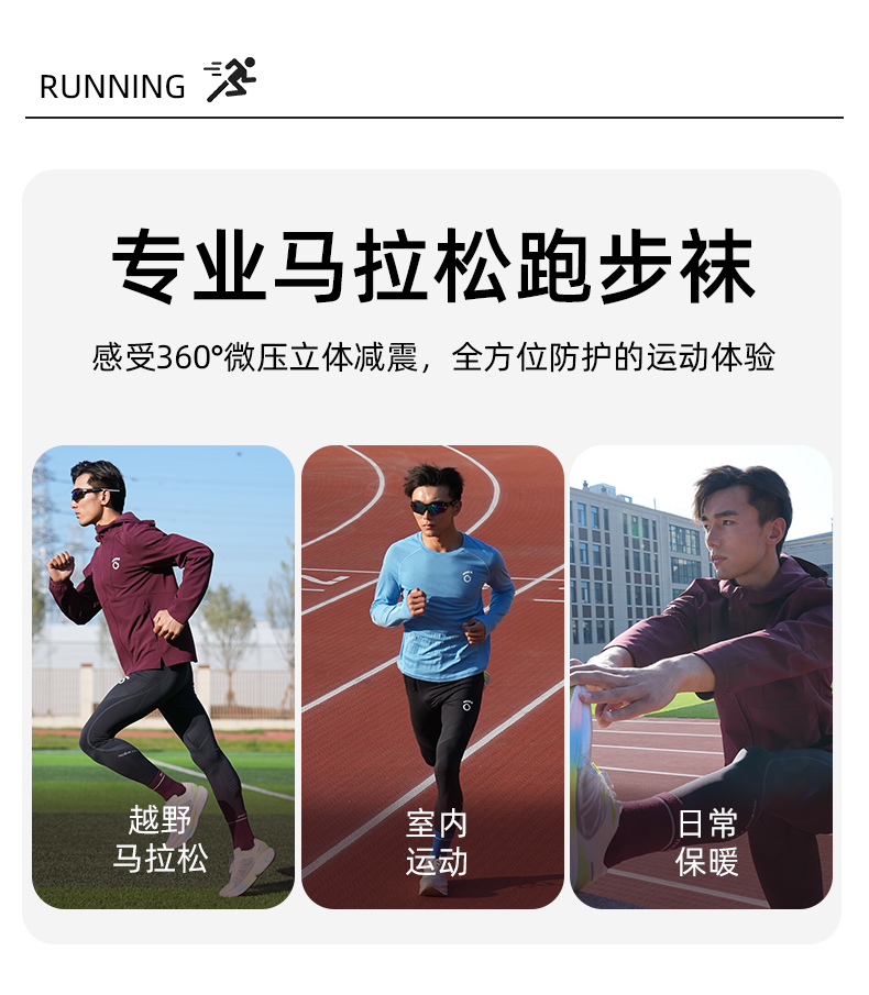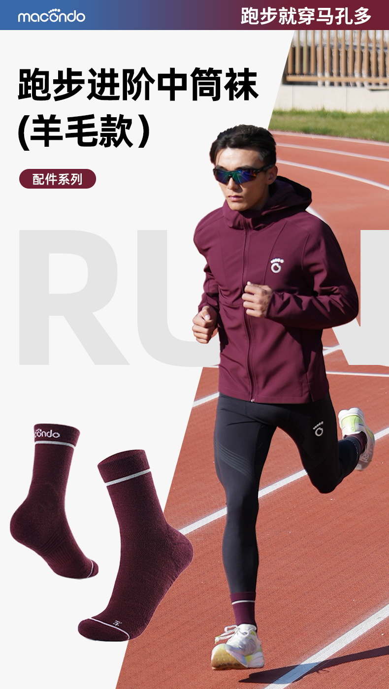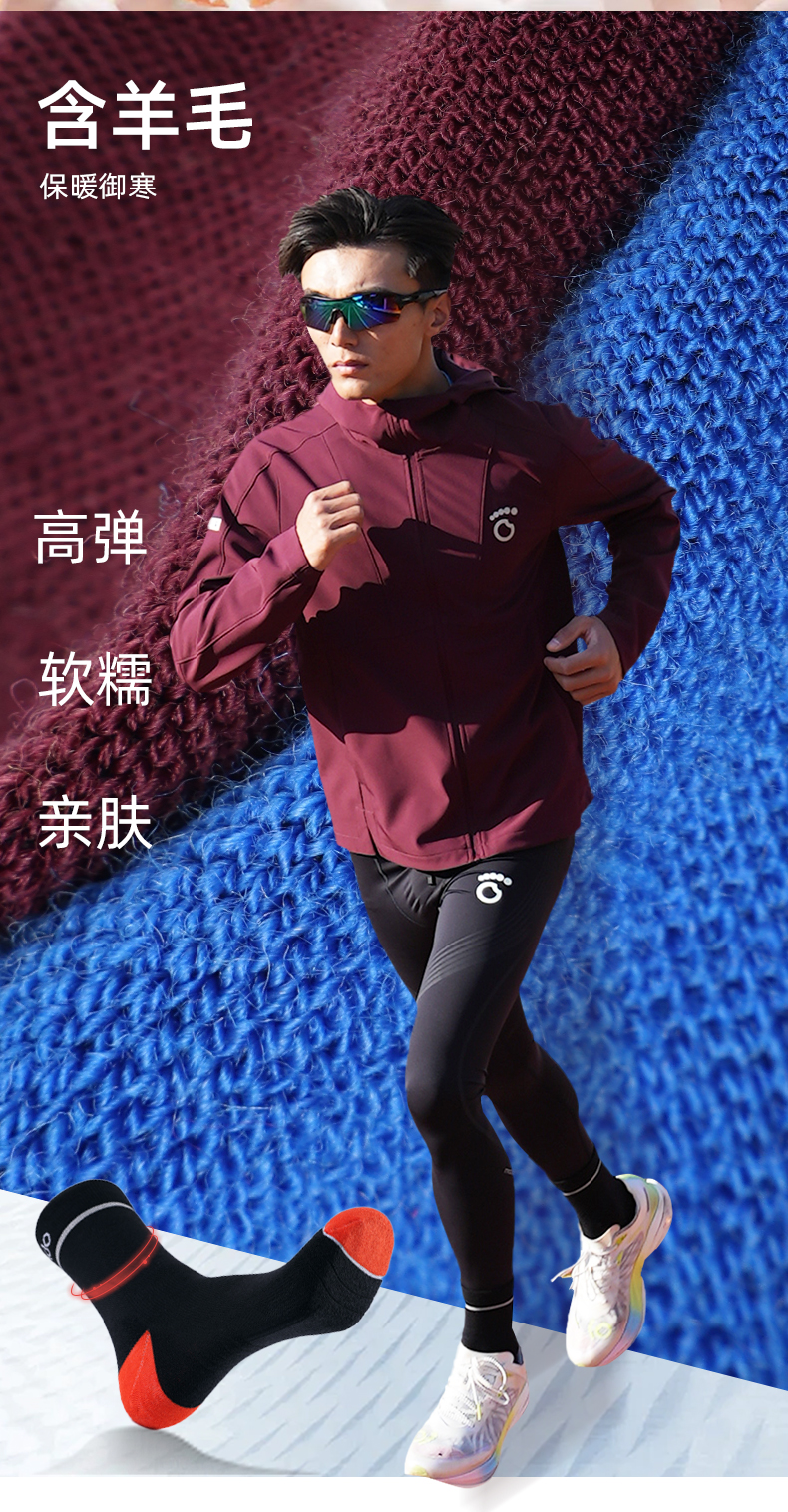 跑步进阶中筒羊毛袜 抗菌 含46.3%羊毛 立体缓冲 支撑透气 无骨缝合
