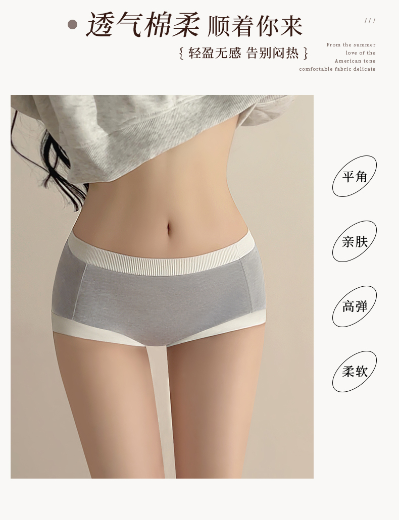 【7A抑菌】洁丽雅3条装中腰女士纯棉平角内裤清新撞色包臀内裤女