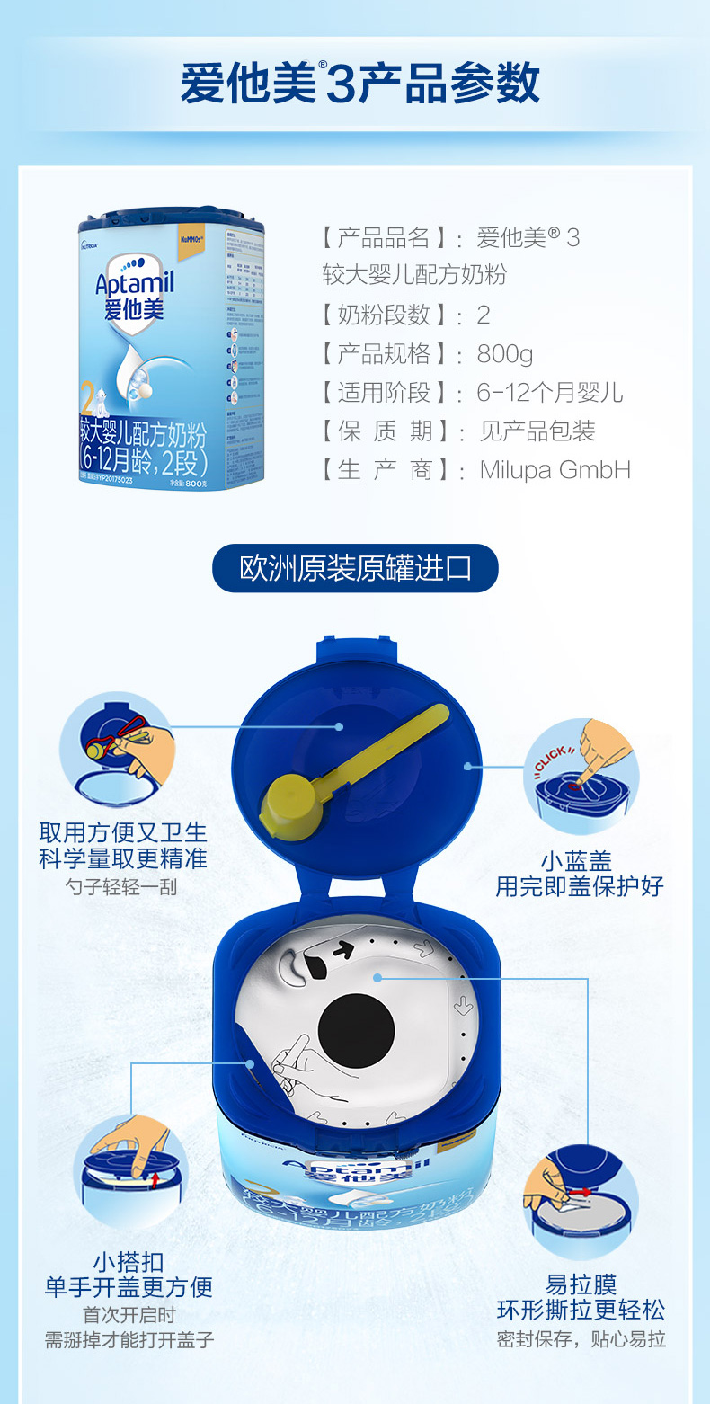 爱他美经典版2段较大婴儿配方奶粉 800g/ATM-527572