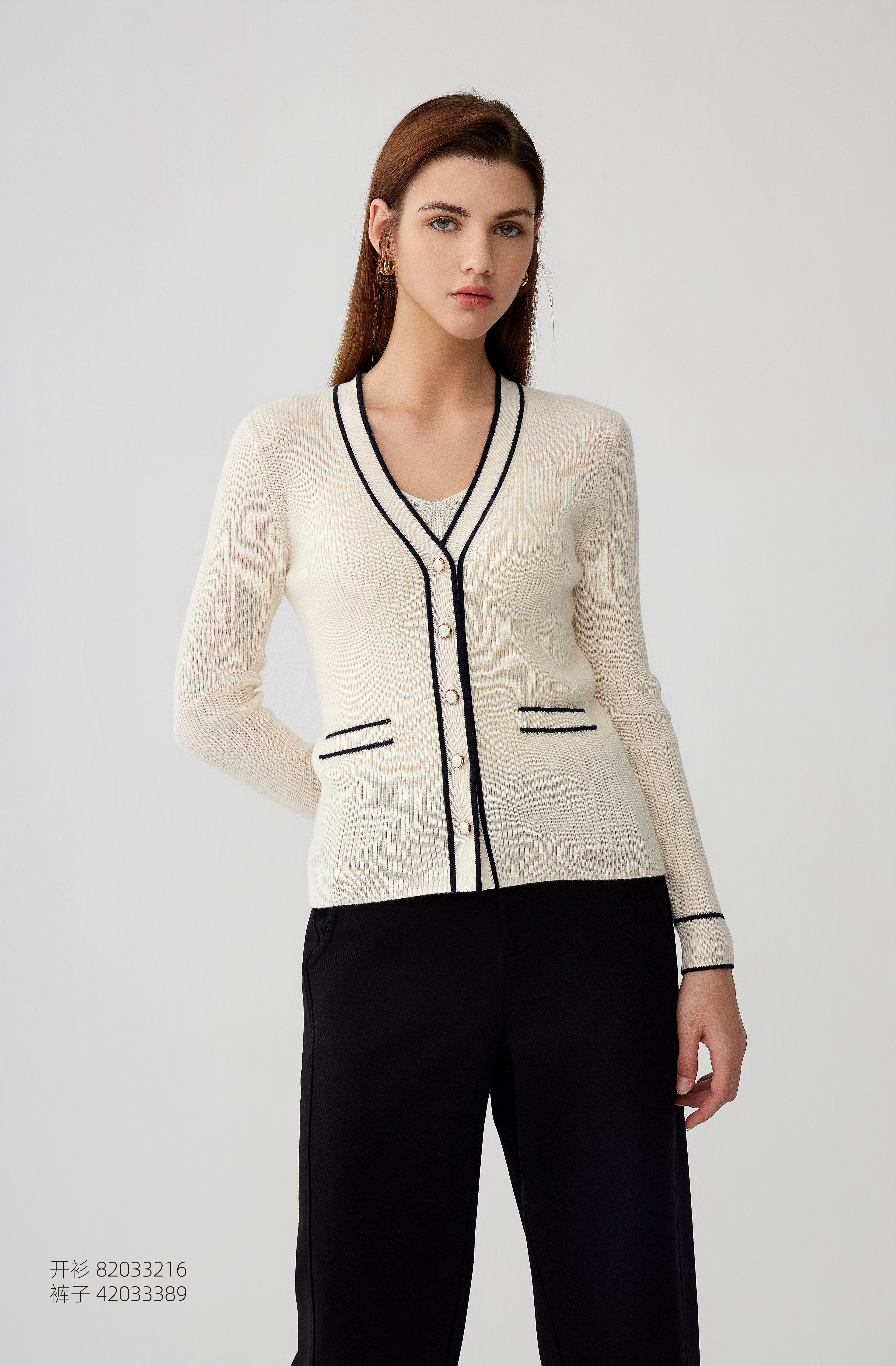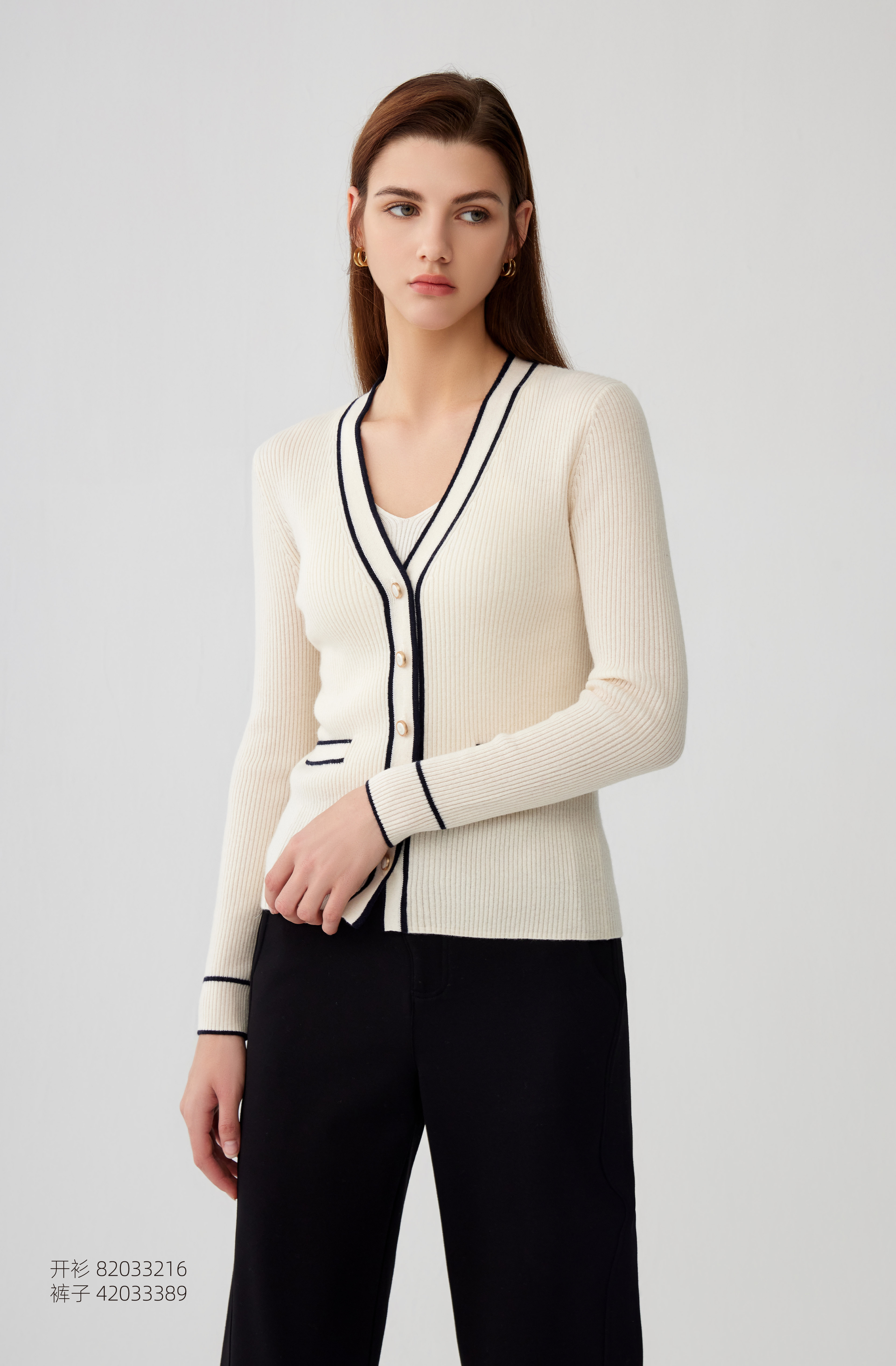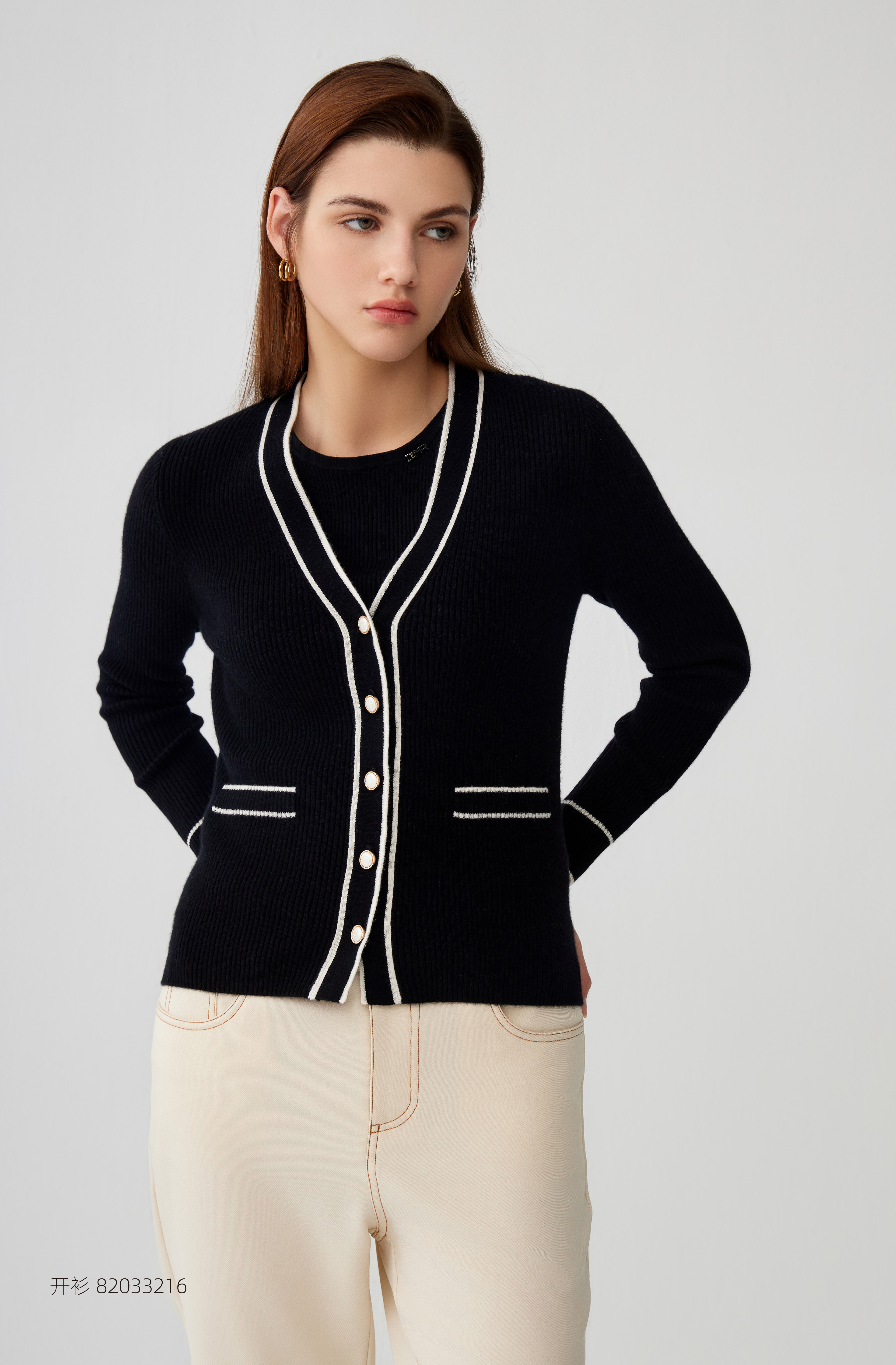 【半价款羊绒开衫】羊绒世家23年秋冬新品100%山羊绒衫条纹撞色小外套