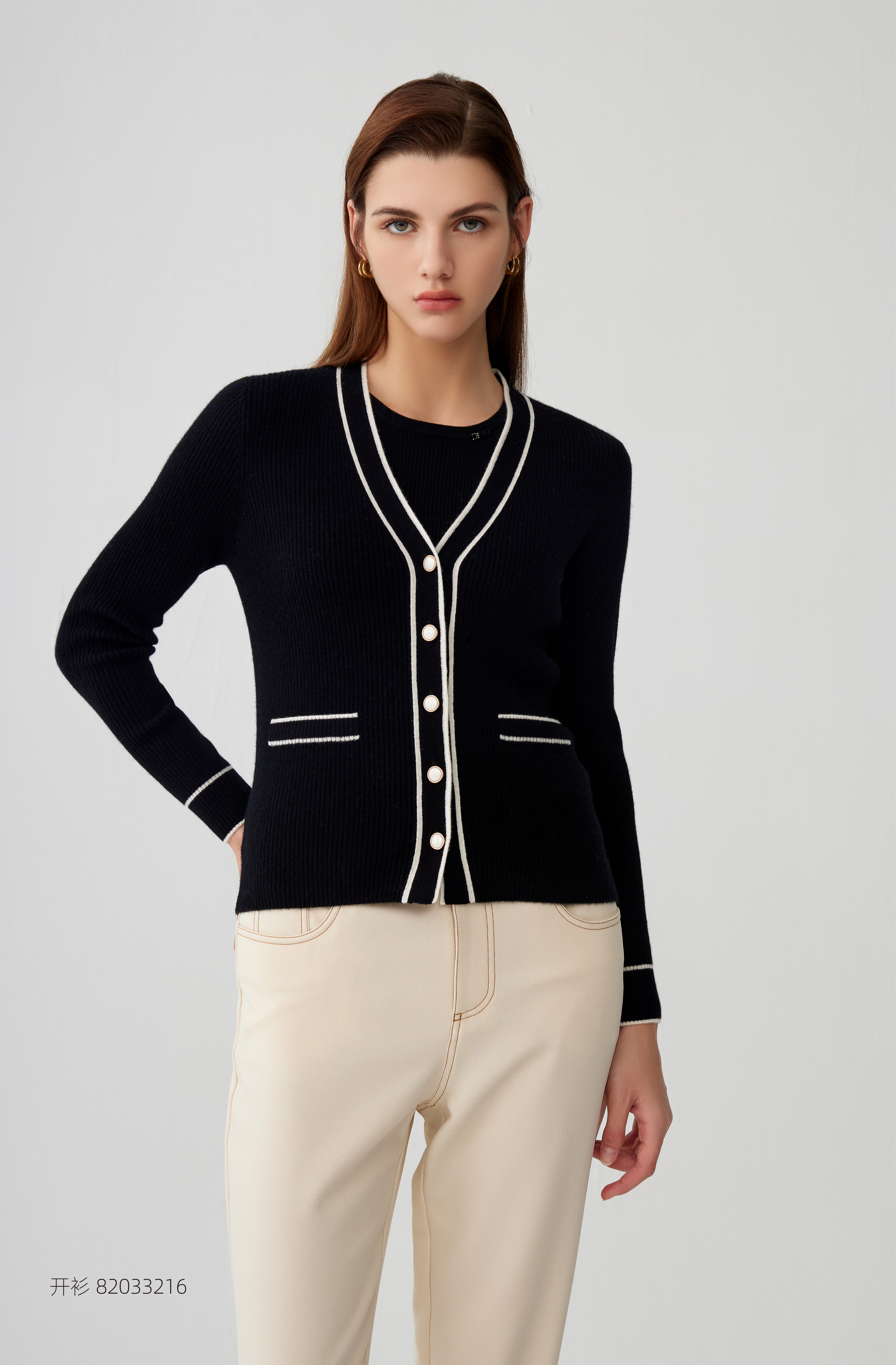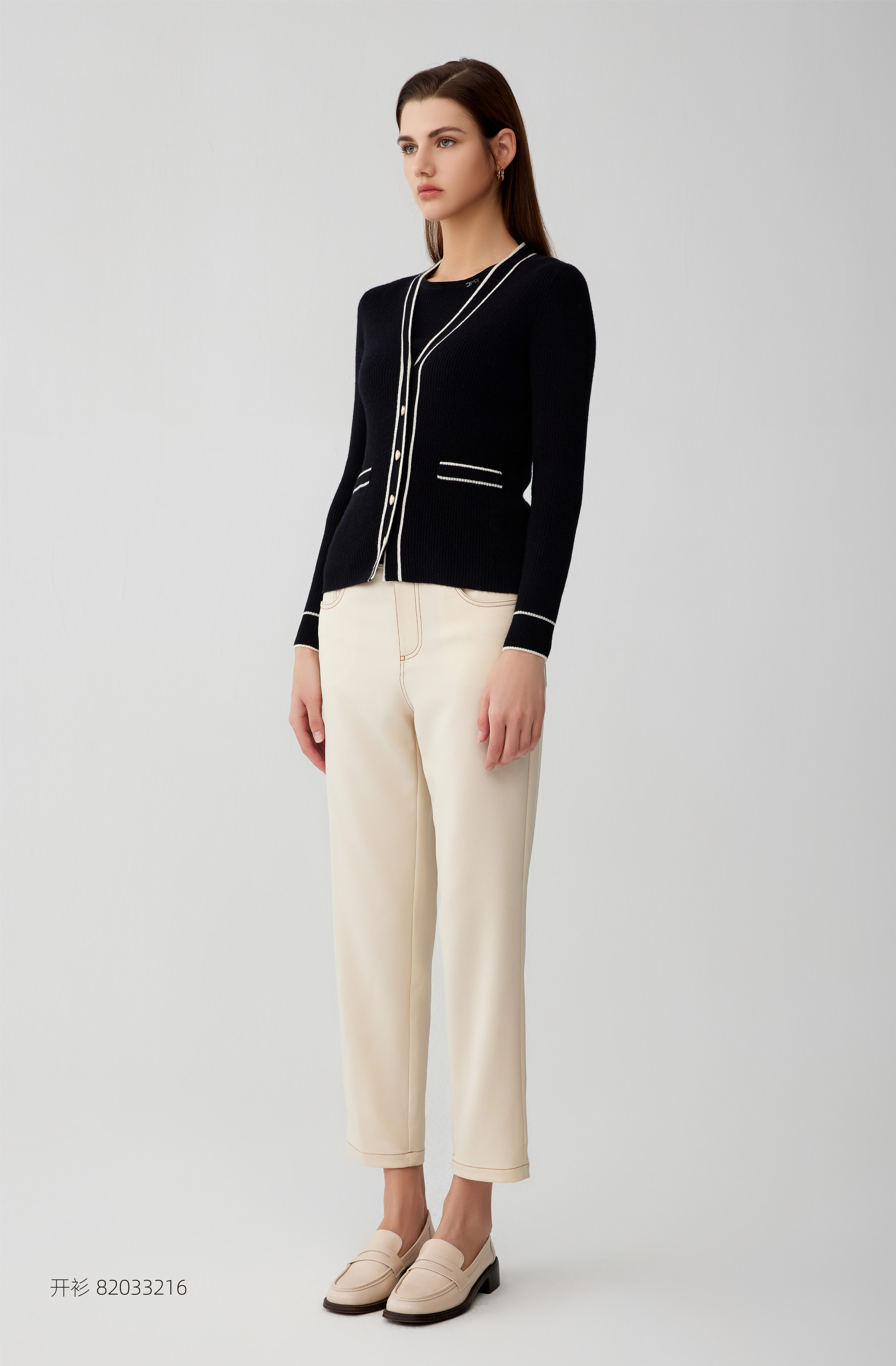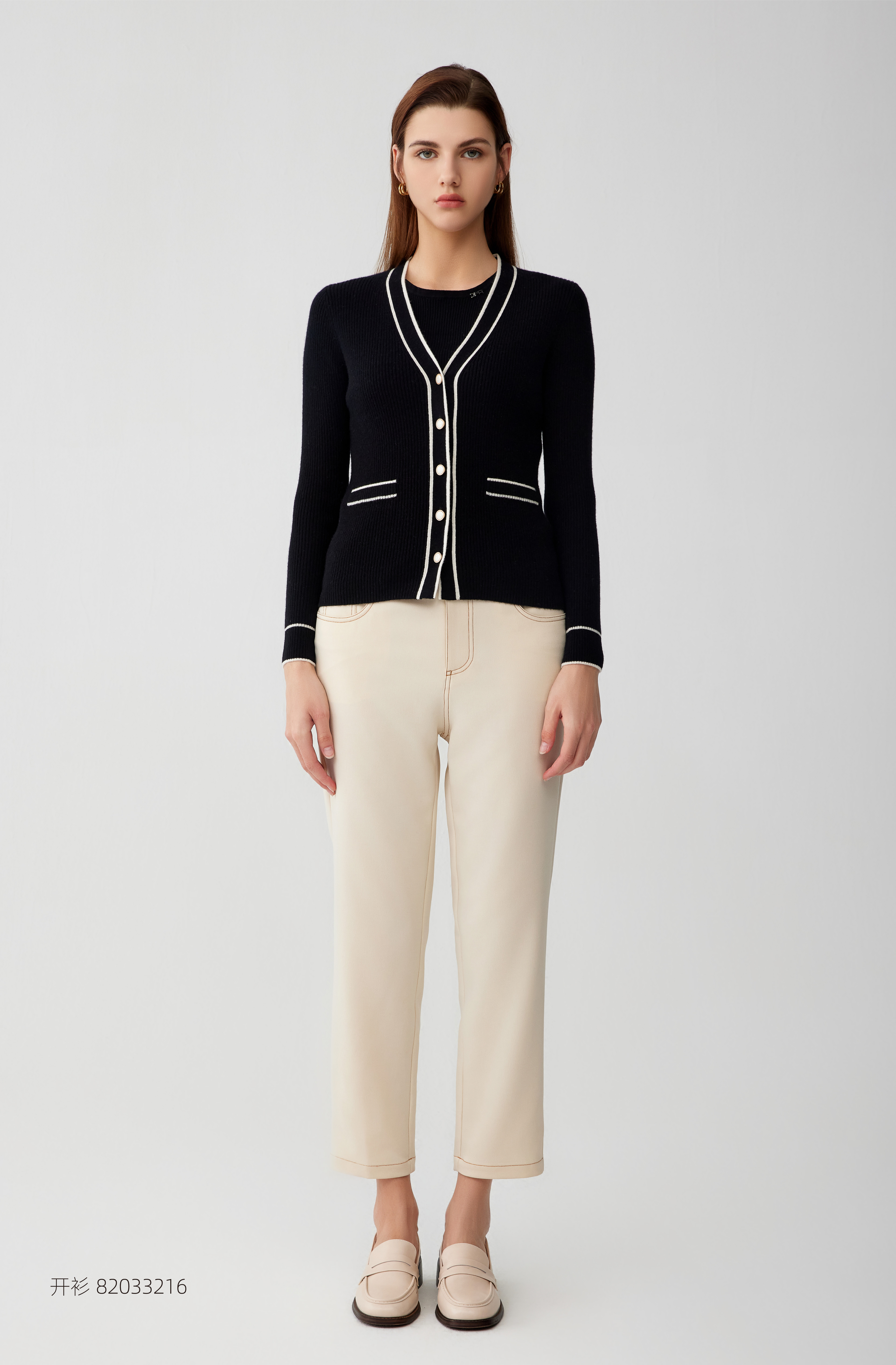 【半价款羊绒开衫】羊绒世家23年秋冬新品100%山羊绒衫条纹撞色小外套