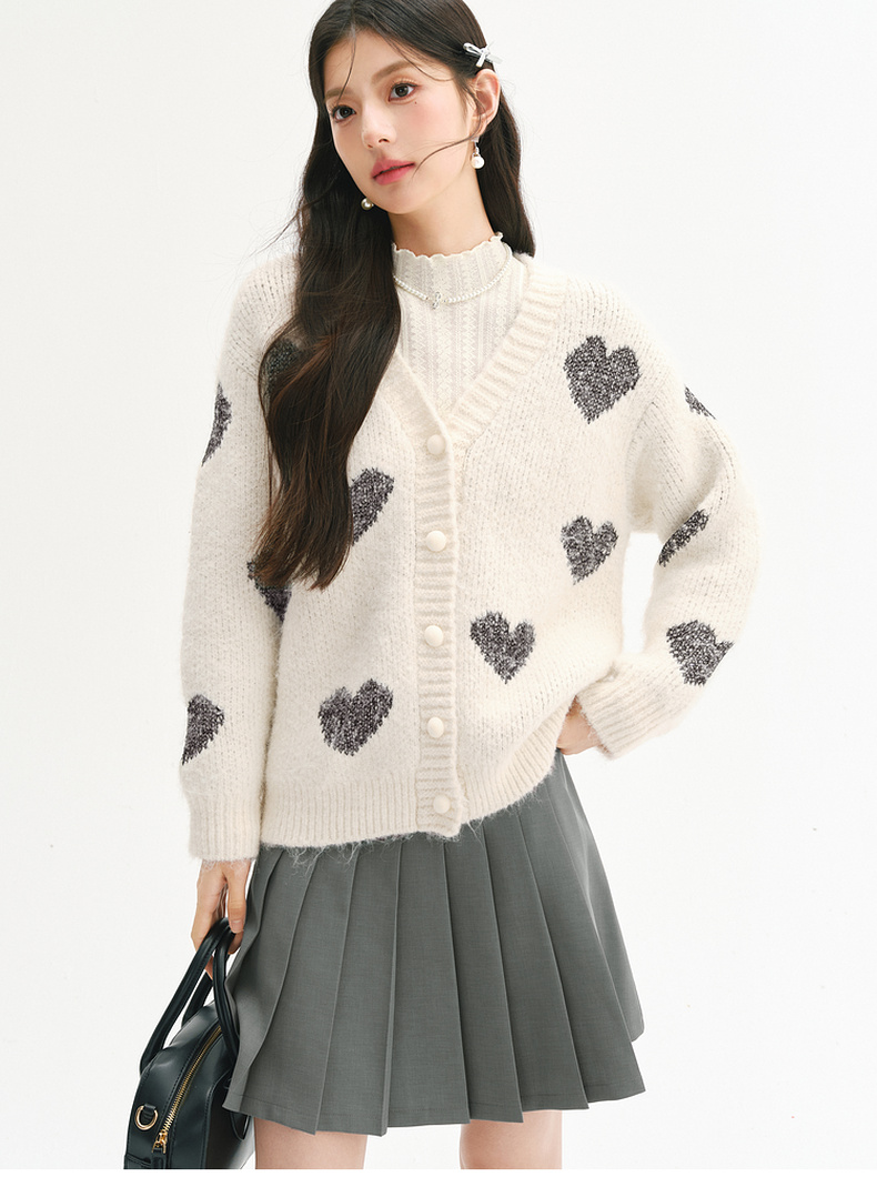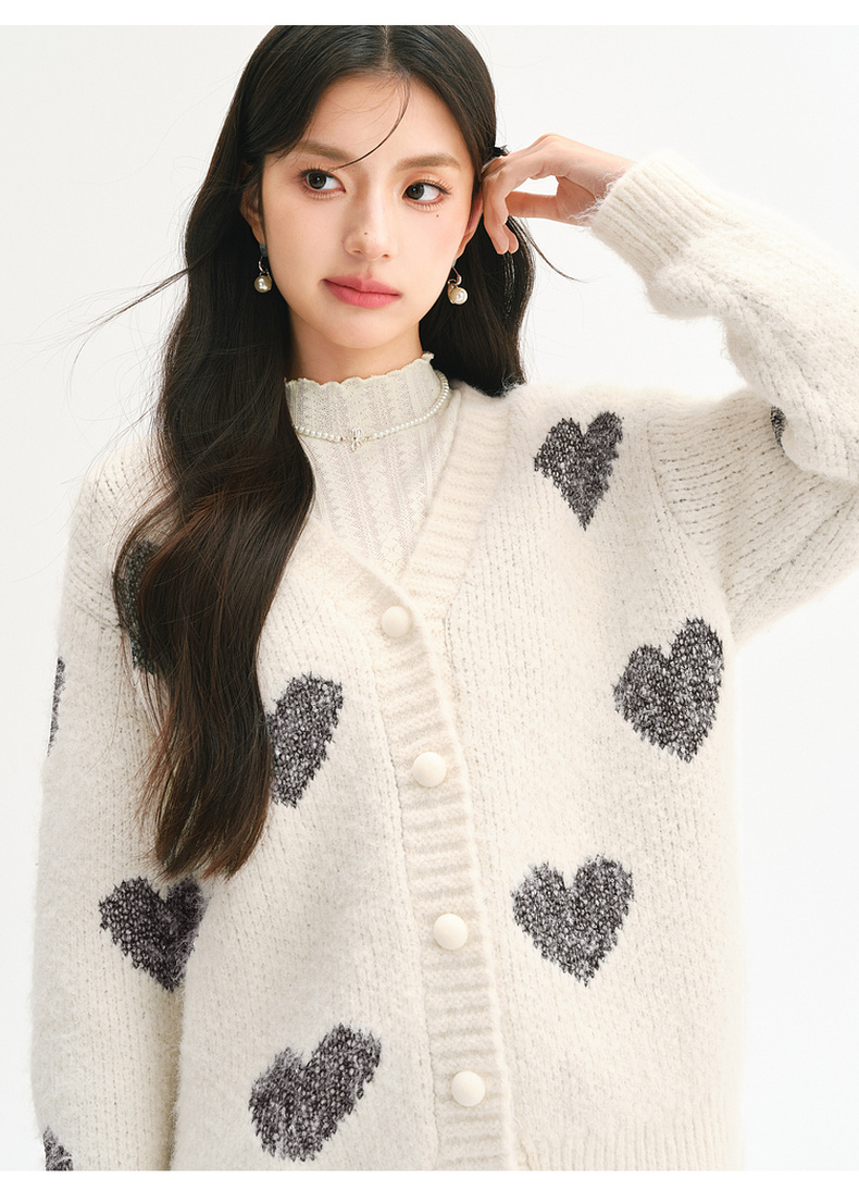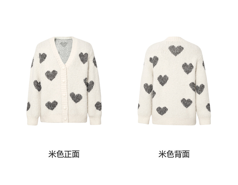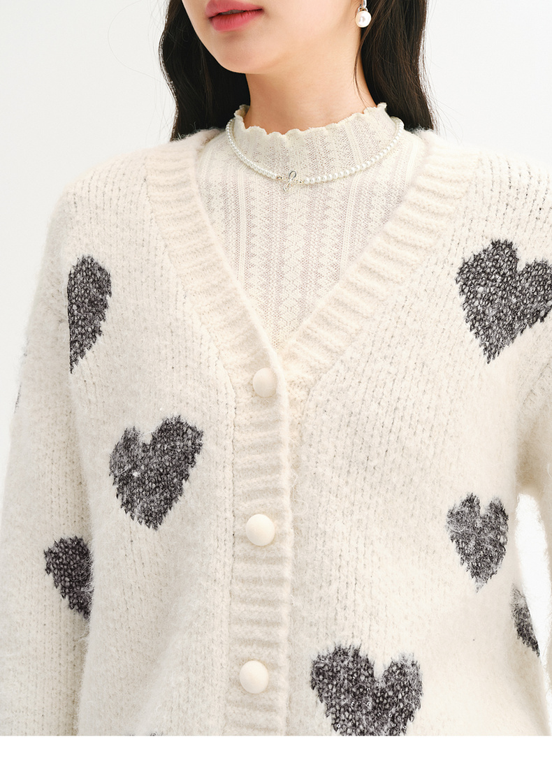 【严选】诗凡黎爱心珠片提花针织开衫2025春新款时髦洋气宽松百搭羊毛外套7FC131531