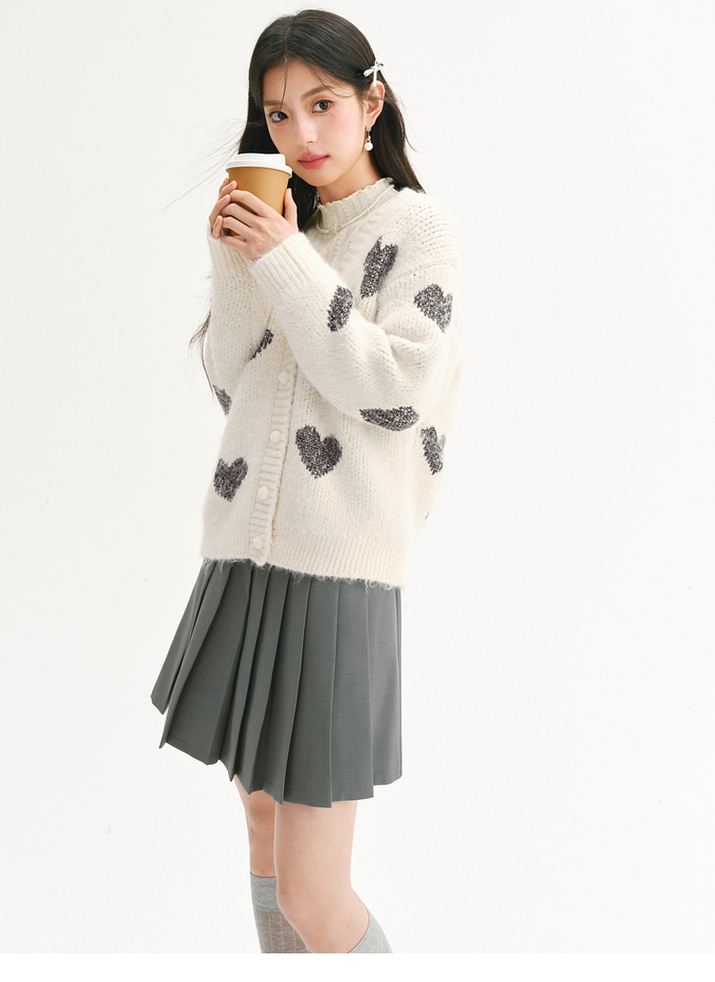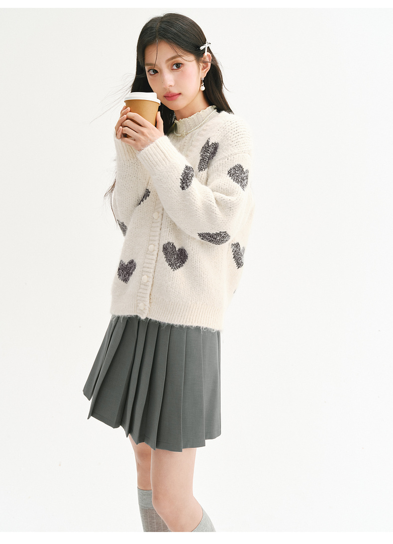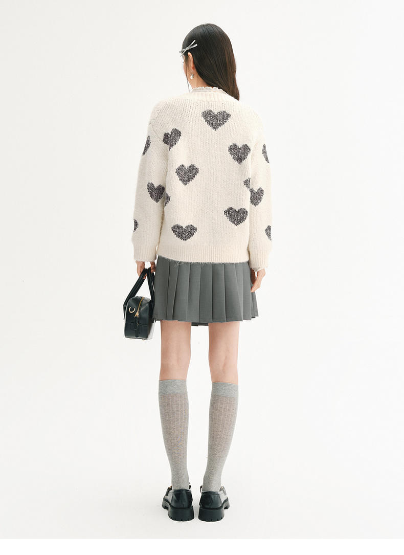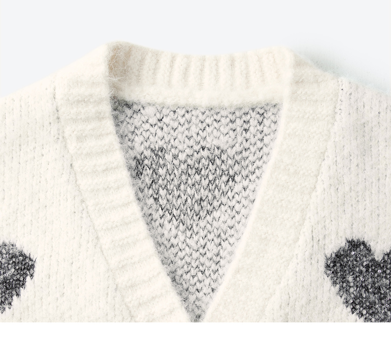 【严选】诗凡黎爱心珠片提花针织开衫2025春新款时髦洋气宽松百搭羊毛外套7FC131531