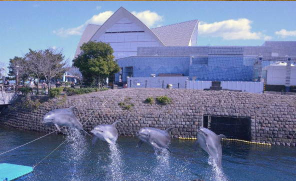 此外,从屋久岛、种子岛到与论岛连绵的群岛【西南诸岛】周围珊瑚礁发达。这里还繁衍生息着五彩缤纷的亚热带性鱼类贝类。【锦江湾】在水族馆前碧波万顷,湾中央活火山樱岛耸立,在周围的海岸上,大小溶岩形成的滚石带从浅滩延绵至海水深处,形成独特的海中景观。几只乃至几十只栖息在海湾深处的南半道海豚成群结队地在海面上嬉戏,200多只长吻真海豚浩浩荡荡地在锦江湾全域游弋。锦江湾虽然是内湾但也有200米深的海域,栖息着不少深海生物。在海湾深处水深90米附近的海底萨摩羽织虫聚集,海洋生物学家已揭秘它们的生存基础是从樱岛海底喷出的硫化氢气体。如此丰富多彩的鹿儿岛海洋环境和种类繁多的生物都远远超过其它海域。
