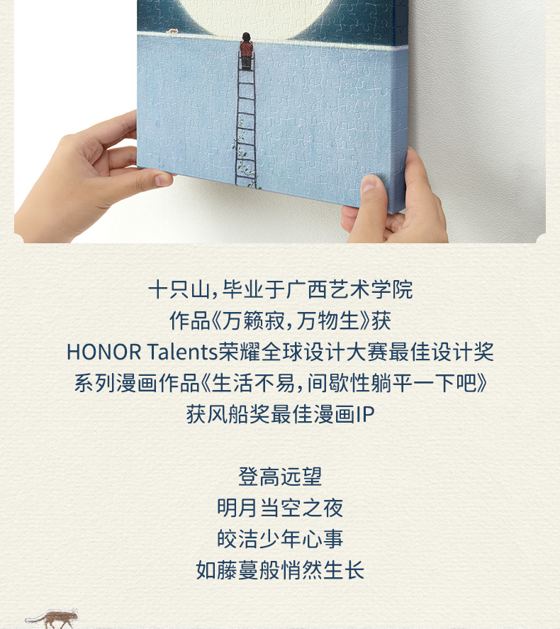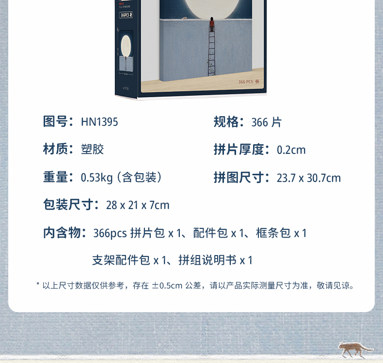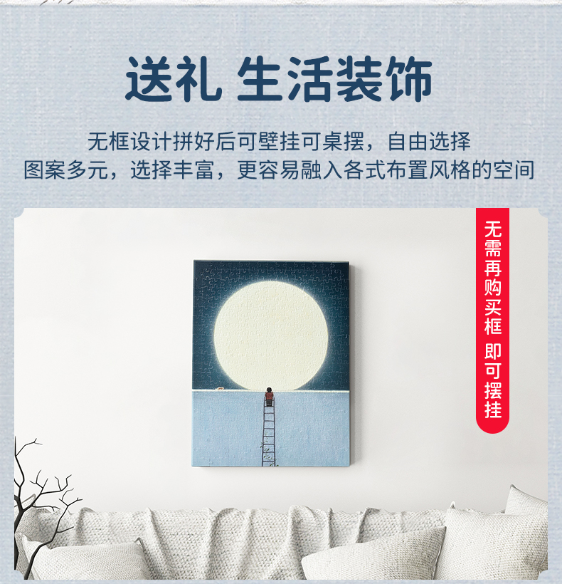 【折扣商品 不退不换】366片 无框塑料拼图 HN1395 十只山-明月当空的夜晚