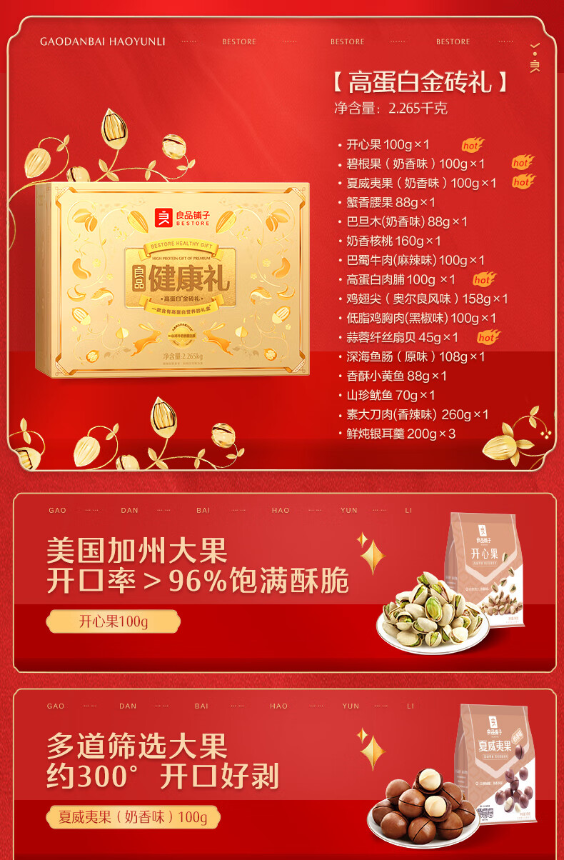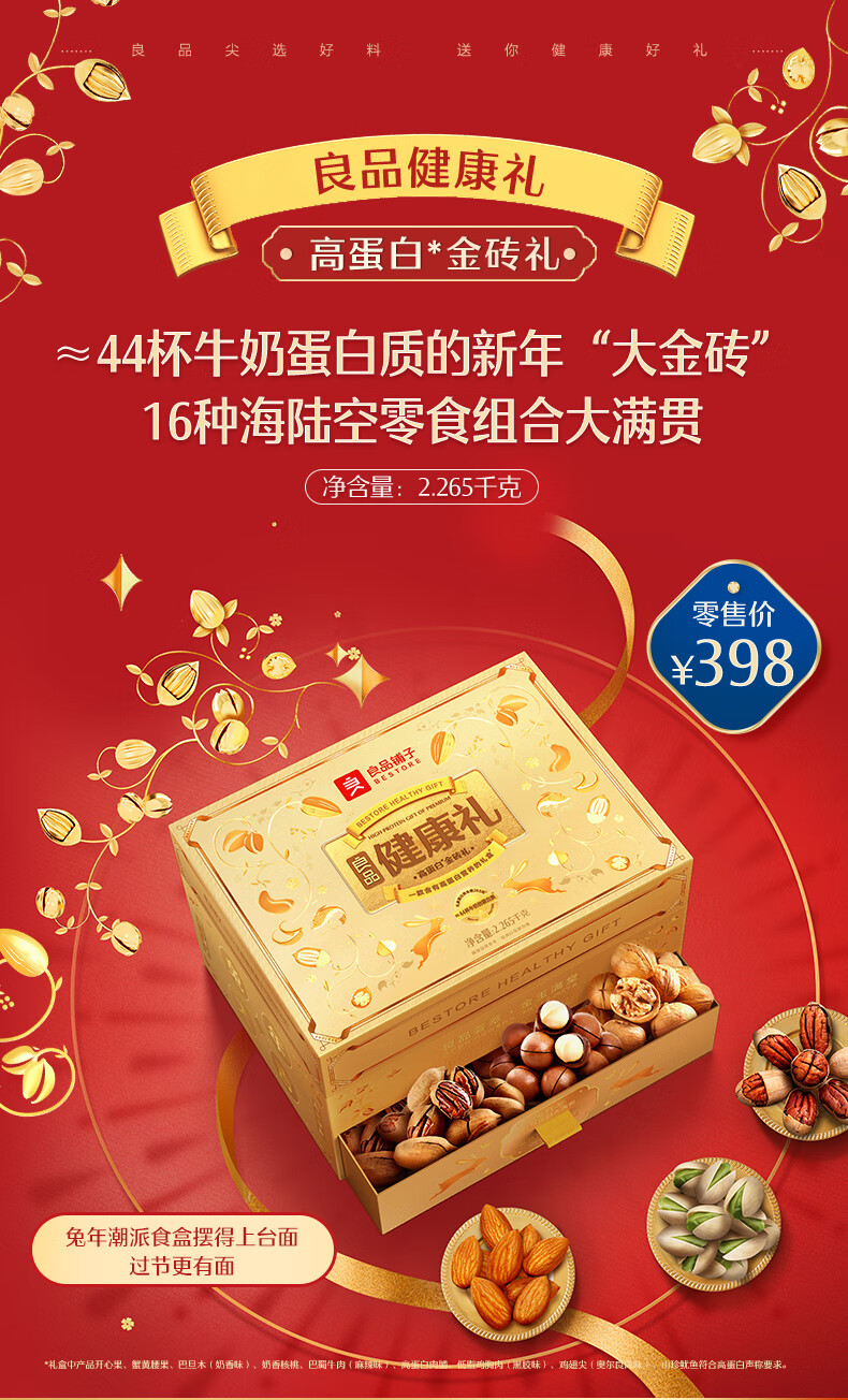 【分仓直发包邮】良品铺子坚果礼盒大礼包干果坚果炒货零食礼盒高蛋白金砖礼