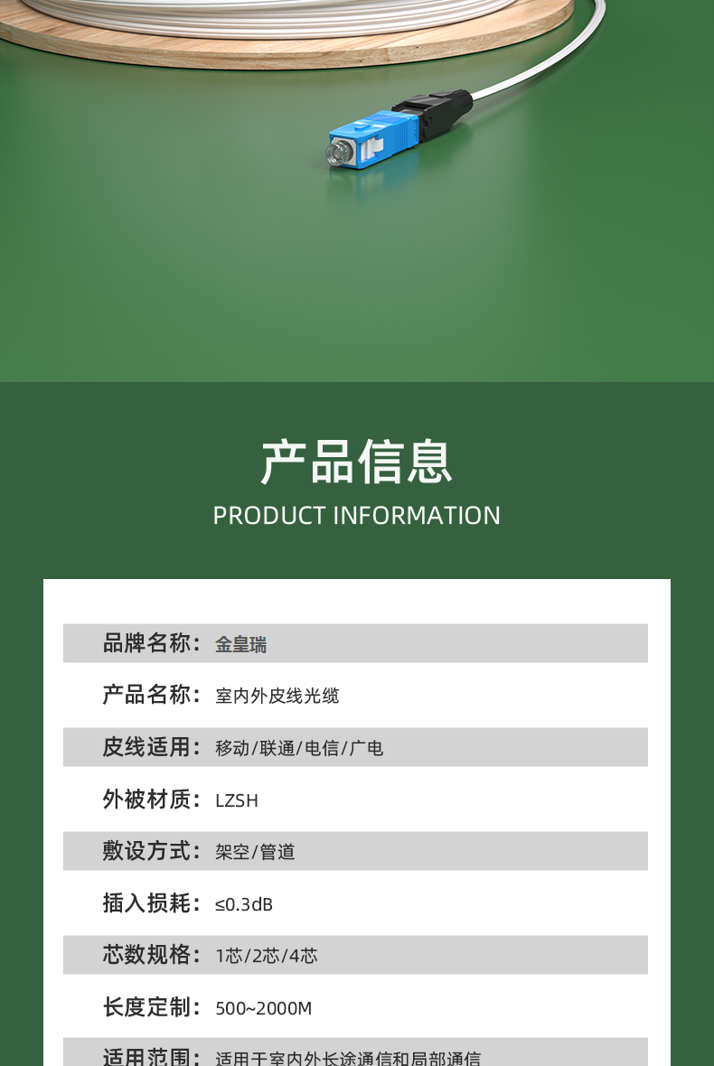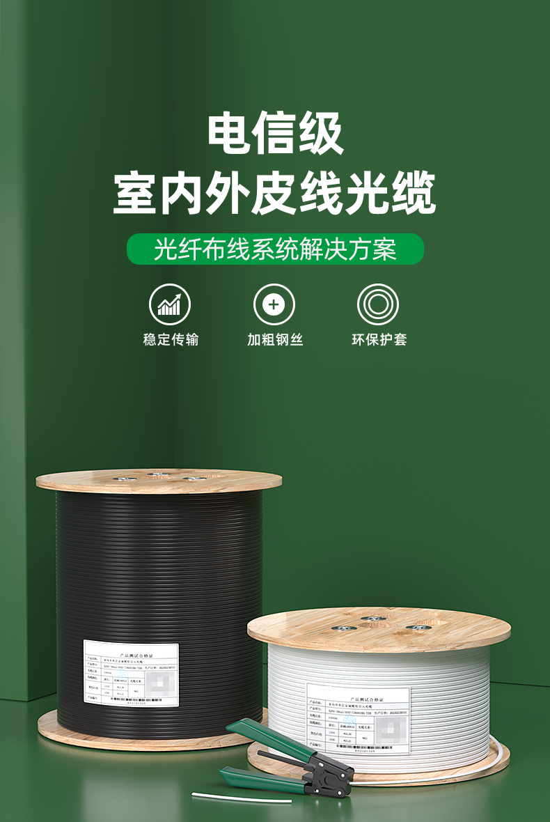 商品名称:国标电信级室内皮线光缆单芯白色1芯2芯光纤线室外光通信光缆皮线皮纤线3钢丝双芯黑色分离式蝶形1芯2芯室外皮线光缆单芯金属自承式蝶形引入光缆电信级1000m2000m