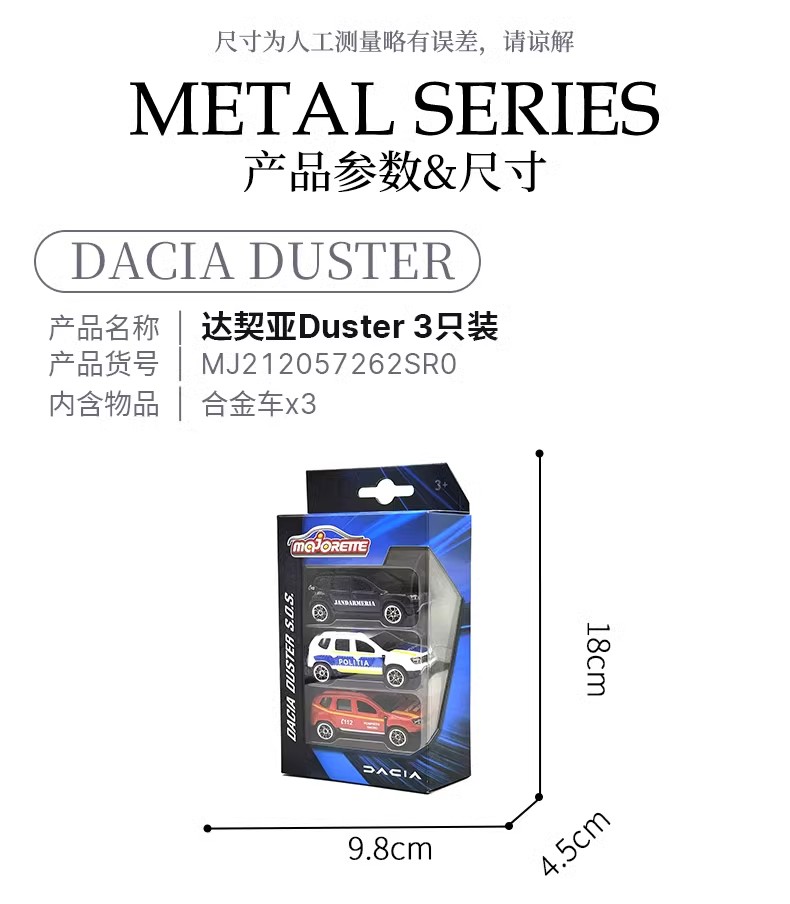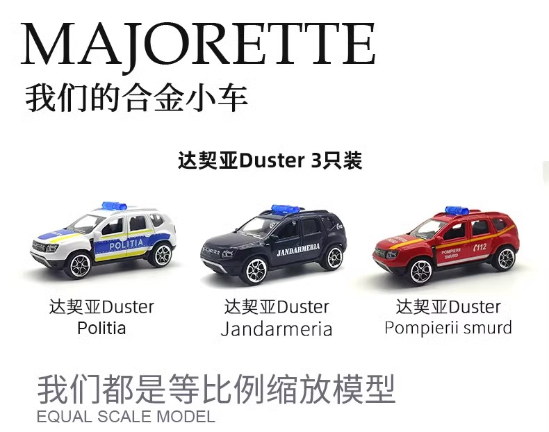 美捷轮Majorette合金小车达契亚Duster 3只装车模收藏玩具儿童男 3岁+
