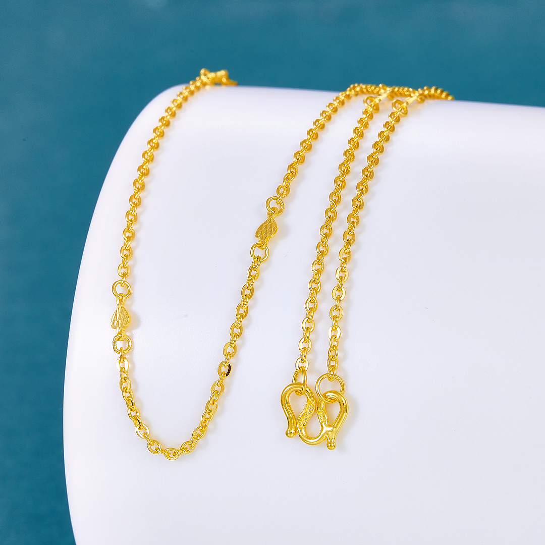 【限时克减150元】足金999.9 O字链间桃心片间款项链杂花链(AF010XL00003)预售产品下单后不退款不退货不换货不补差价