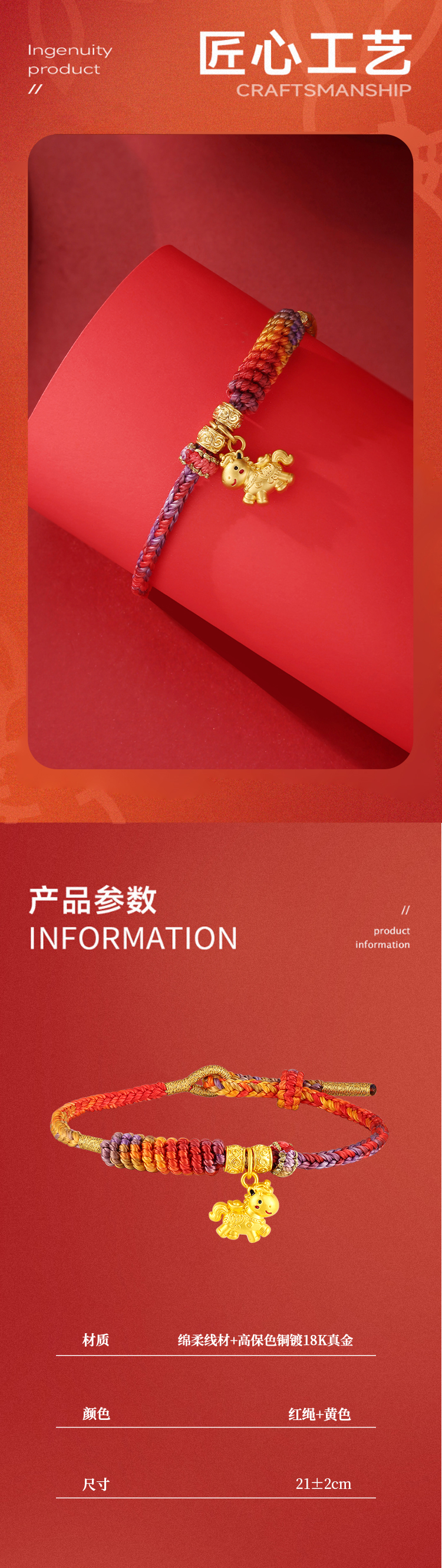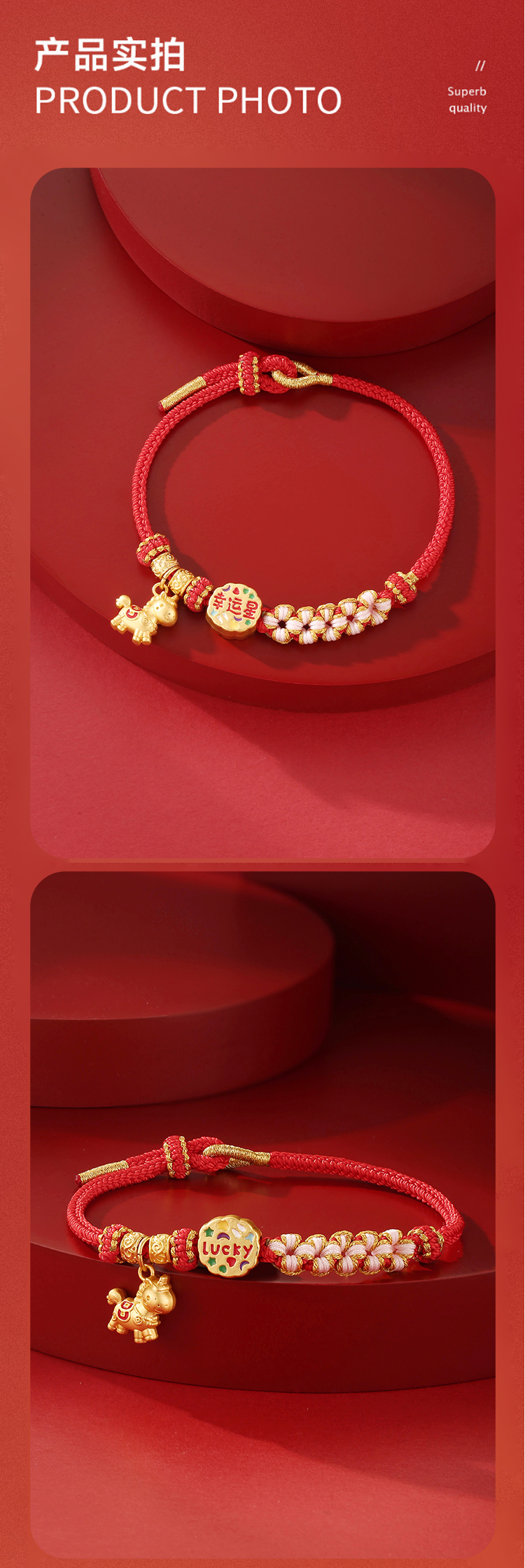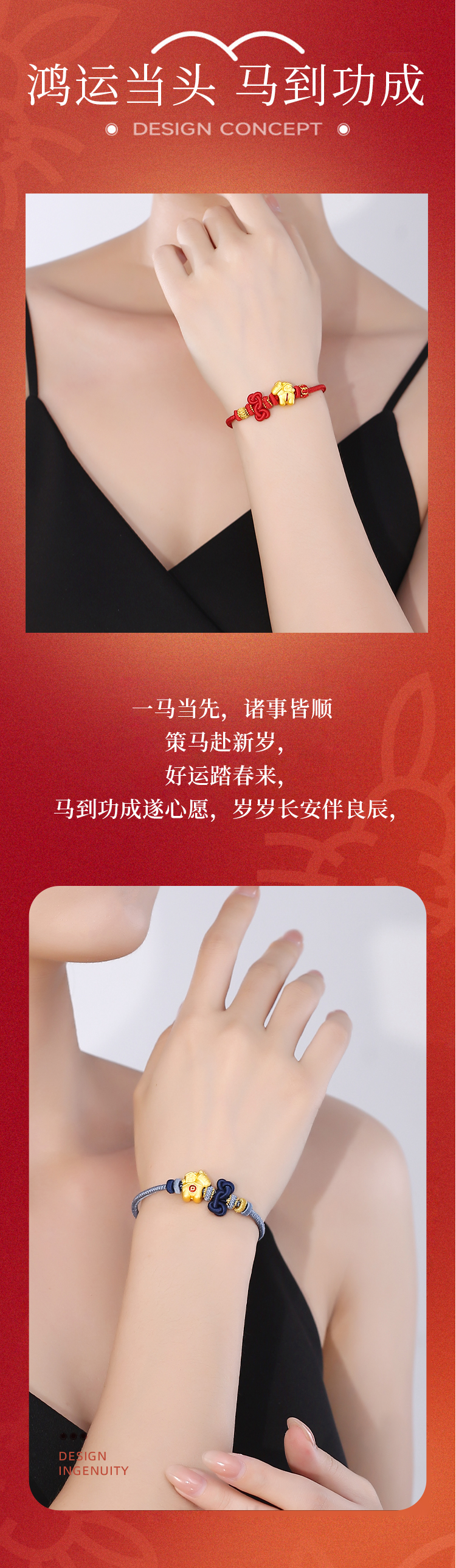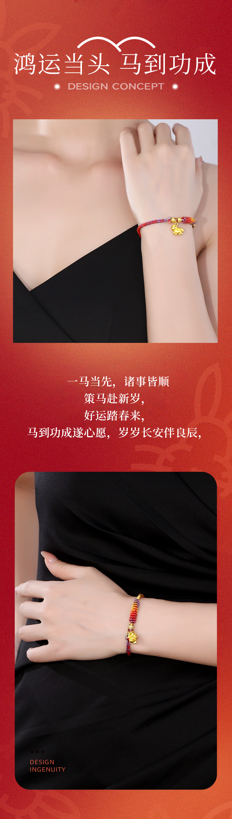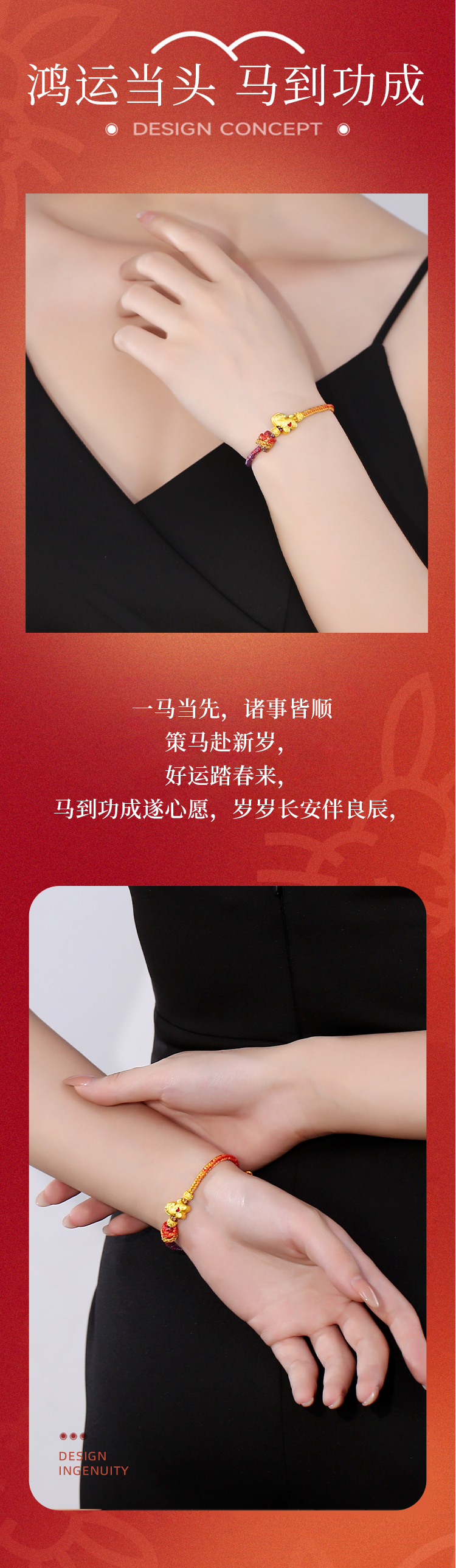 【云优选 】2026马上手绳系列合集 古法手工编绳绵柔红丝线18K金马型配饰过年喜庆红手绳手链