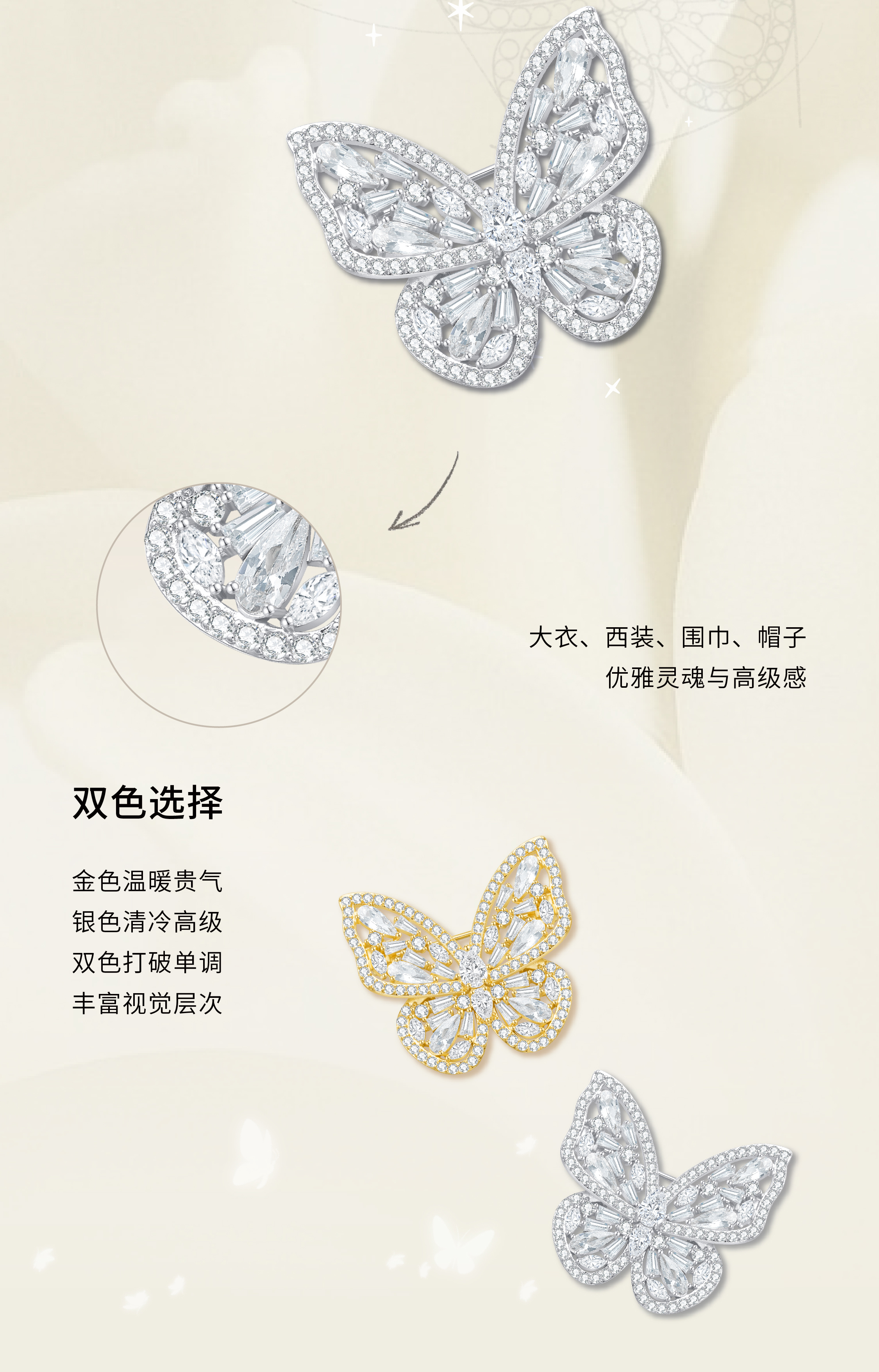 【炽与月】蝴蝶胸针·金银双色