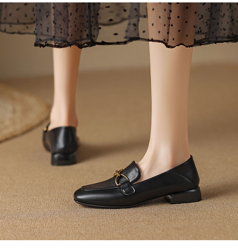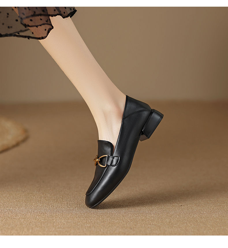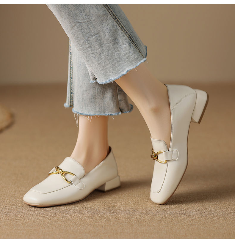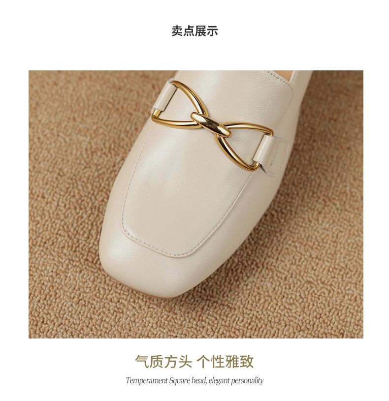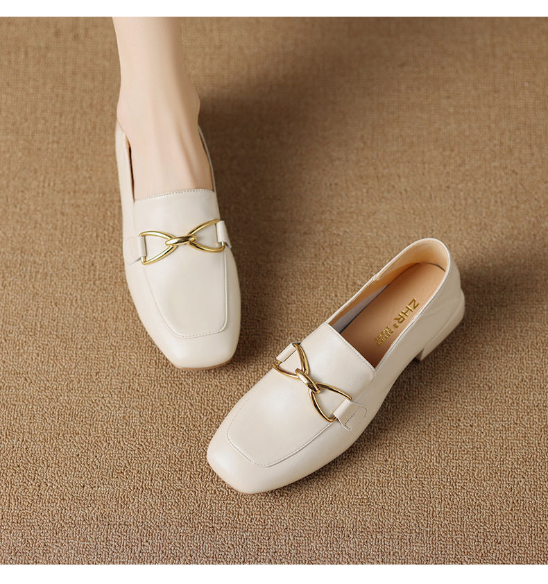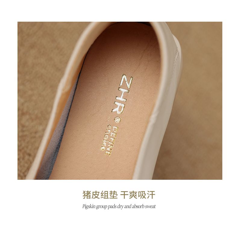 ZHR女鞋浅口单鞋2023新款夏季英伦风小皮鞋女低跟时尚乐福鞋