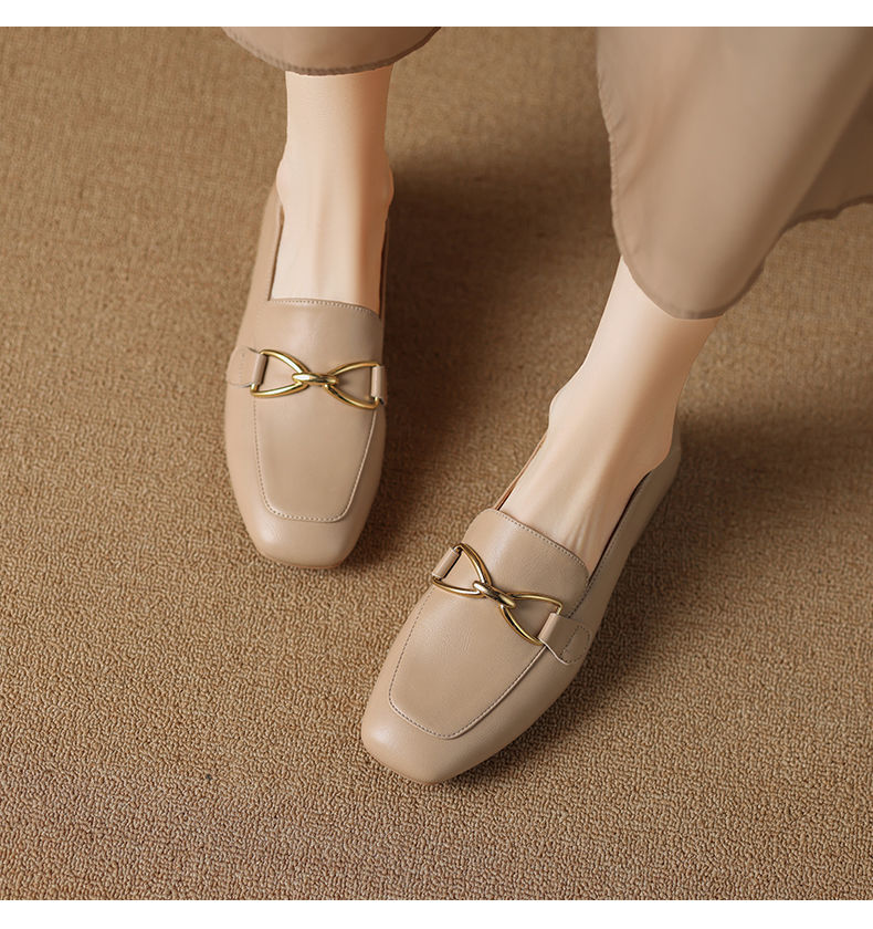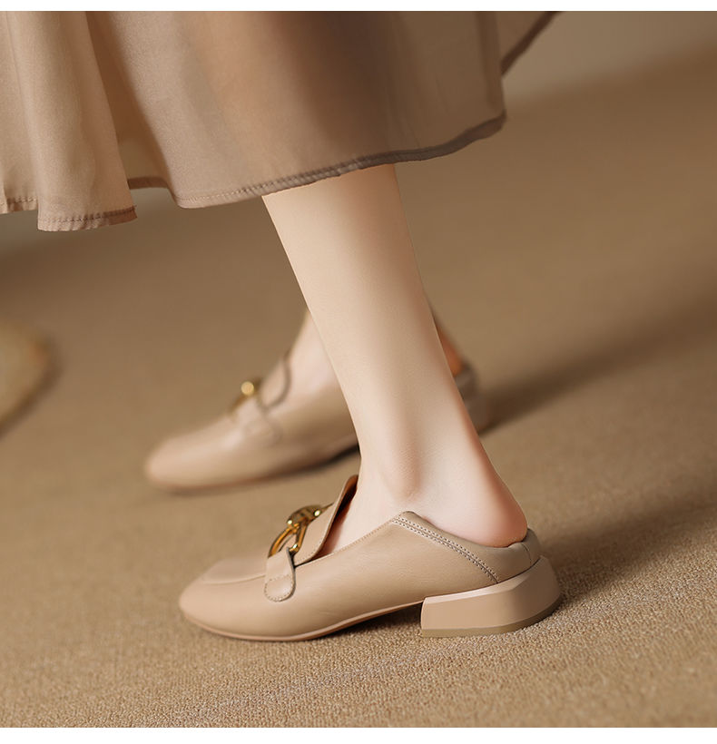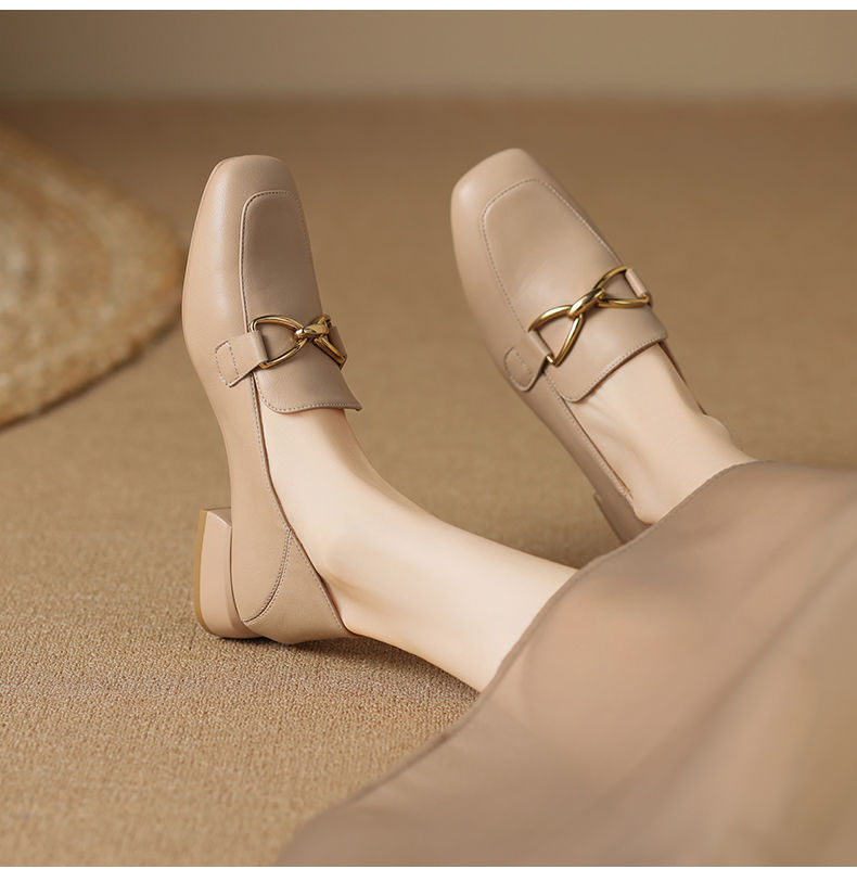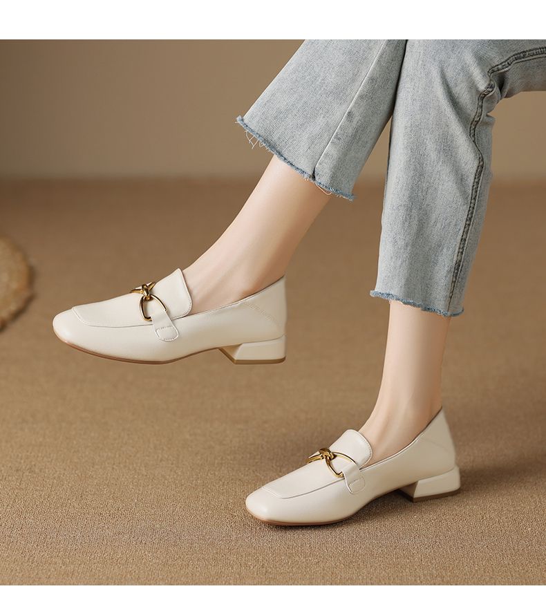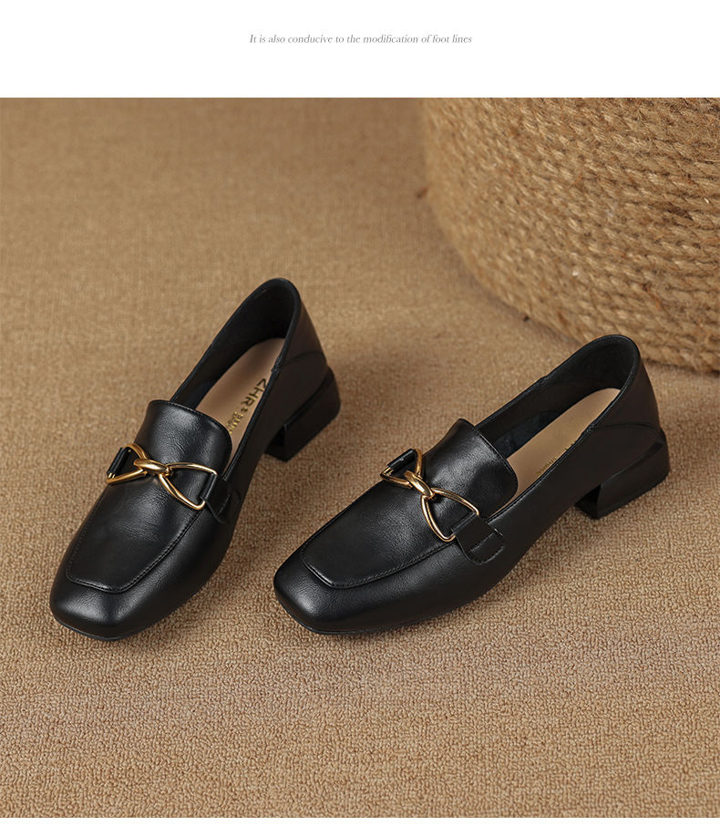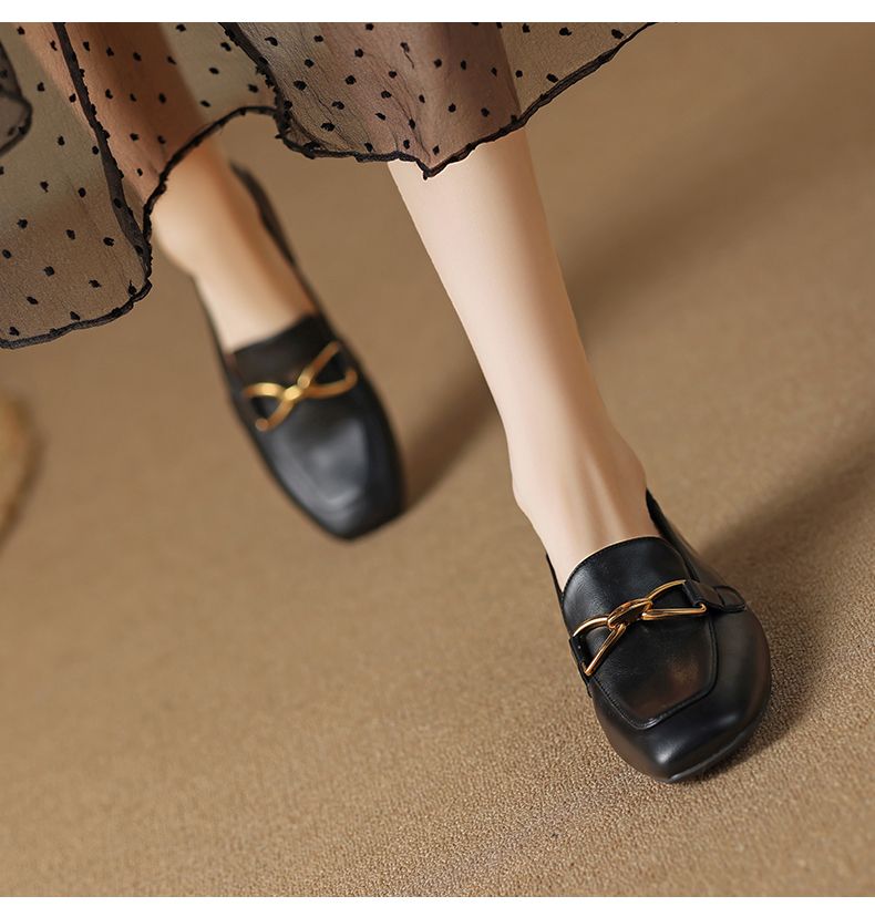 ZHR女鞋浅口单鞋2023新款夏季英伦风小皮鞋女低跟时尚乐福鞋