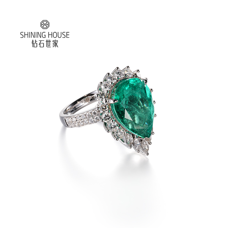 【祖母绿戒指】钻石世家 18K金祖母绿镶钻戒指 高级设计珠宝系列 绿宝石祖母绿 拥有美丽的翠绿色 象征着幸运、幸福和万物盎然的生命力