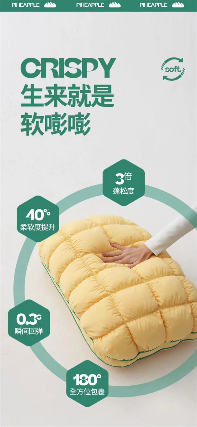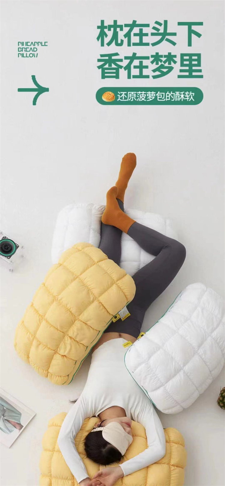 顶柔护颈面包格菠萝枕,睡起来如同天然酵母醒发的菠萝包般松软、舒服