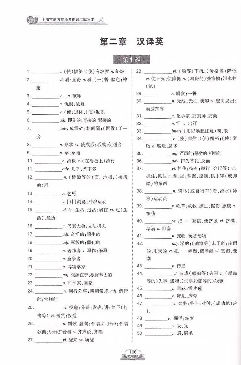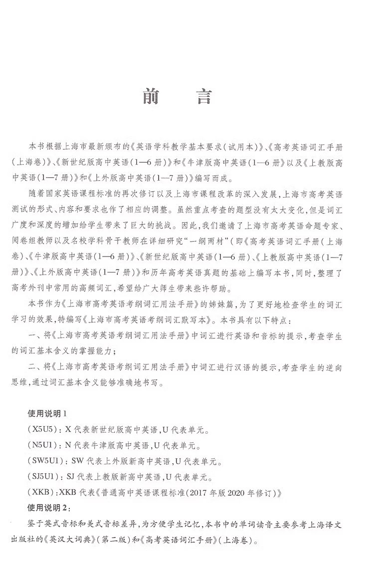 【上海高考】2024版上海市高考英语考纲词汇默写本/练习册 附参考答案