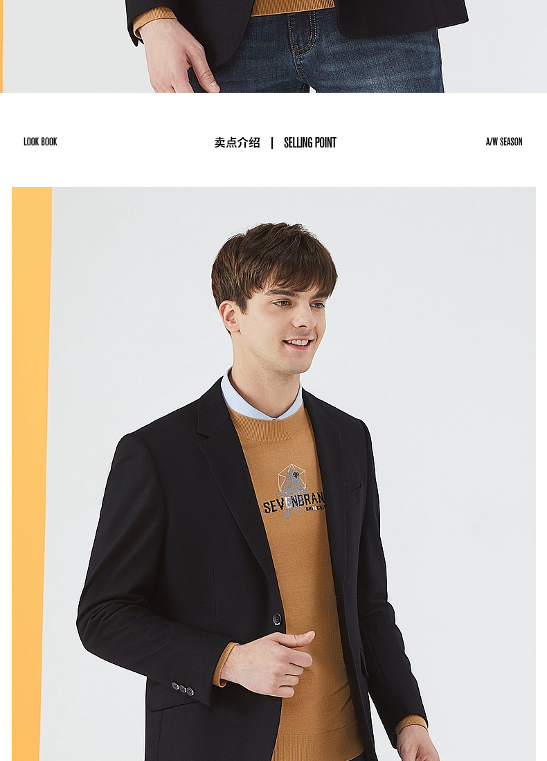 【特价】柒牌休闲西装男春秋季时尚简约针织两粒扣单西外套 123C70200