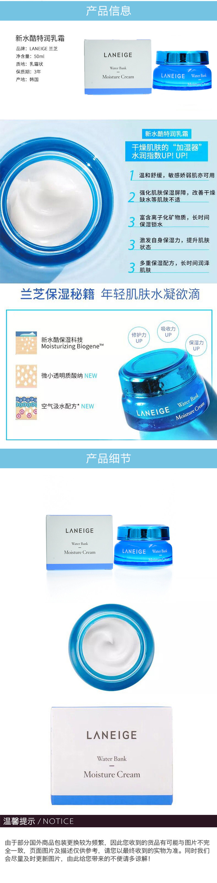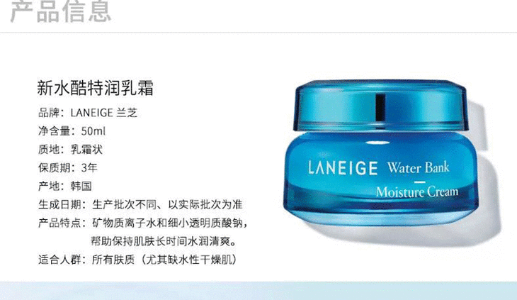 【现货】兰芝水库凝肌滋润补湿面霜50ml 深层补水保湿专用面霜