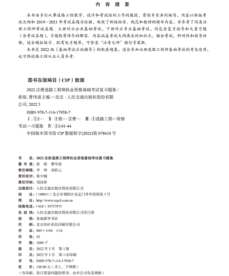 书名:预售-2022注册道路工程师执业资格基础考试复习题集