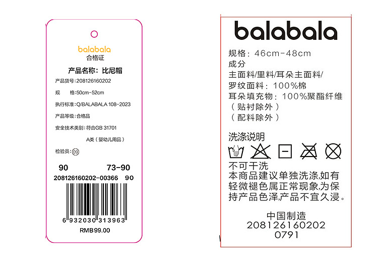 【balaOne】巴拉巴拉儿童帽子男女童2025年新款冬装宝宝官帽可爱