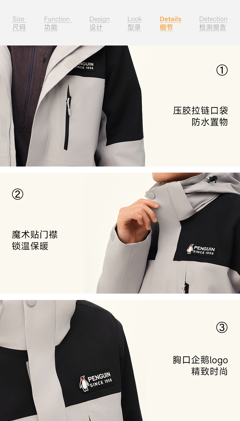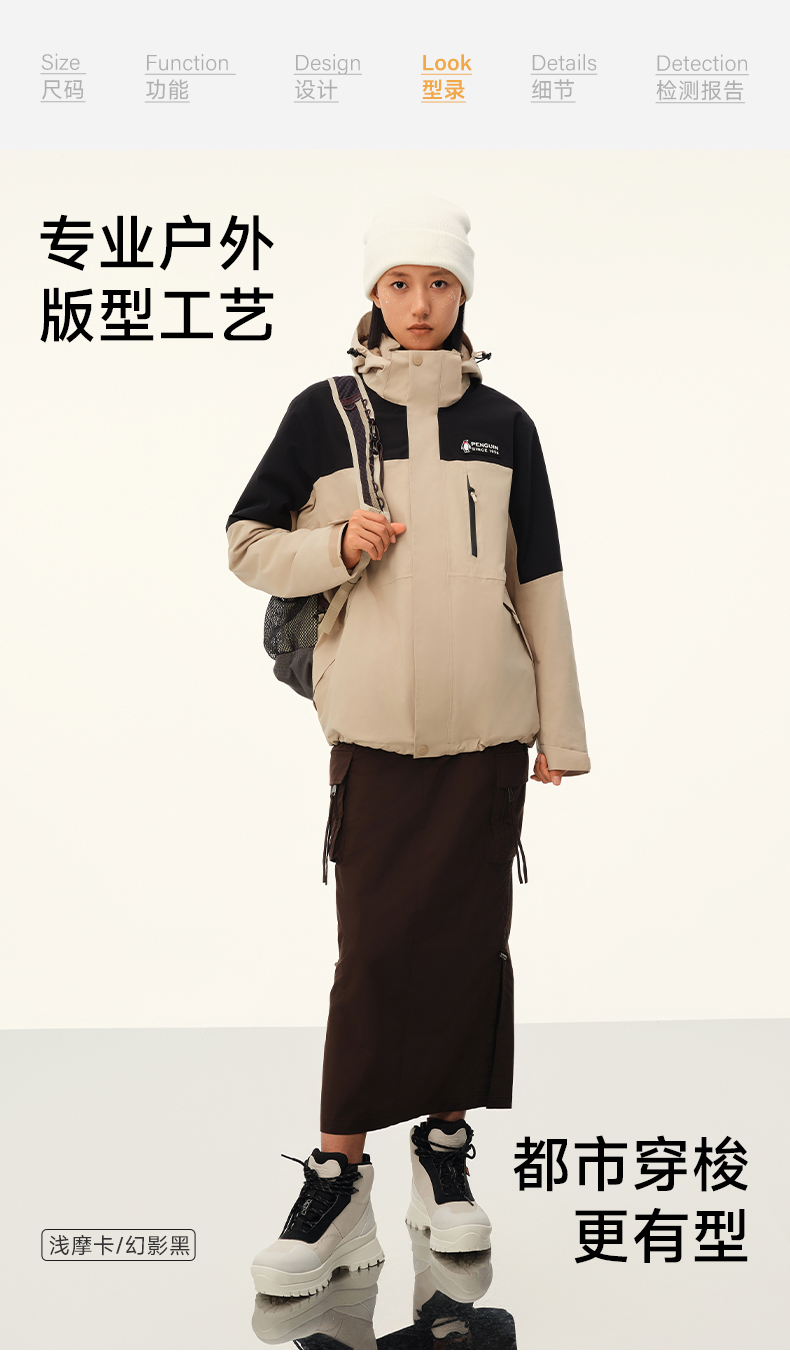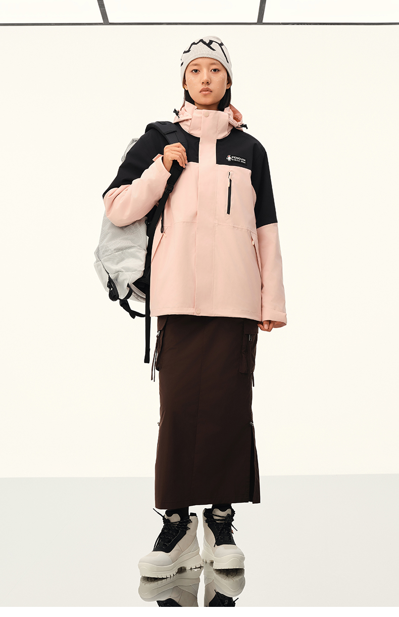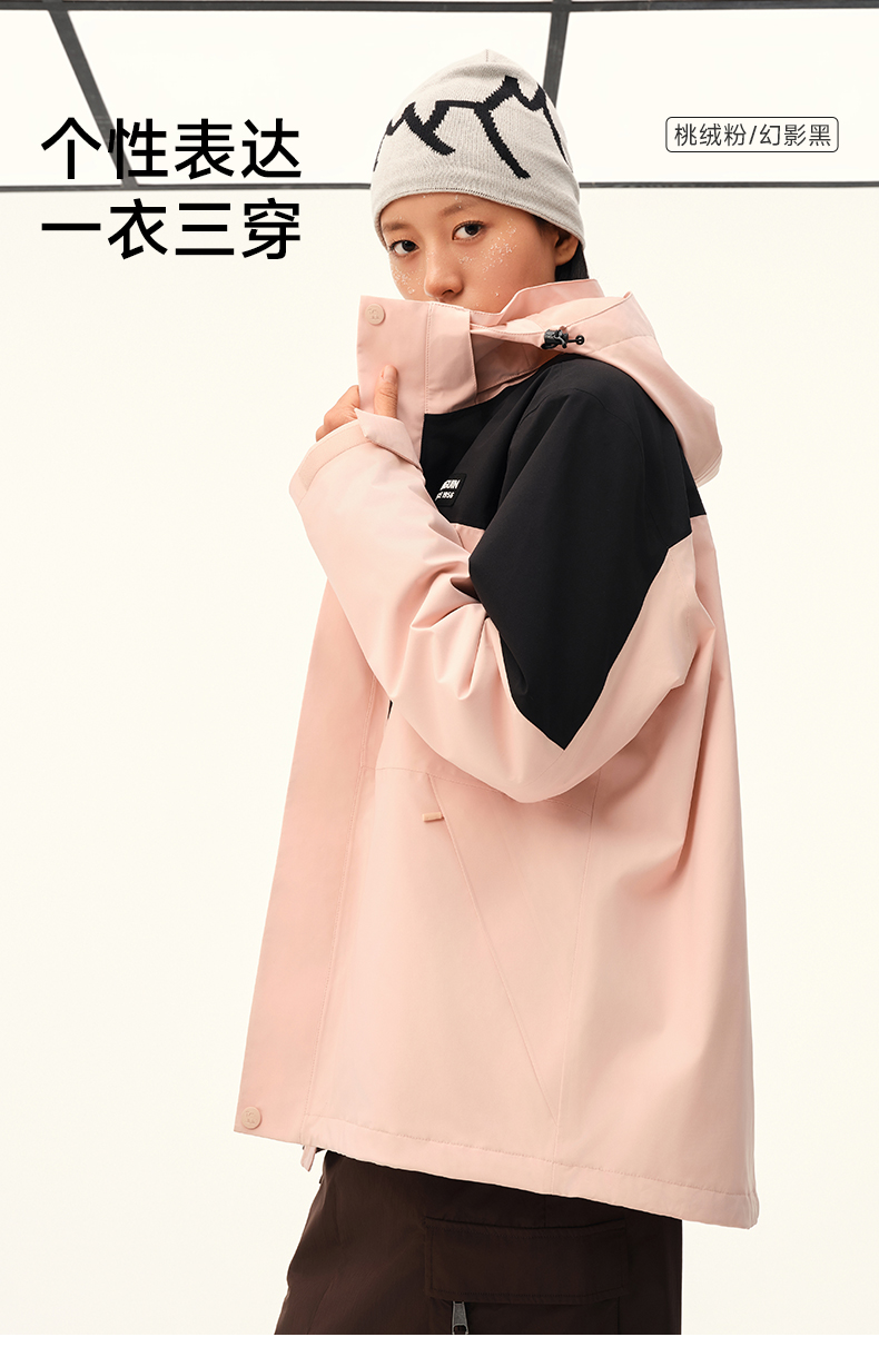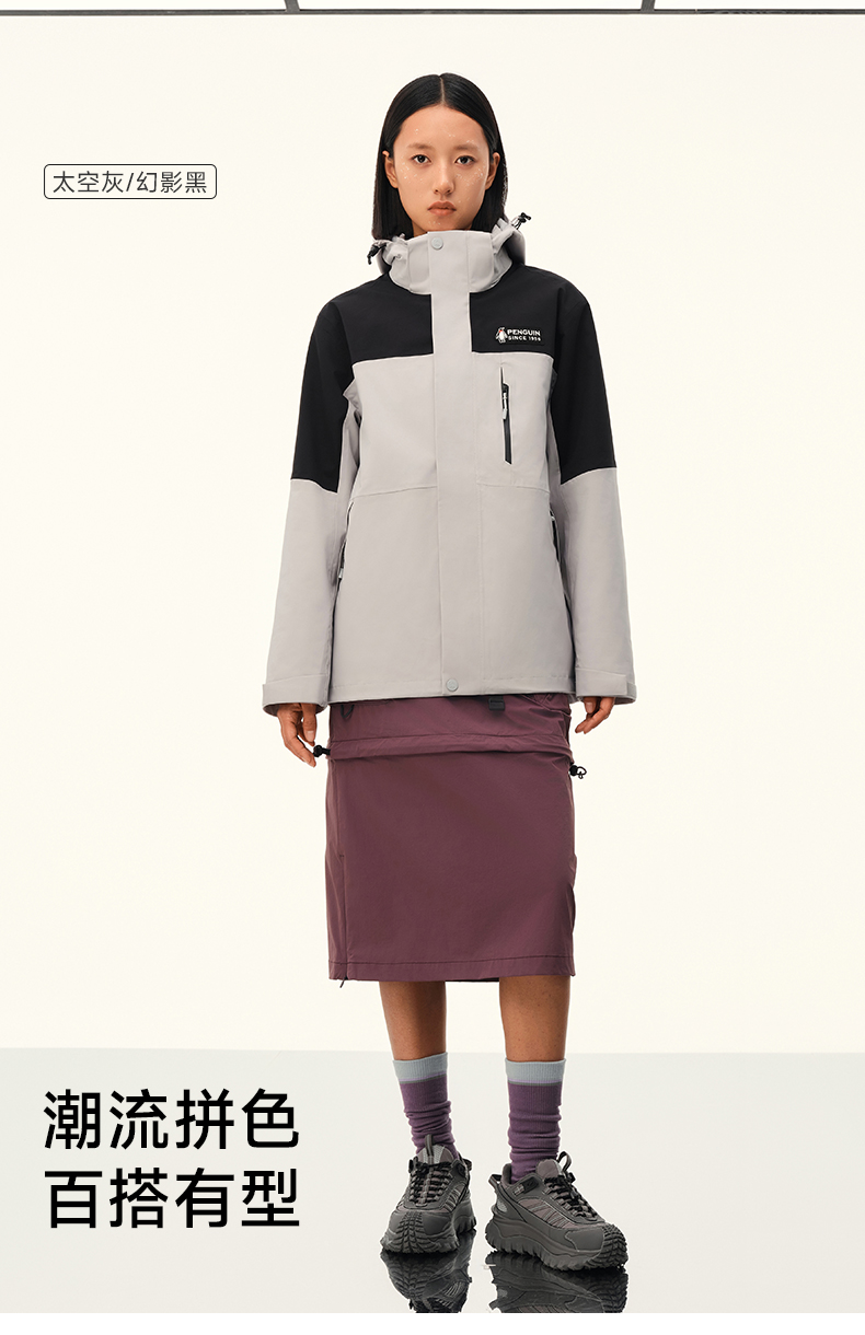 【骆驼×企鹅】企鹅冲锋衣男女同款2025新款户外秋冬抓绒三合一外套防水防风登山服 M34CAXX676