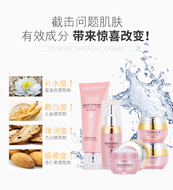 【化妆品】雷驰 本草植物活肤雪嫩美颜五合一润白护肤套装化妆品保湿