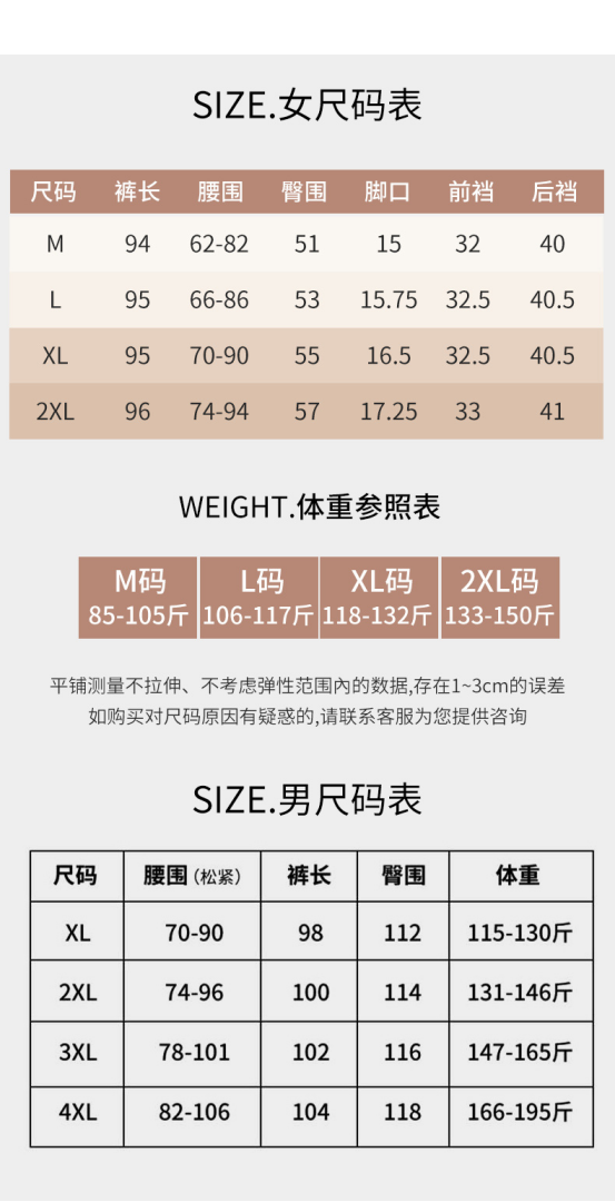 女款 M(90斤-106斤) L(106斤-116斤) XL(116斤-130斤)2XL(130斤-150斤)