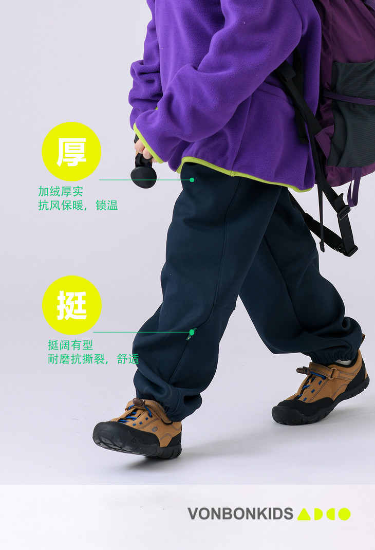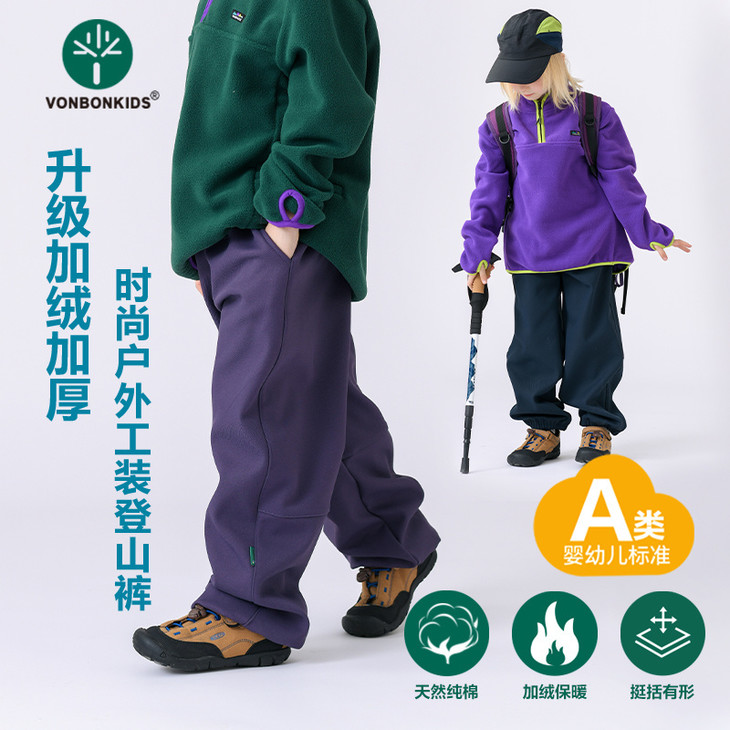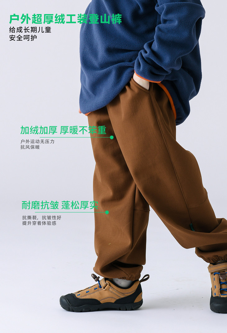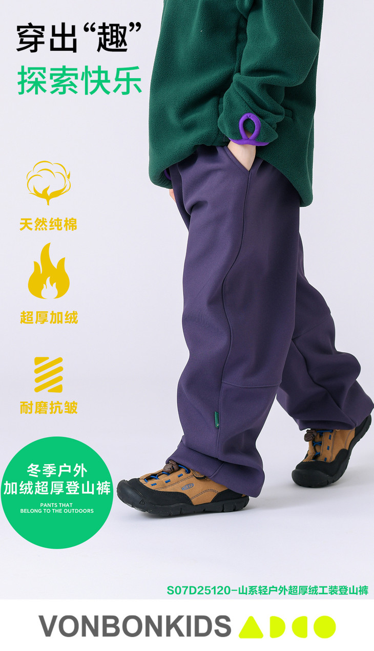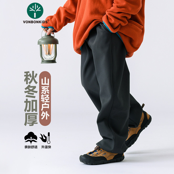 【最后一波新款】vonbonkids 山系轻户外超厚绒工装登山裤K07D25120款