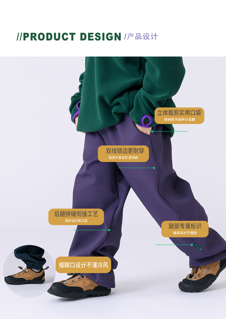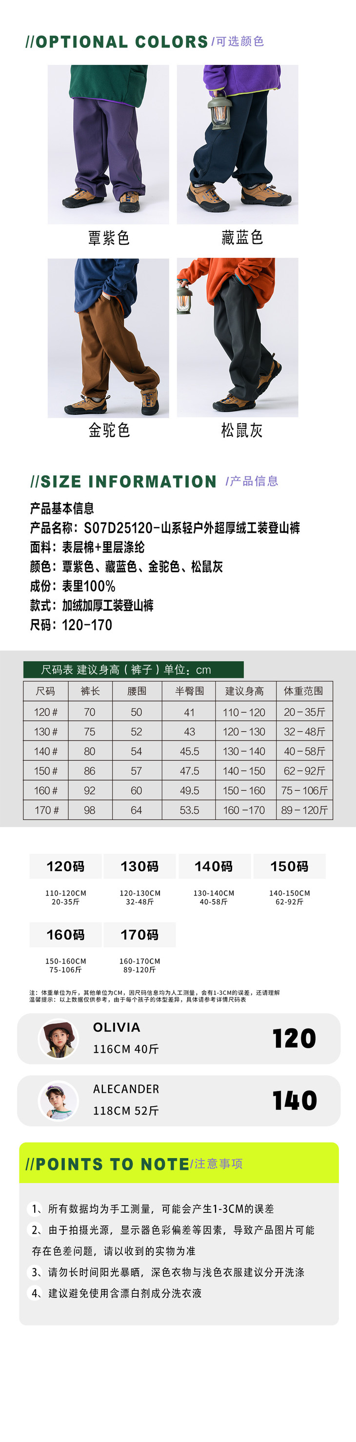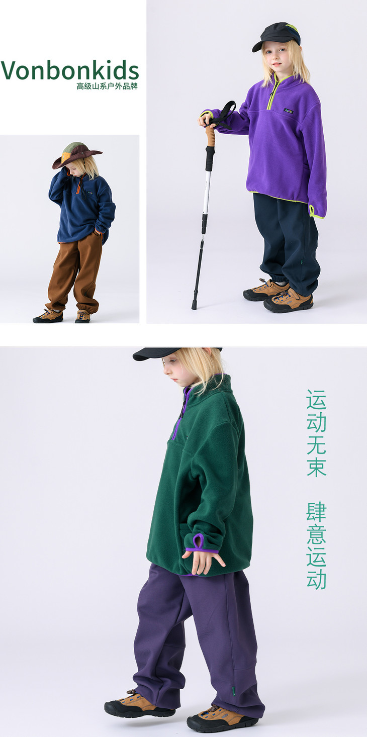 【最后一波新款】vonbonkids 山系轻户外超厚绒工装登山裤K07D25120款