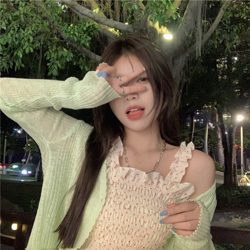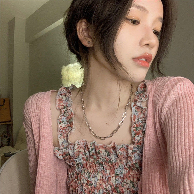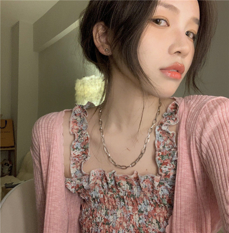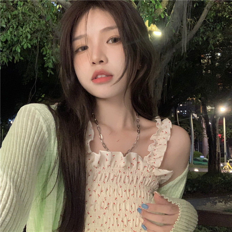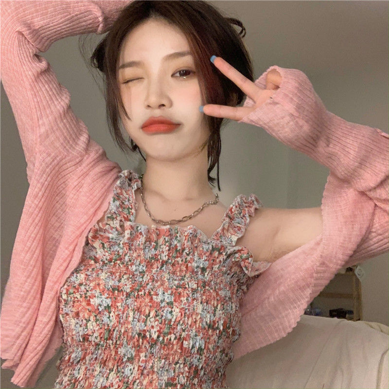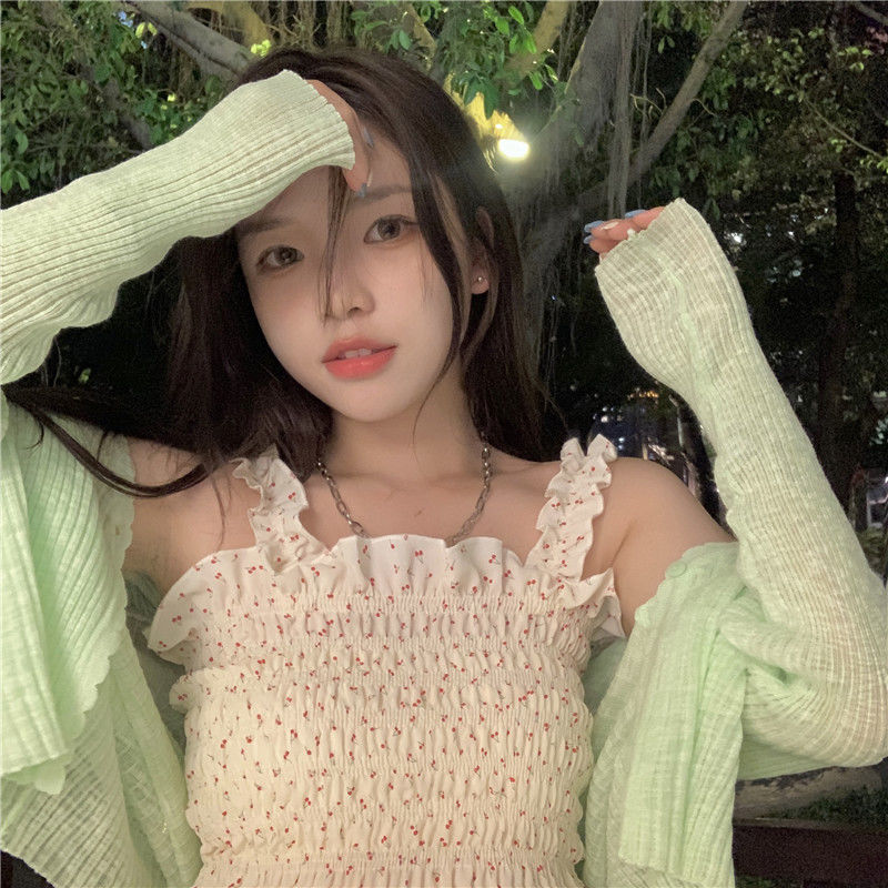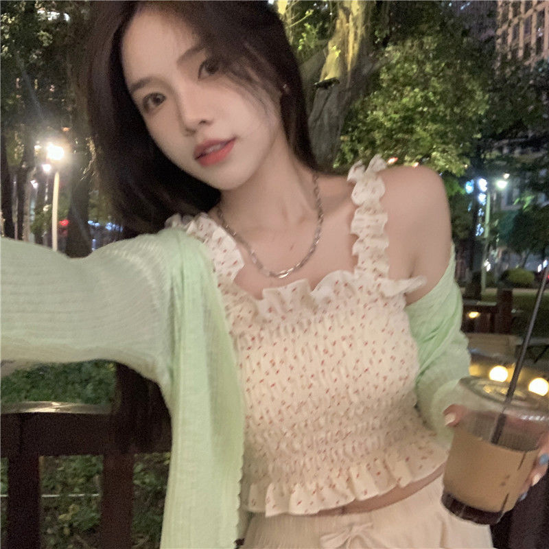 2022夏天新款木耳碎花小吊带背心女外穿短款内搭收腰上衣无袖上衣七夕情人节