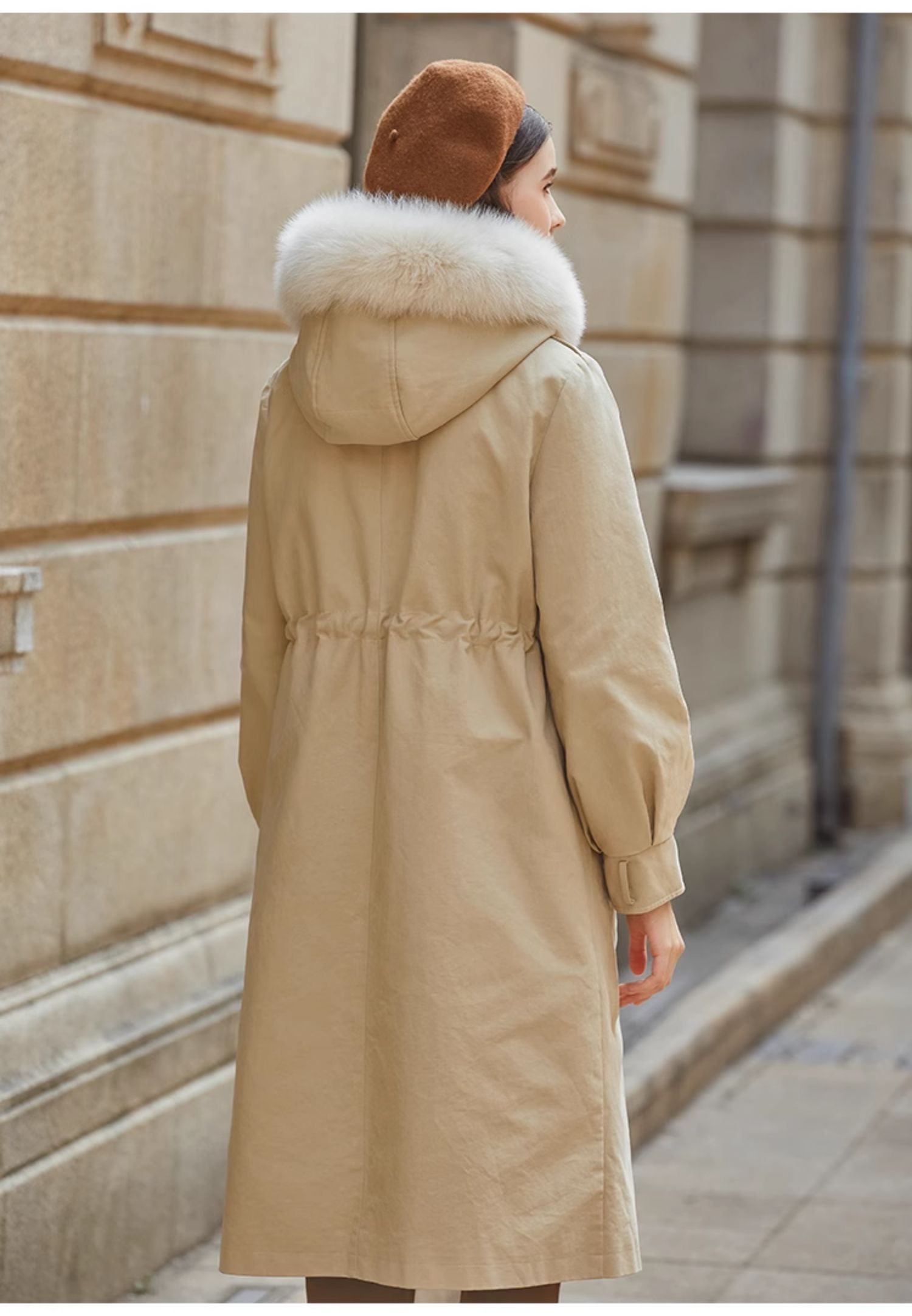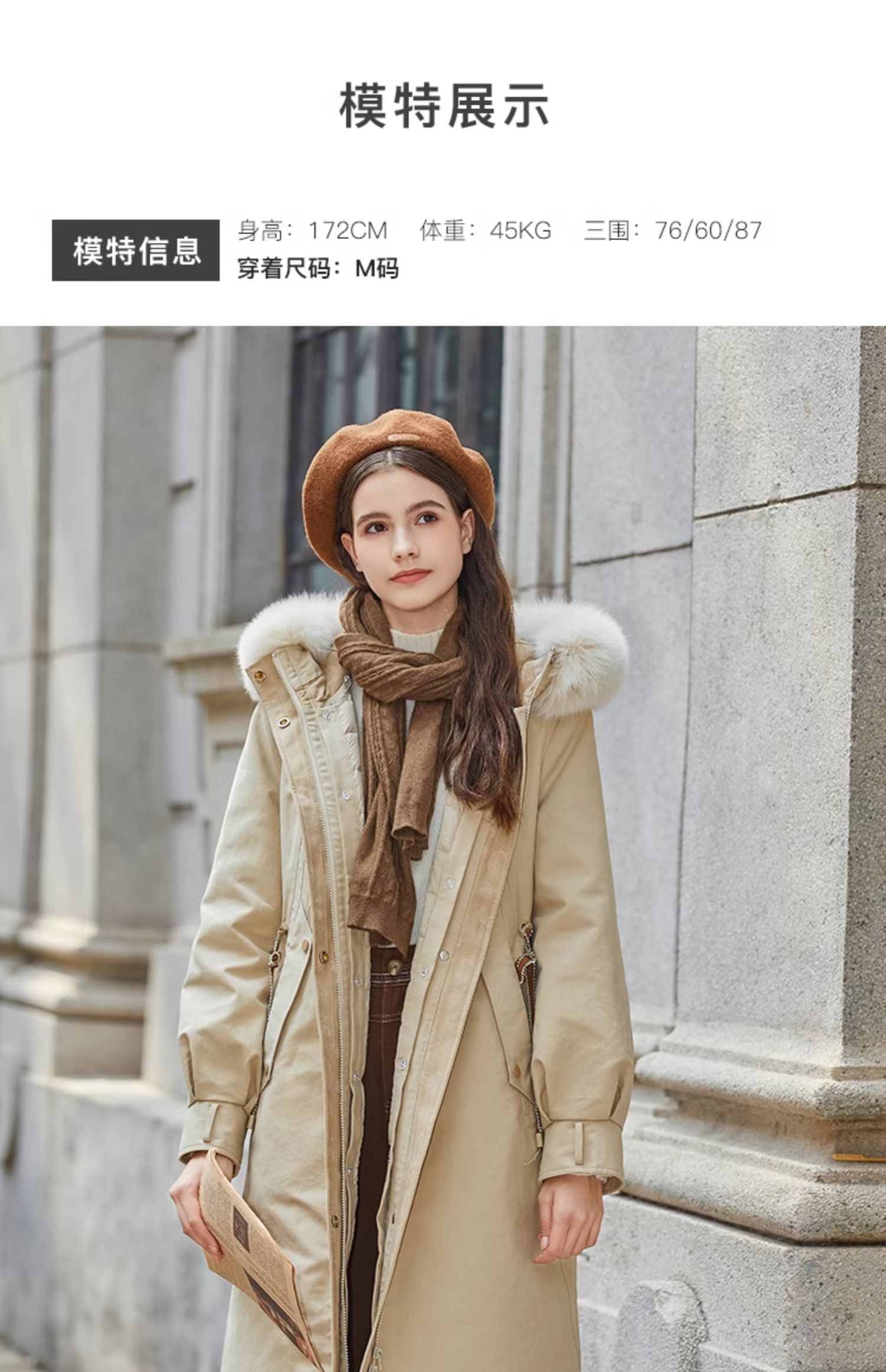 Famecoco范可儿大毛领风衣式羽绒服女长款FAB8AH003