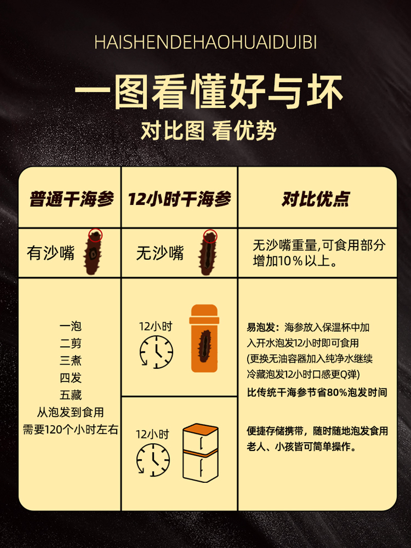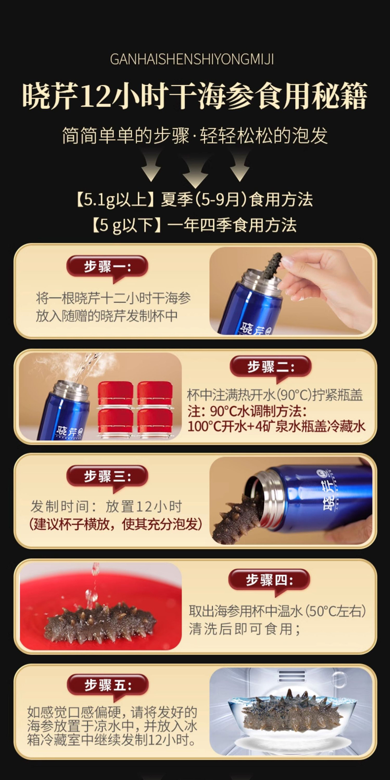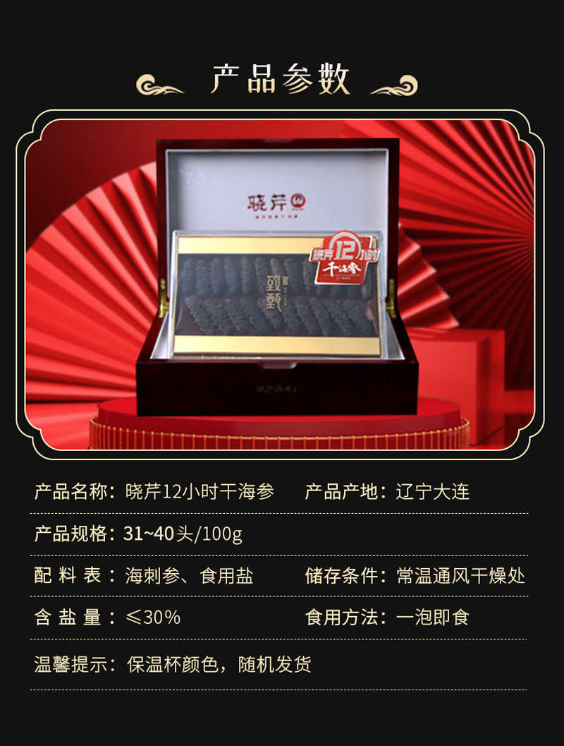 [晓芹]12小时干海参(31-40头 100g装) 送泡发杯1个