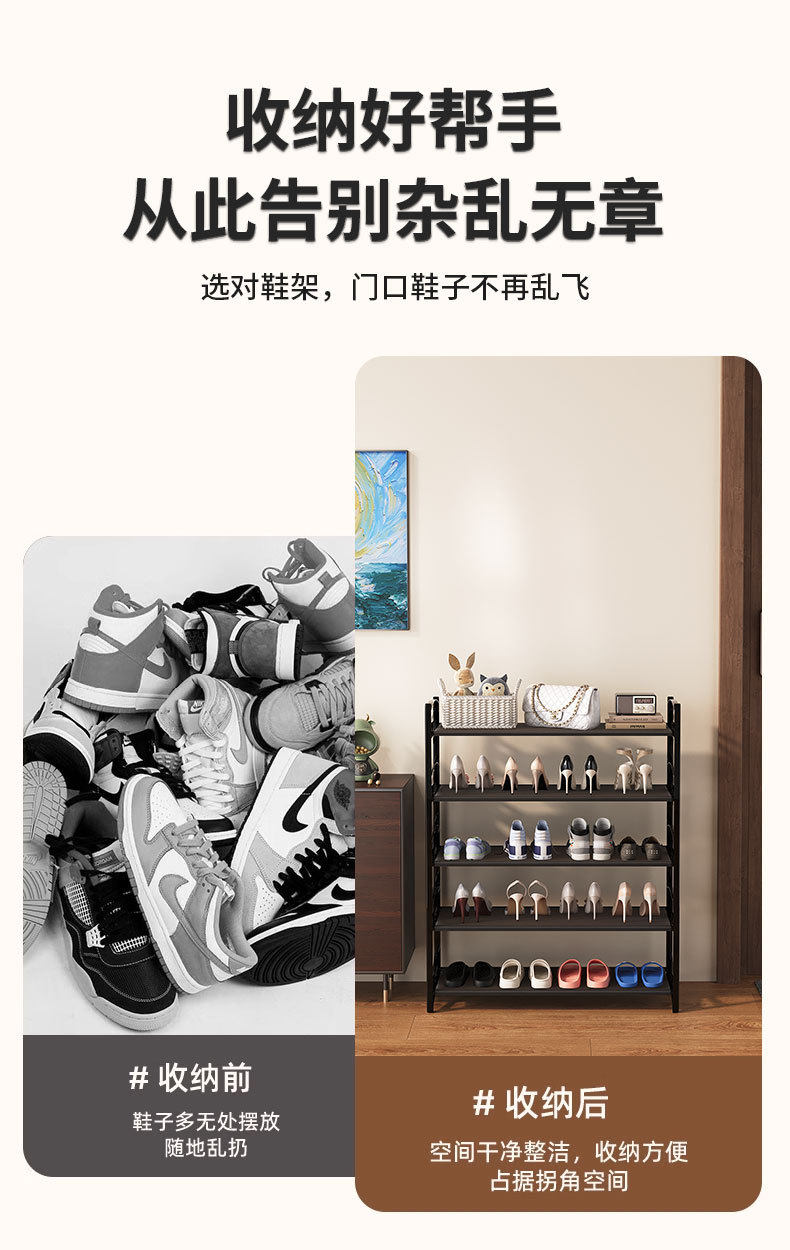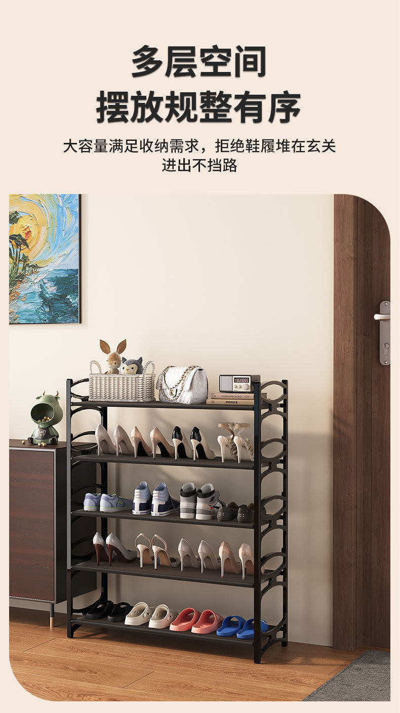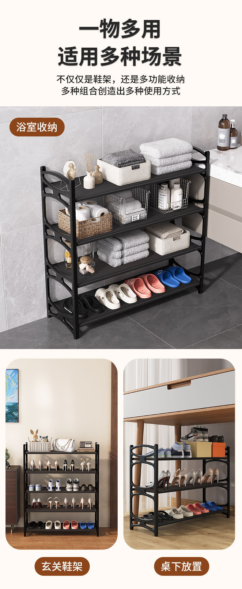 多层卧室起批不锈钢简易折叠家用鞋架塑料黑色经济型鞋柜鞋架一件 商品图1