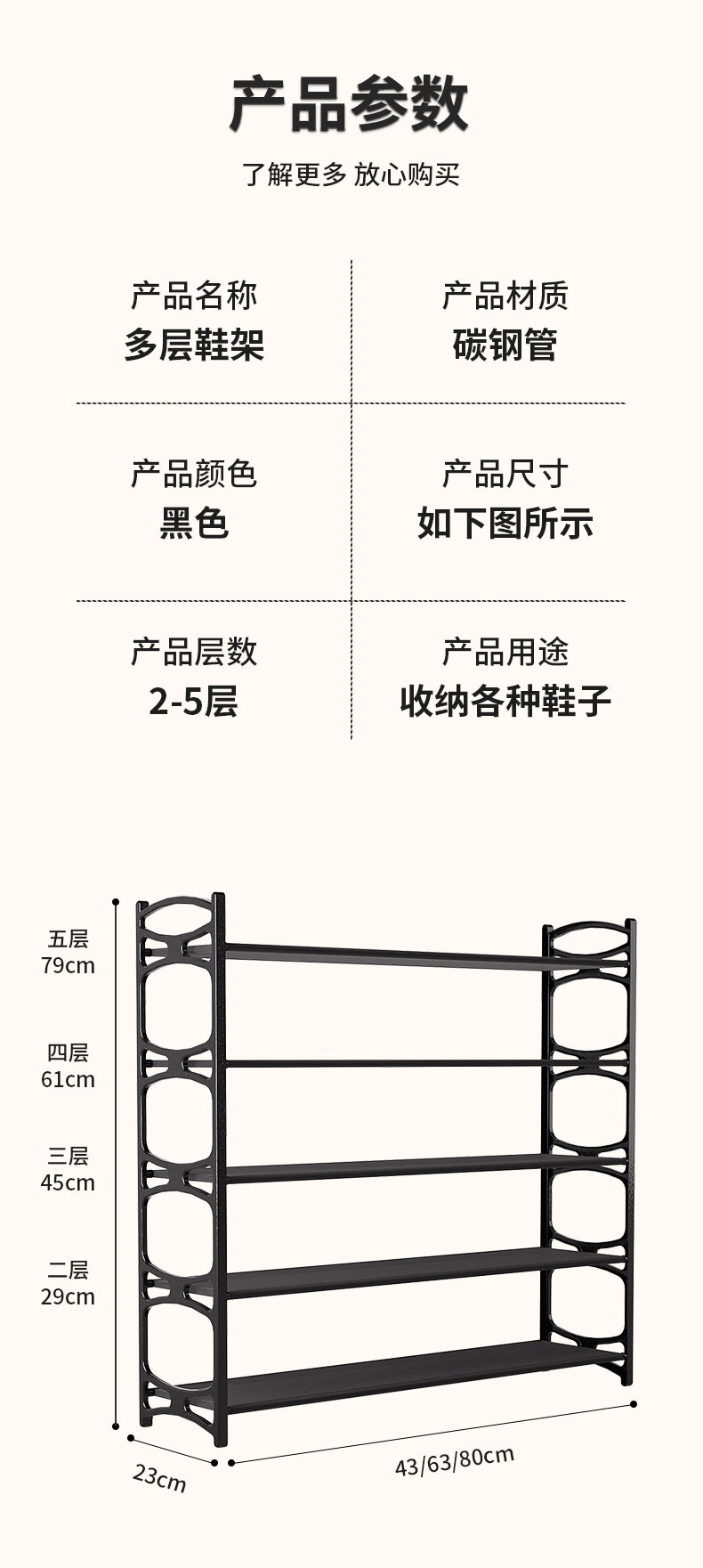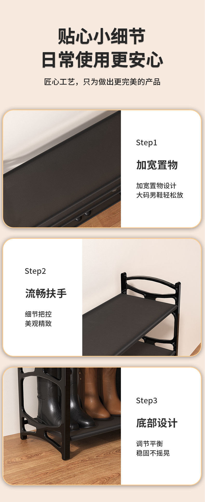 多层卧室起批不锈钢简易折叠家用鞋架塑料黑色经济型鞋柜鞋架一件 商品图2