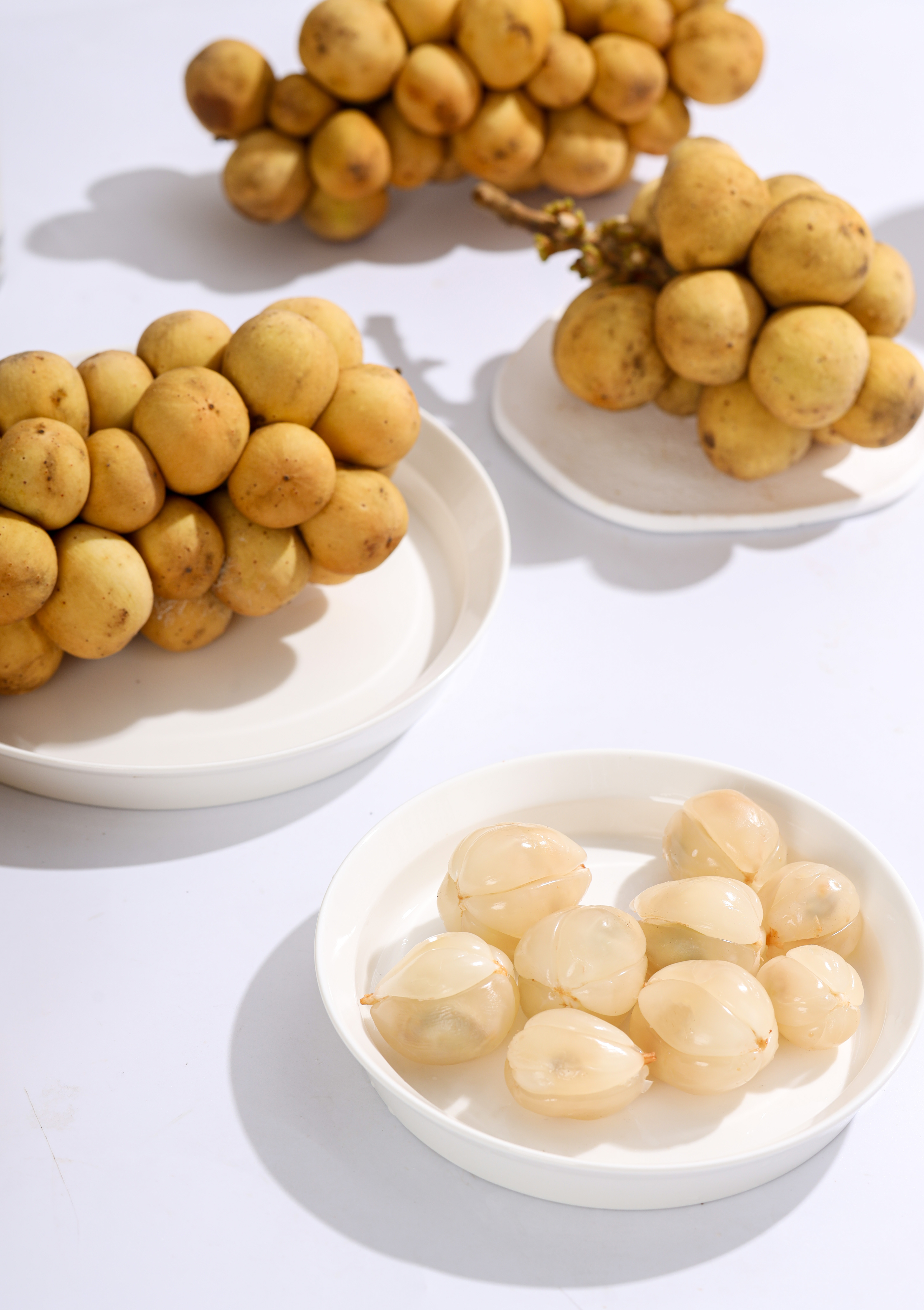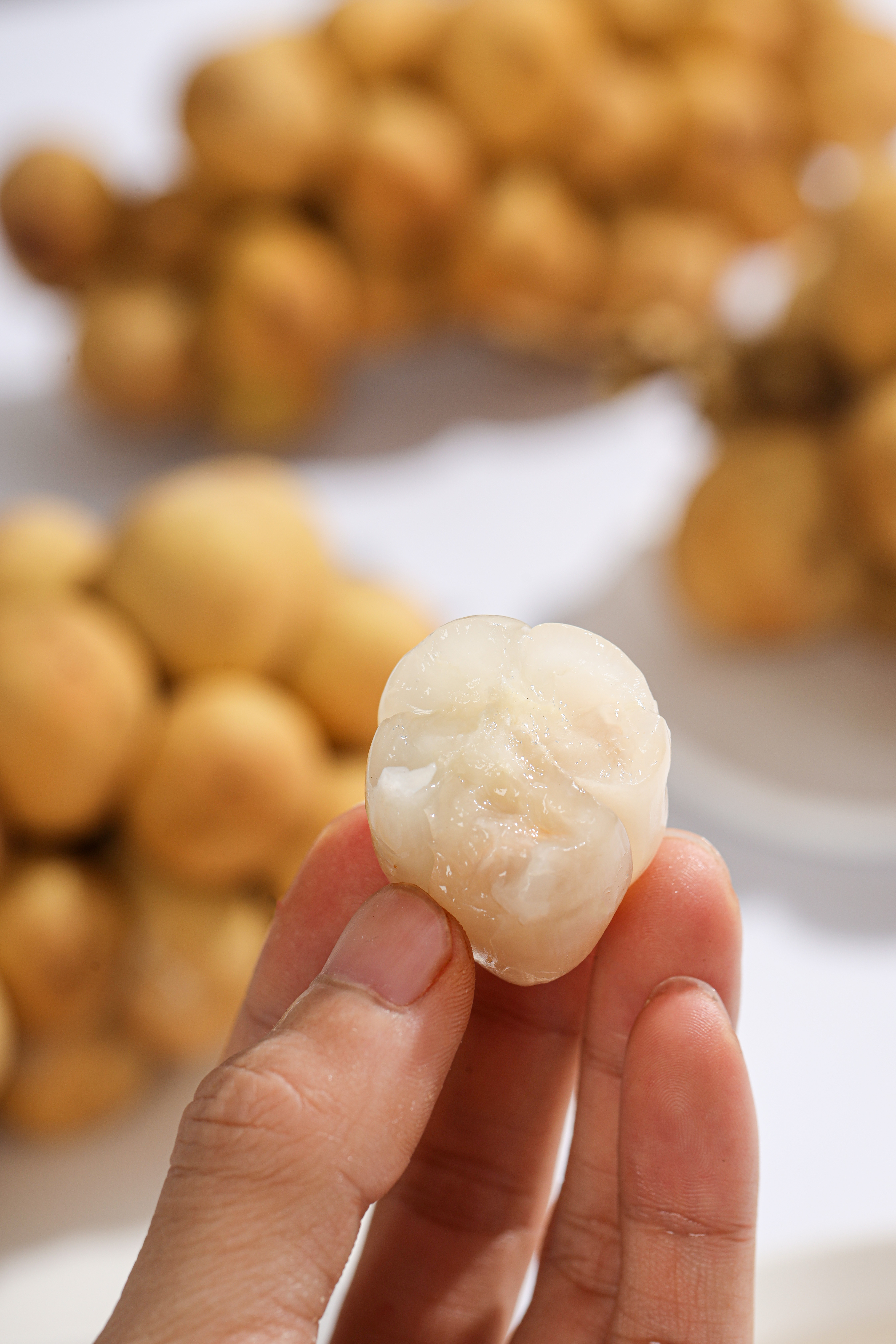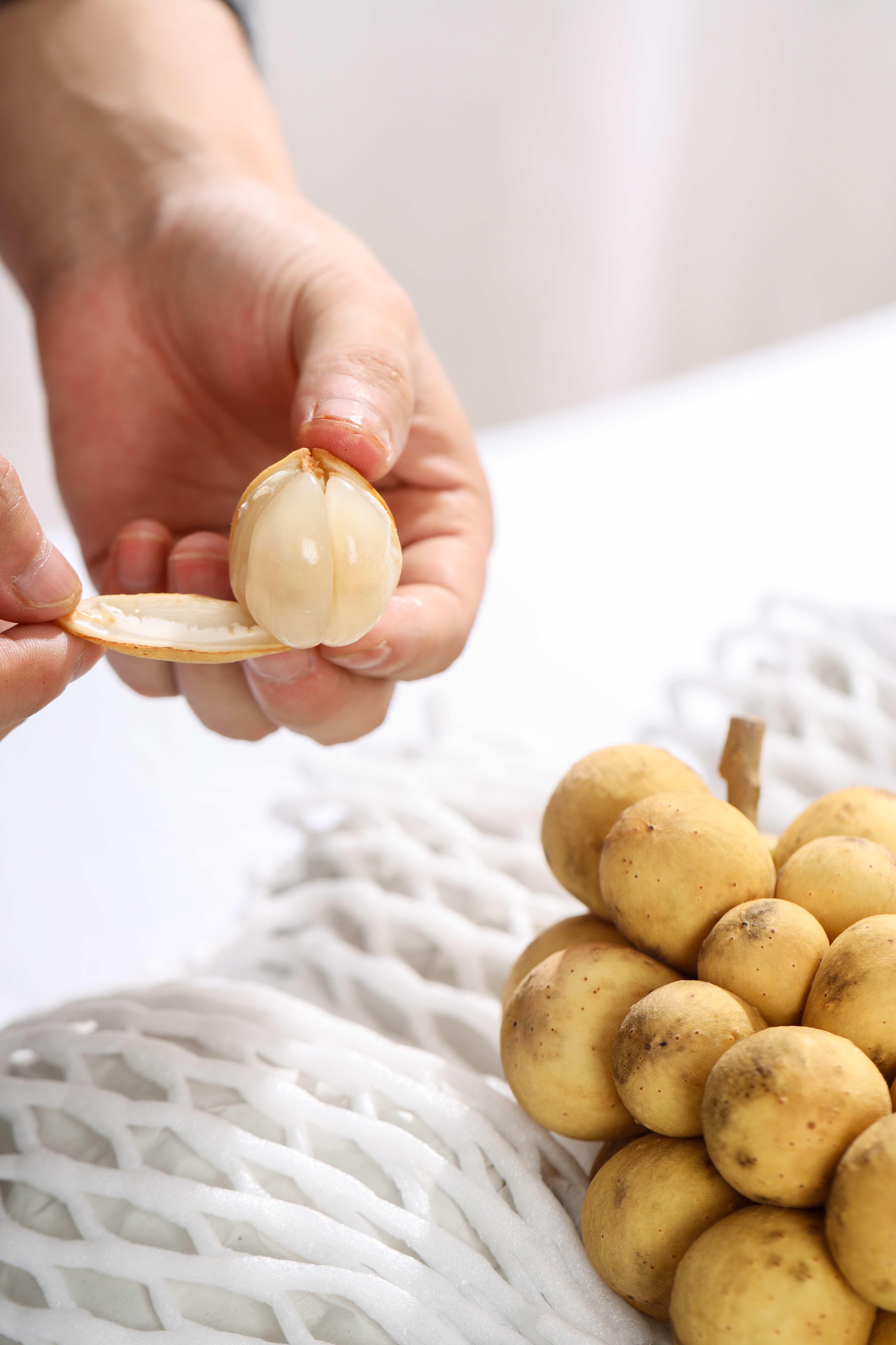 外形似微型番薯,果肉似微型山竹,剥皮即食,果肉浊白,味道醇美,甜中微酸,但果肉有质感,水分多,酸甜可口,据说是泰国王妃最爱的水果。