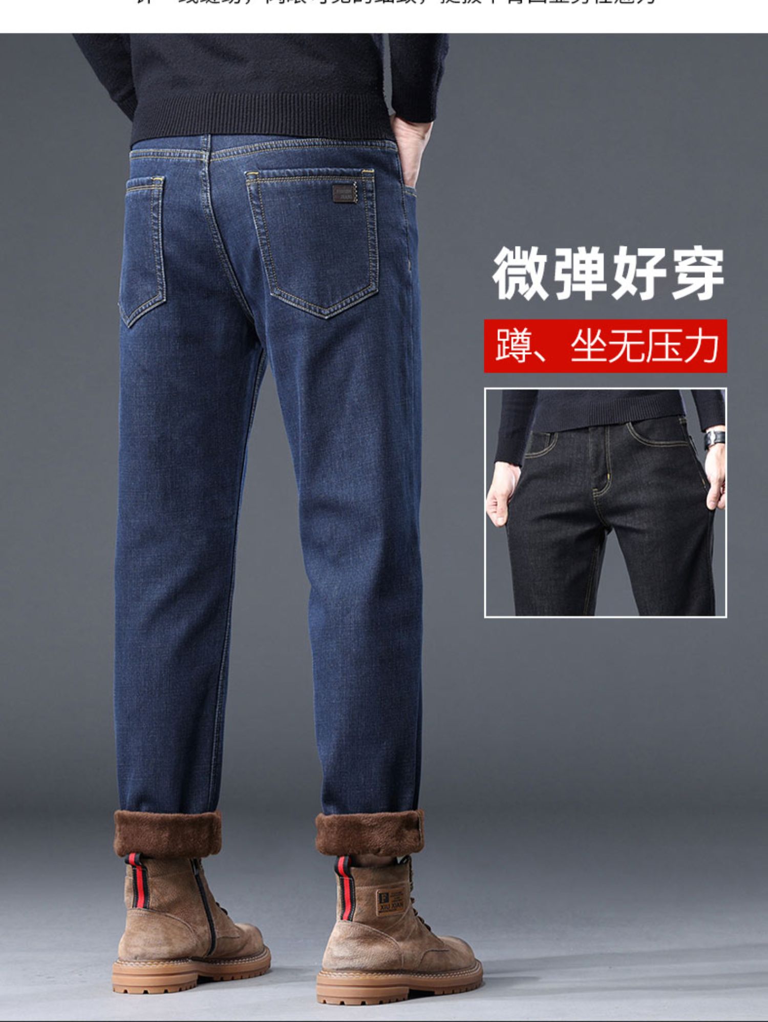 【加绒加厚】圣得西男士牛仔裤秋冬中青年弹力百搭长裤2362915879