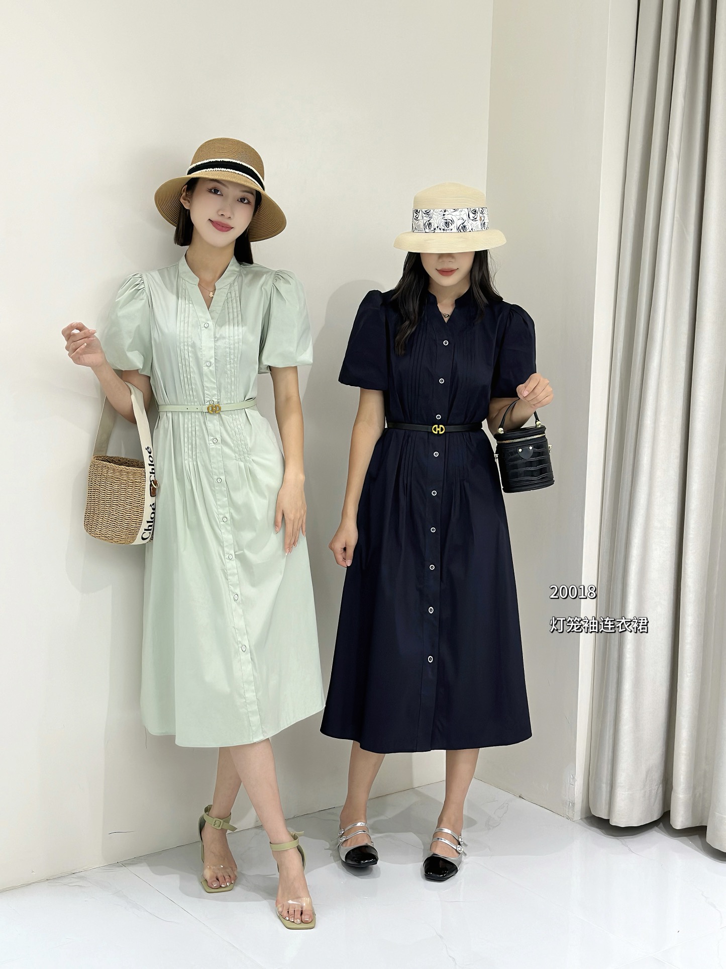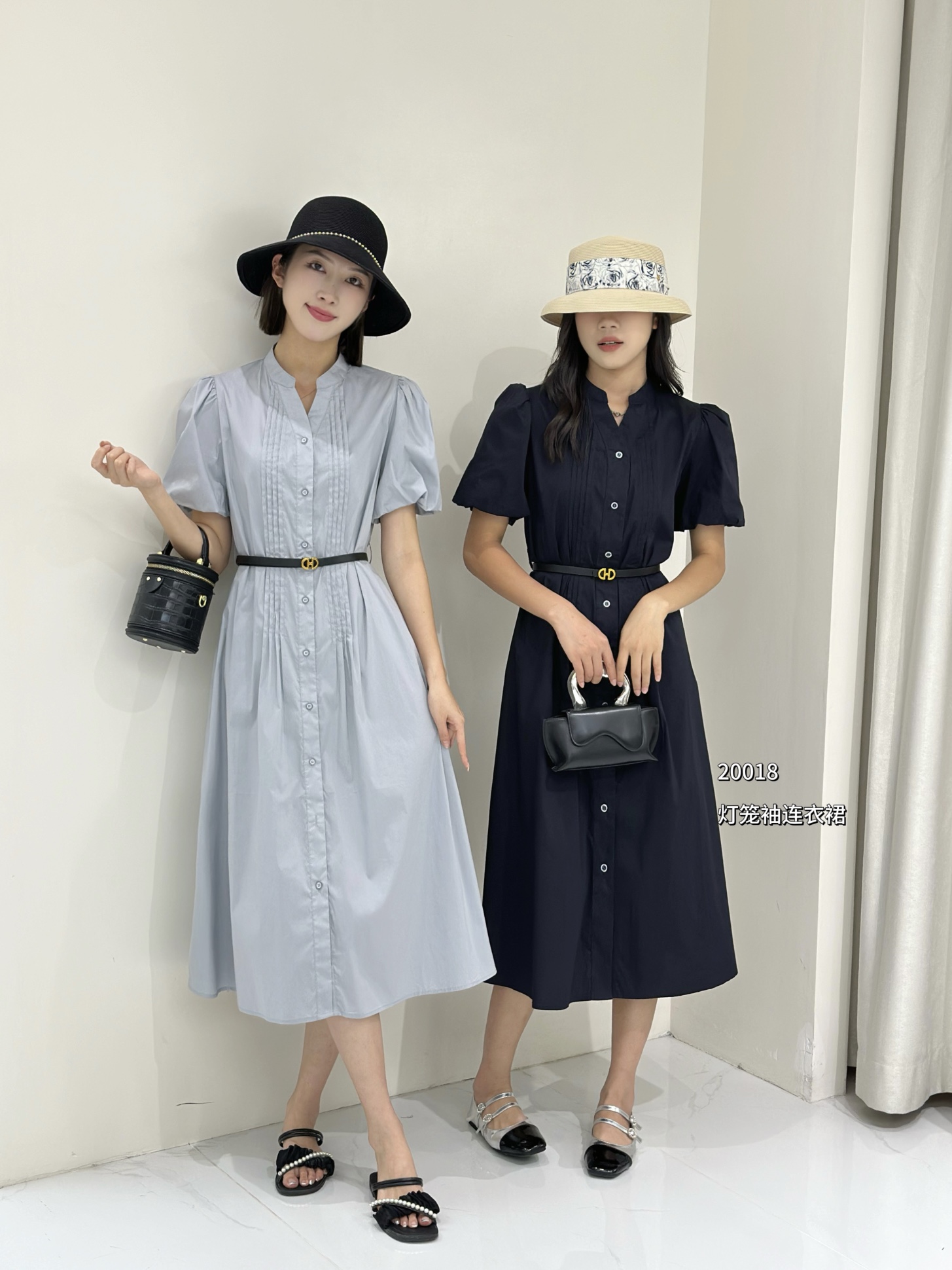 74L20018#灯笼袖衬衫连衣裙