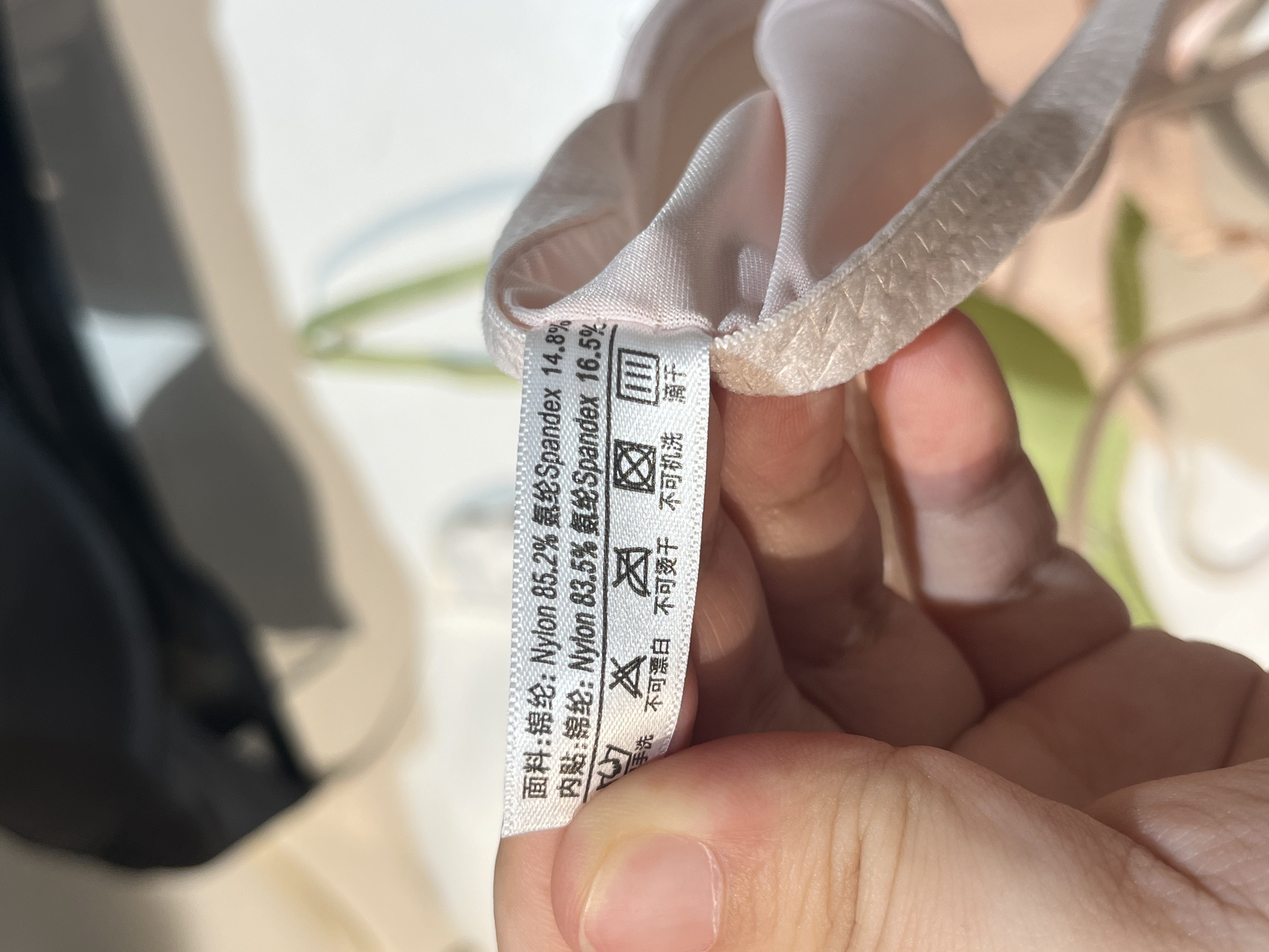 材质:罩面:76%锦纶 24%氨纶;罩里:85%锦纶 15%氨纶