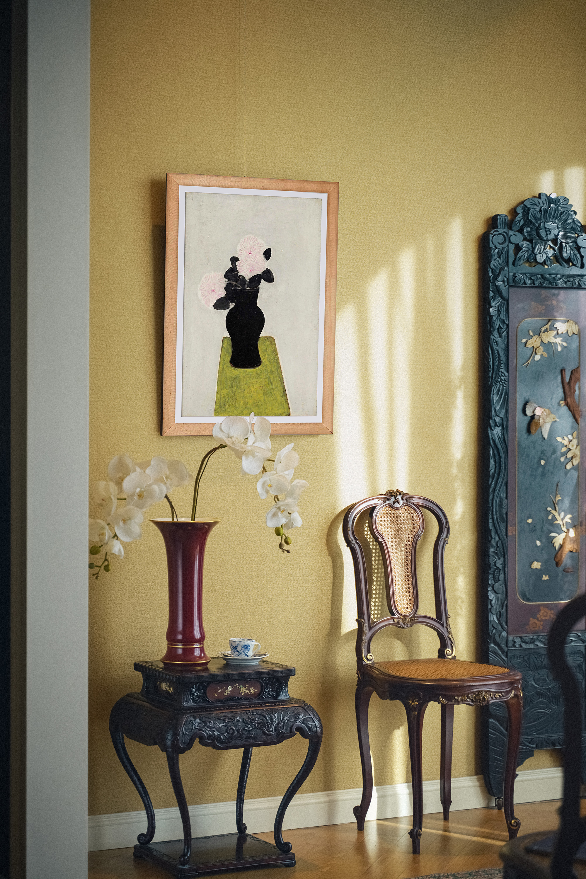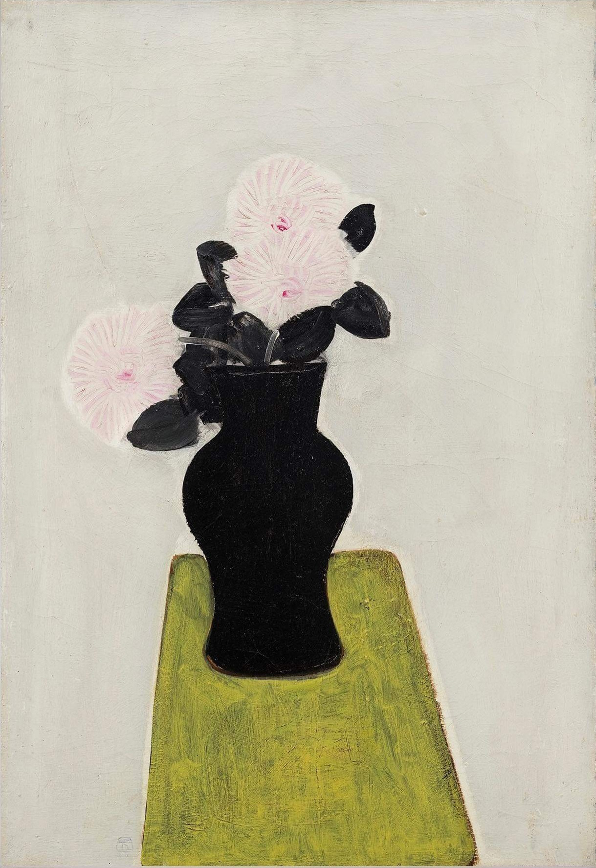 2018年中国台湾耿画廊授权制作出品著名旅法艺术家常玉签名创作限量版画作品《黑瓶与菊花》