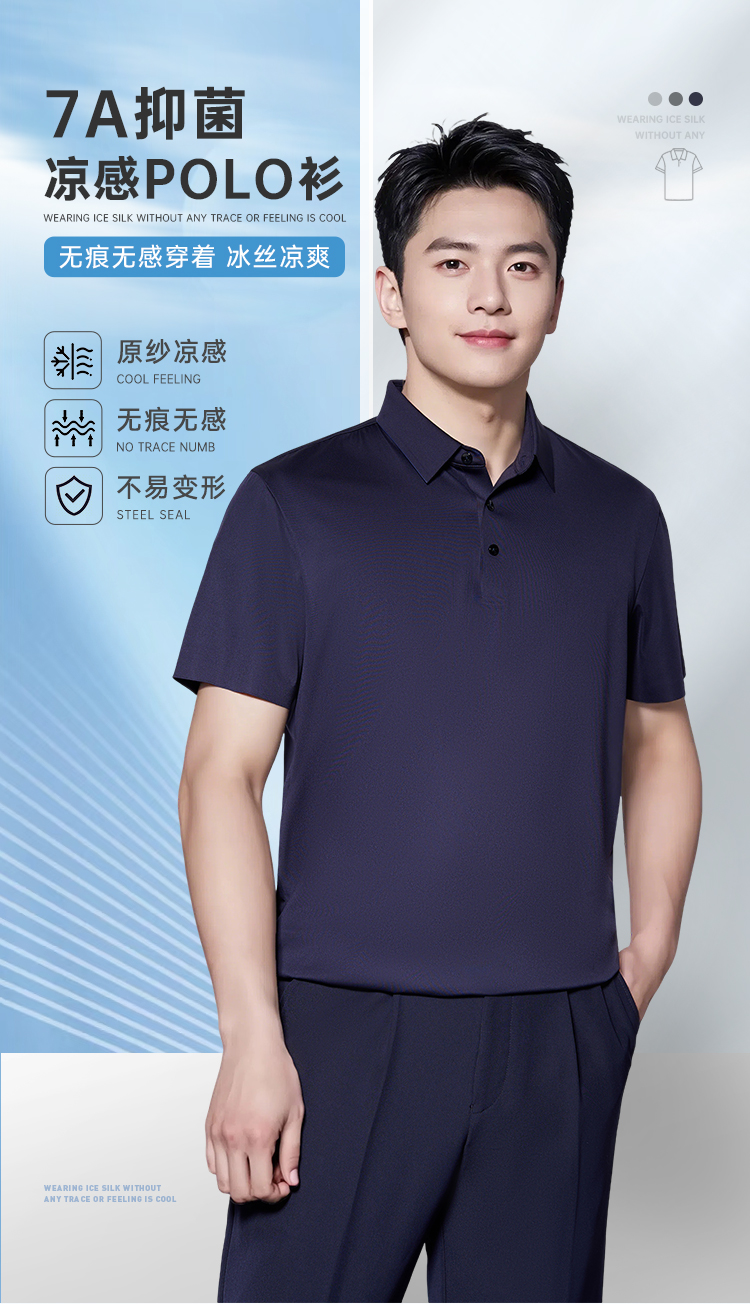 【冰丝凉感7A抑菌短袖polo衫】无痕压胶通勤T恤商务休闲半袖上衣LZ502