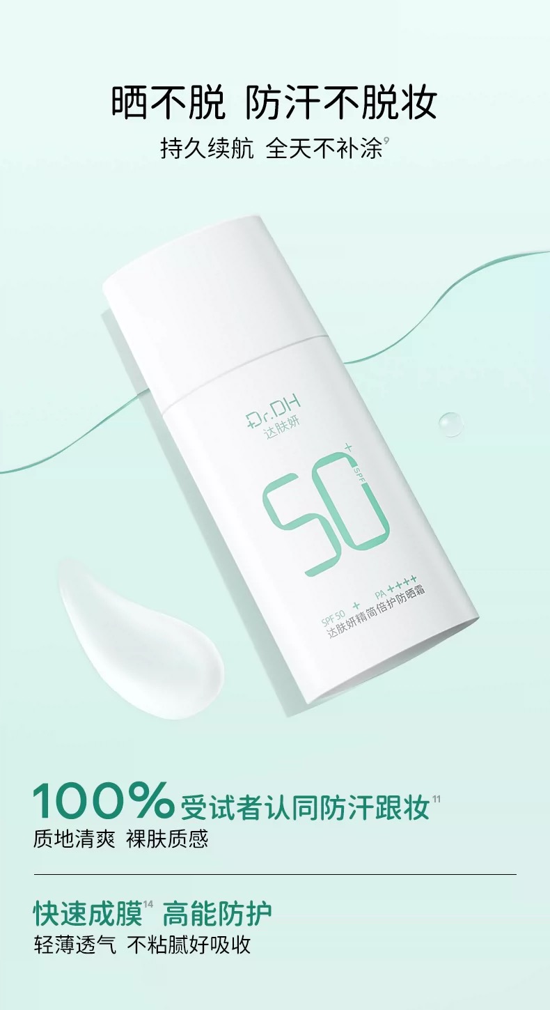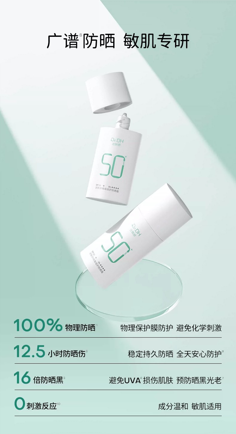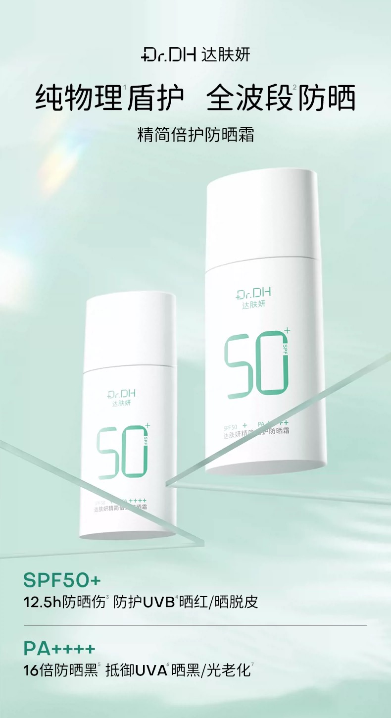达肤妍【新品】精简倍护防晒霜保湿舒缓物理防晒温和不粘腻敏肌80g+赠送10g