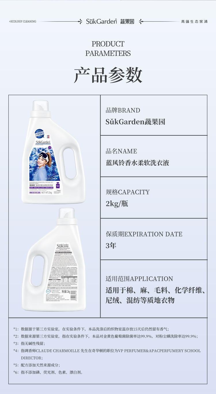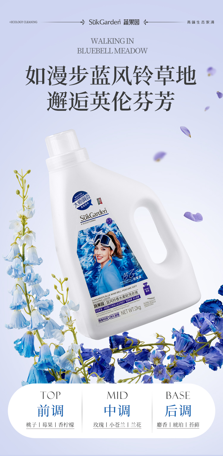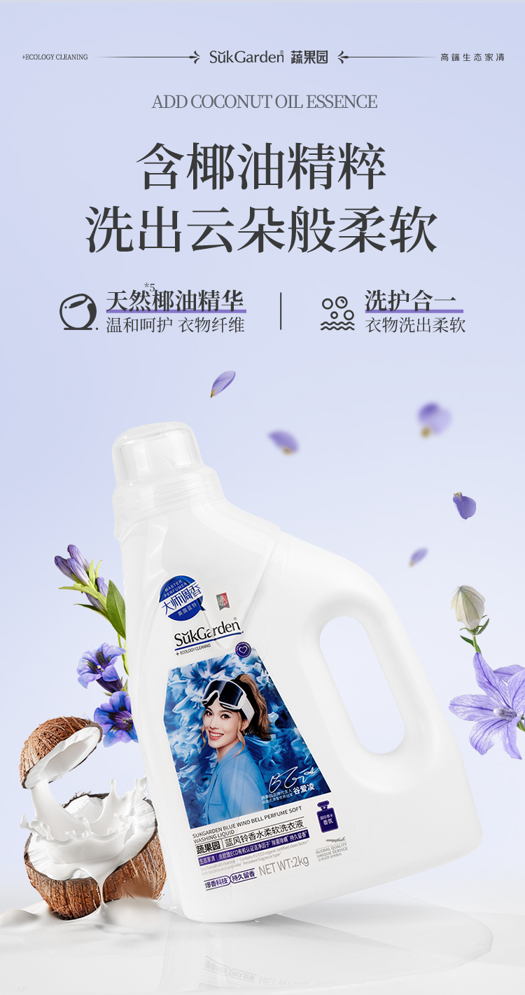 【拍2瓶69元(新款蓝瓶白瓶随机发)】蔬果园蓝风铃香水洗衣液强去污香氛除菌护色持久留香洗衣液-蔬果园泓新仓发