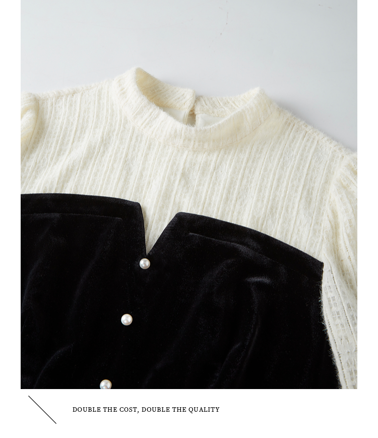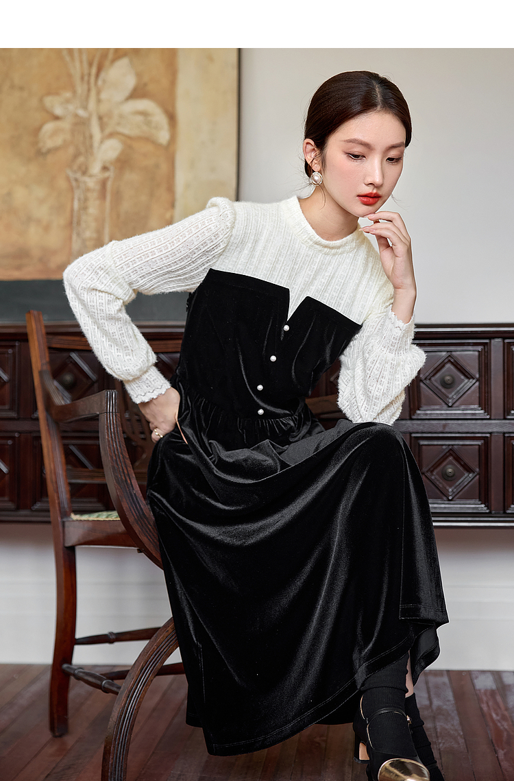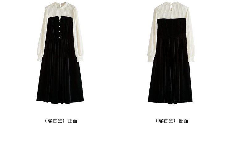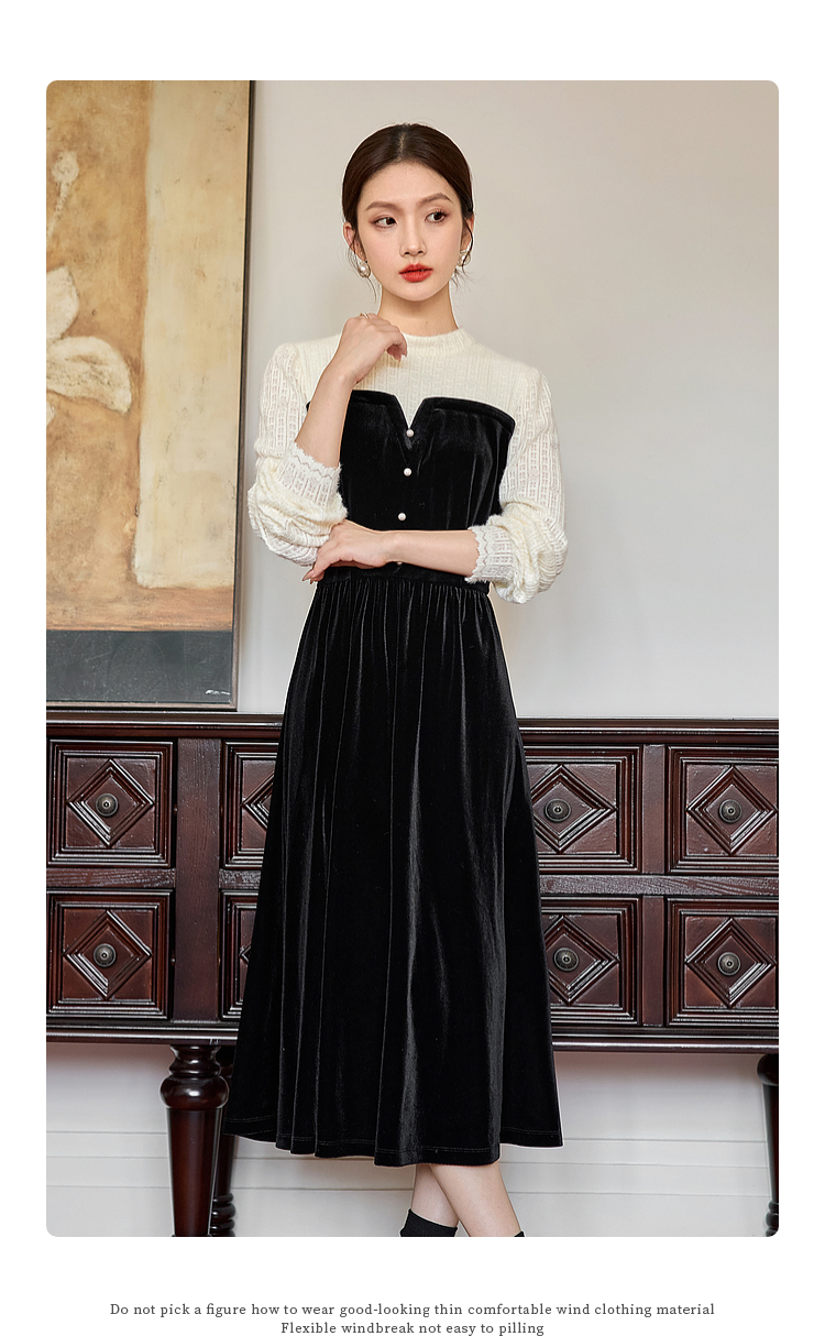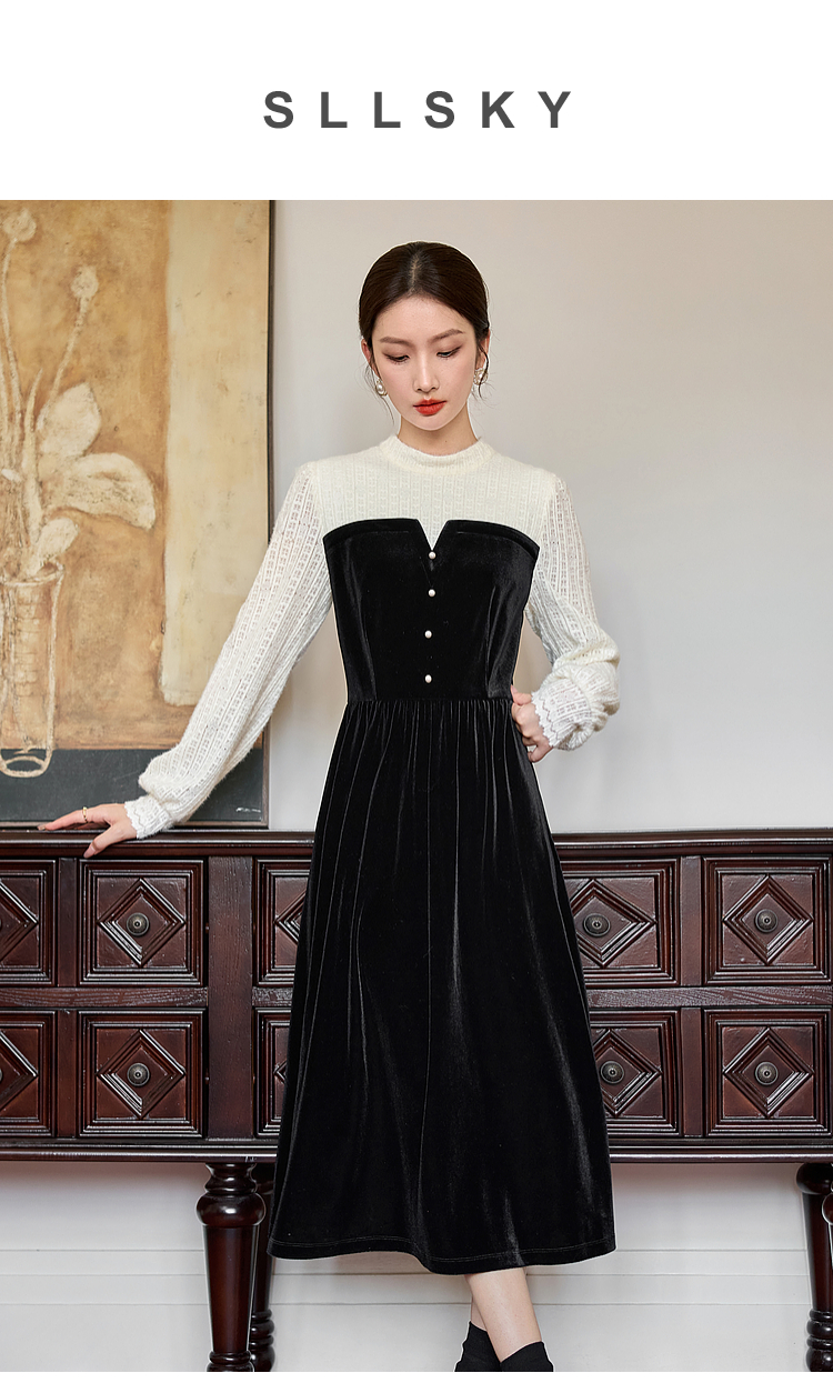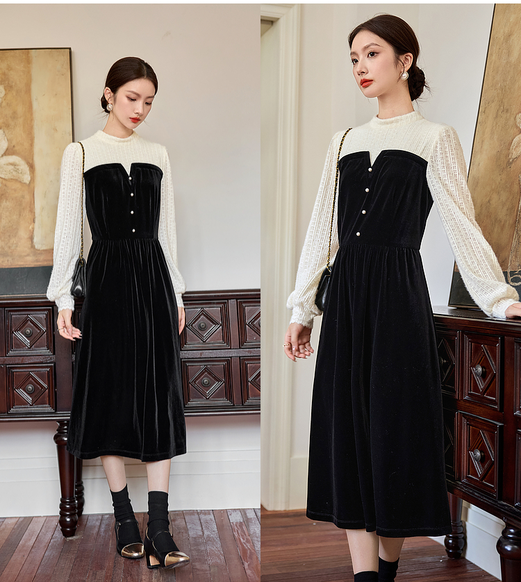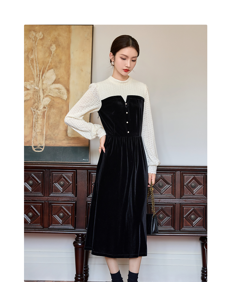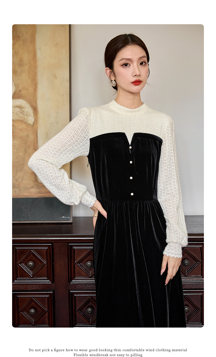 【年终特卖】熙世界2025秋冬新款蕾丝拼接丝绒假两件连衣裙女法式赫本风裙子