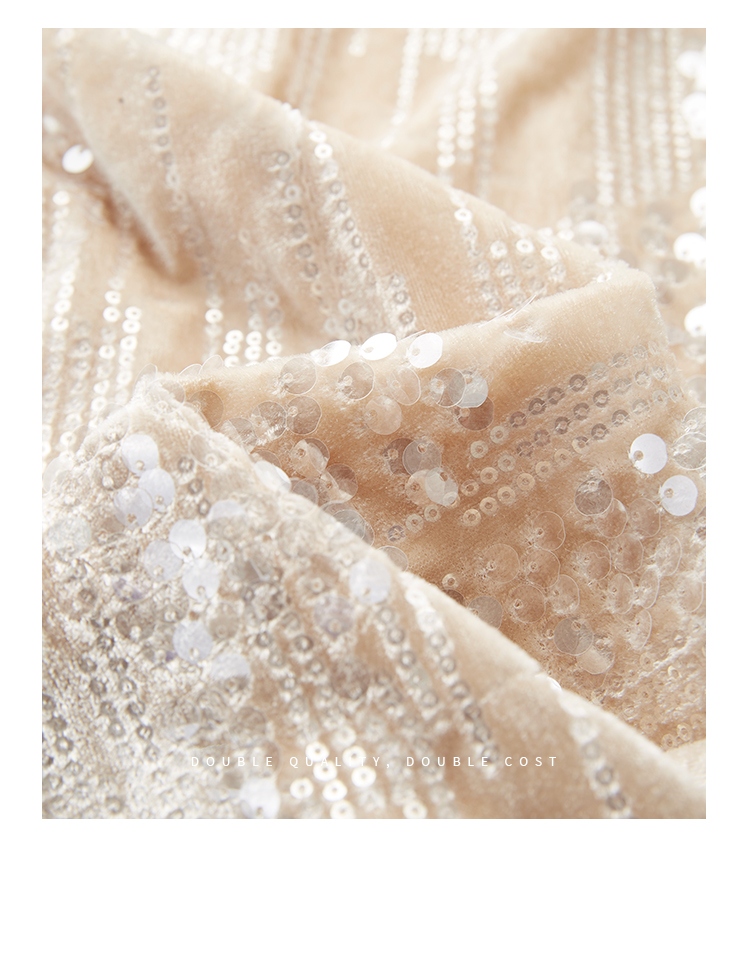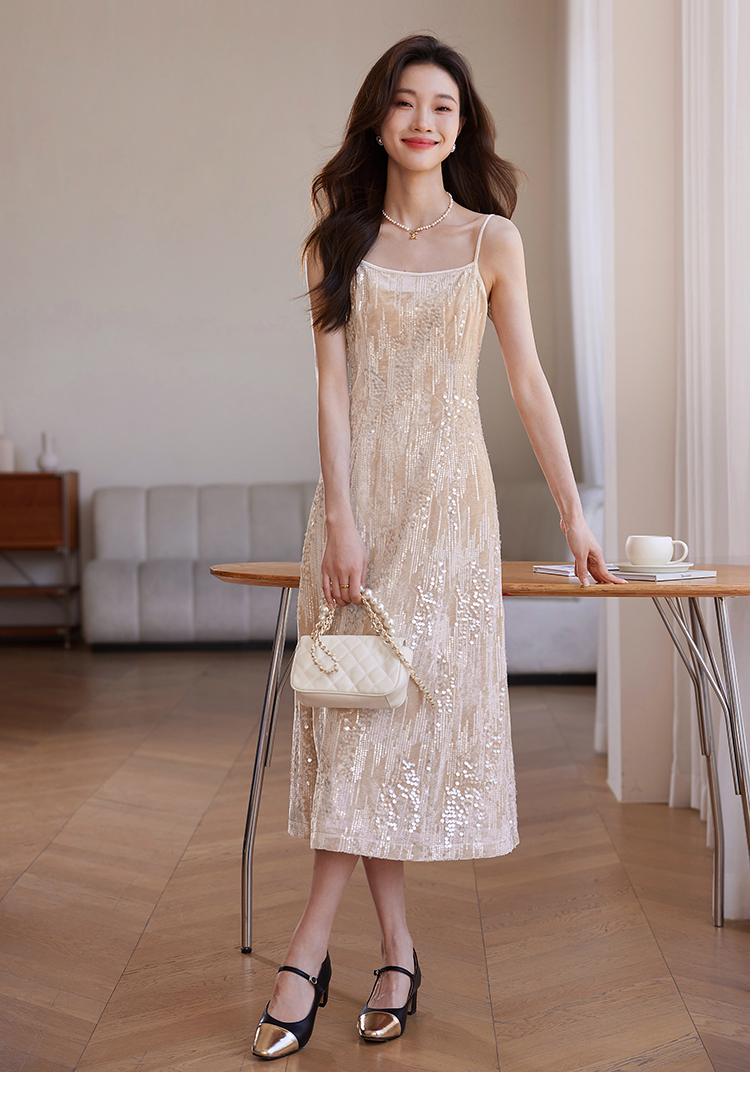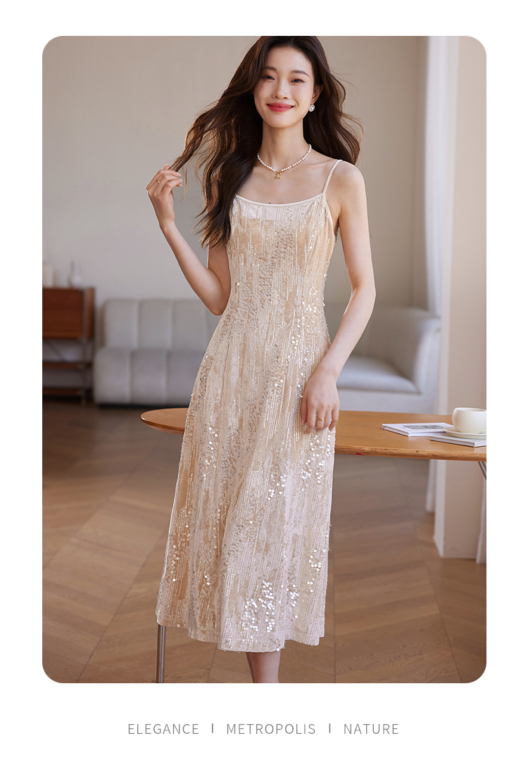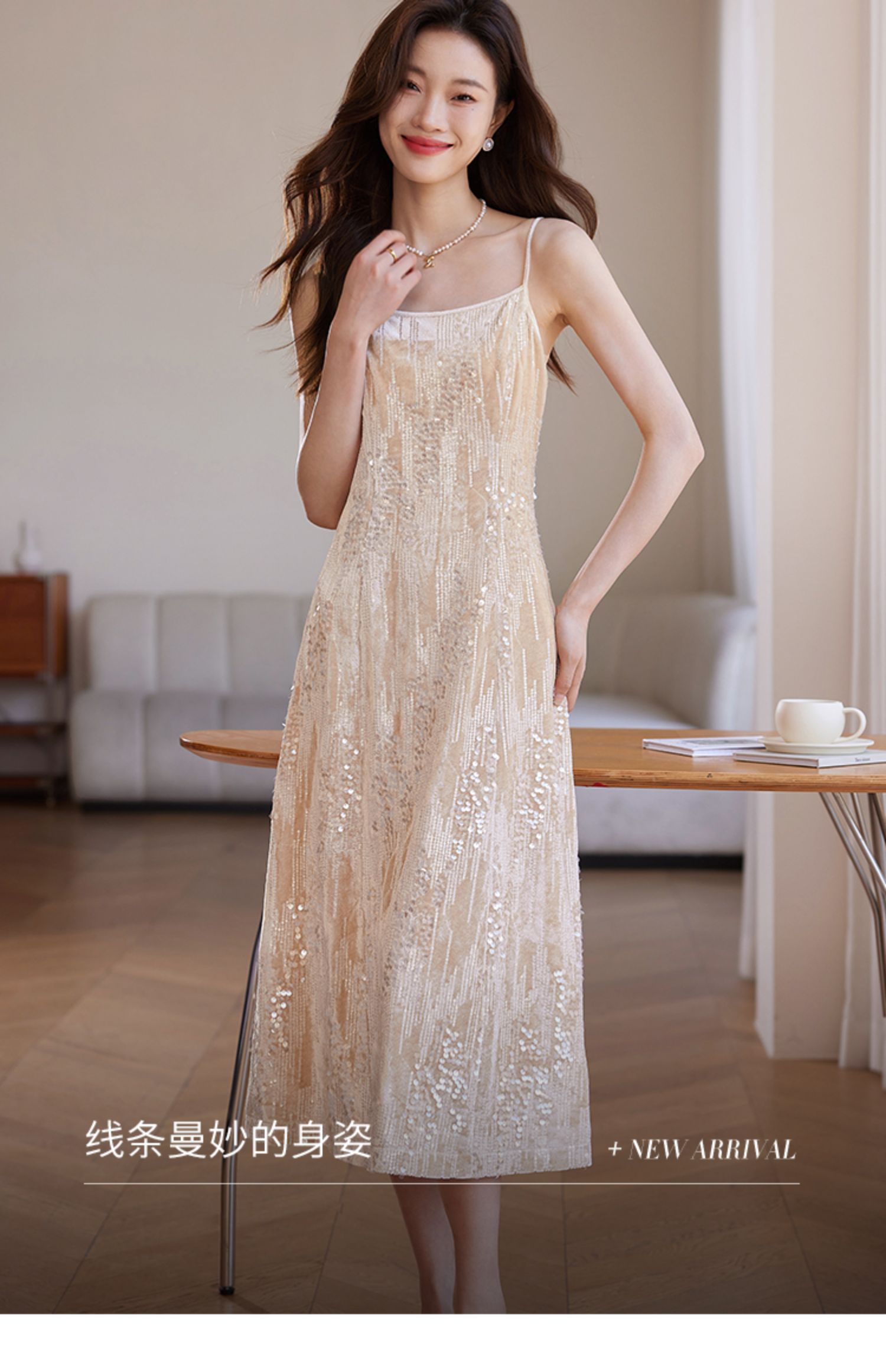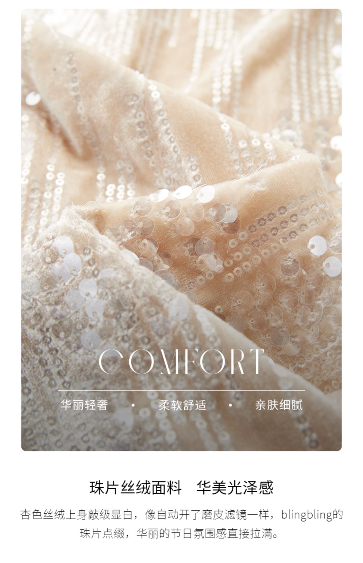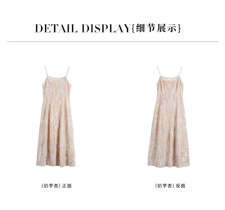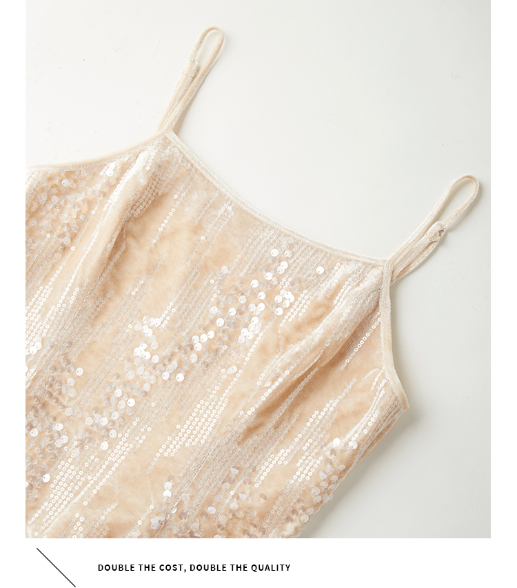 【专属特价】熙世界法式珠片亮片丝绒吊带连衣裙女秋冬气质名媛宴会晚礼服长裙
