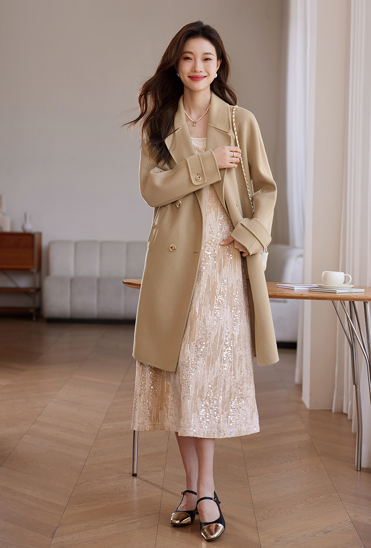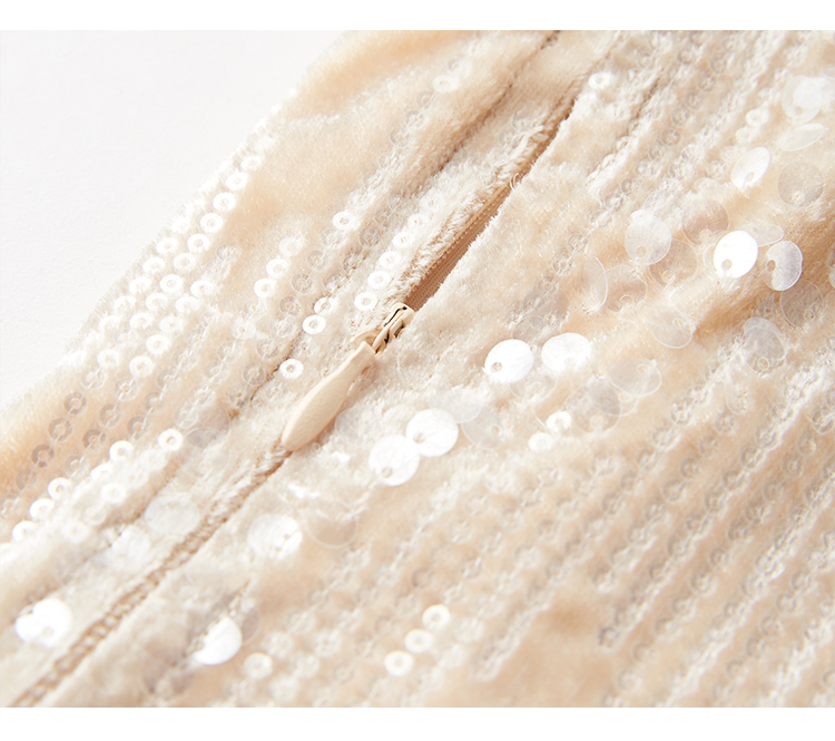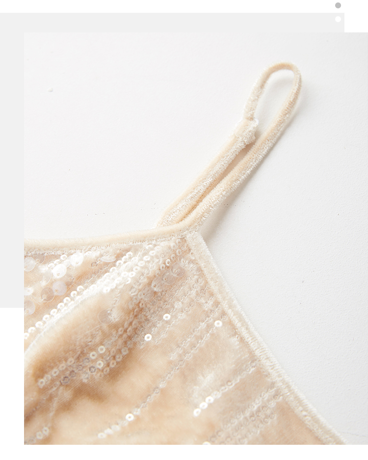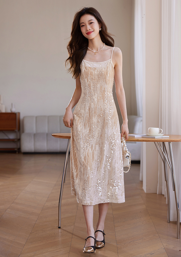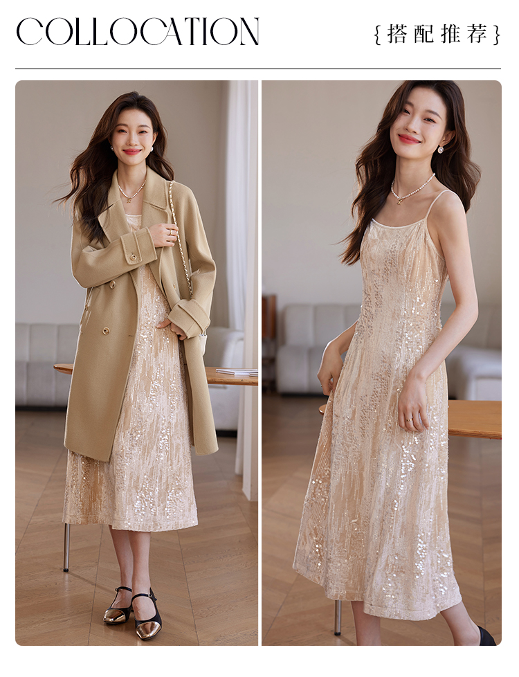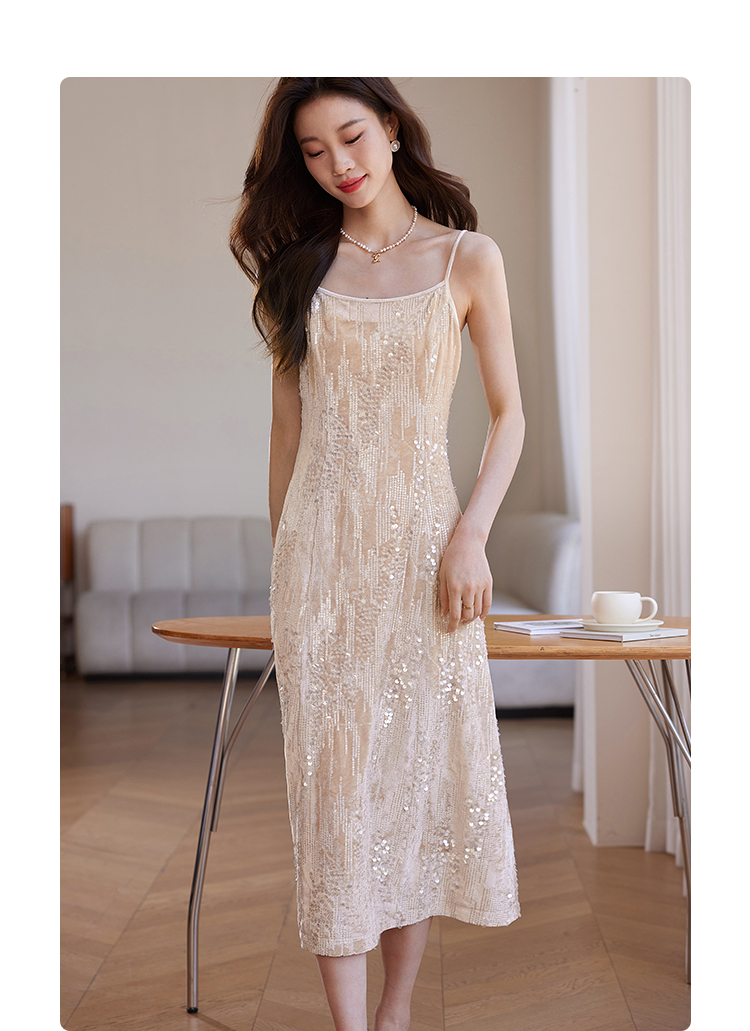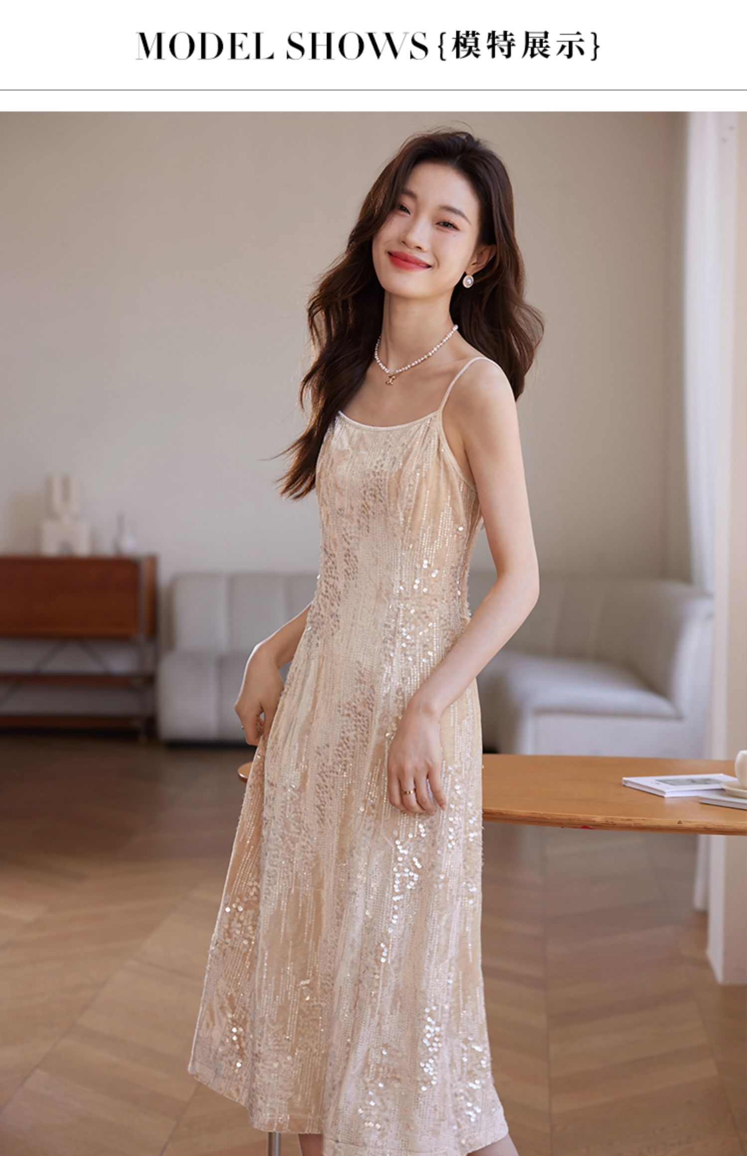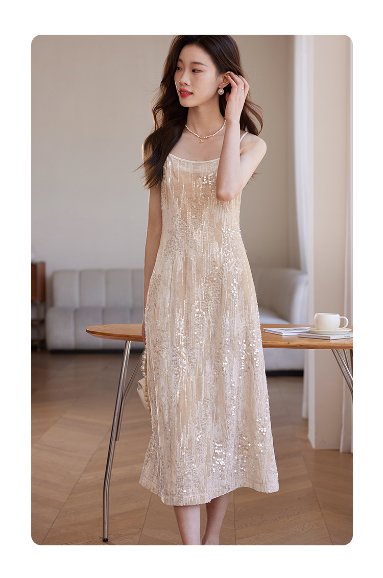 【专属特价】熙世界法式珠片亮片丝绒吊带连衣裙女秋冬气质名媛宴会晚礼服长裙