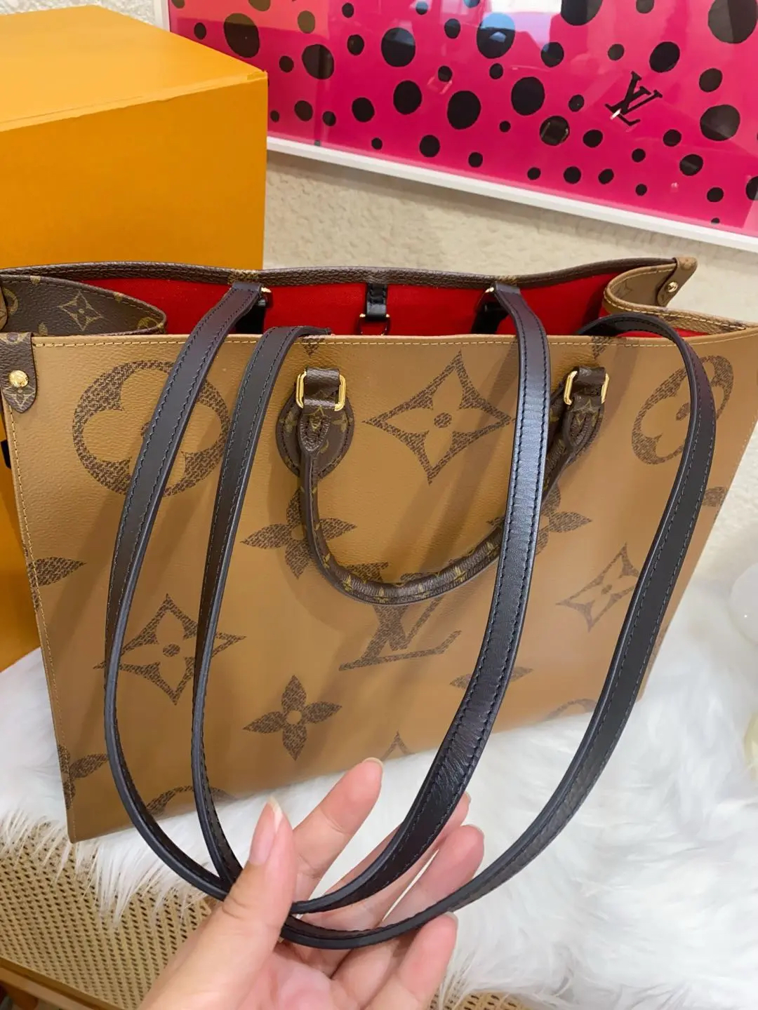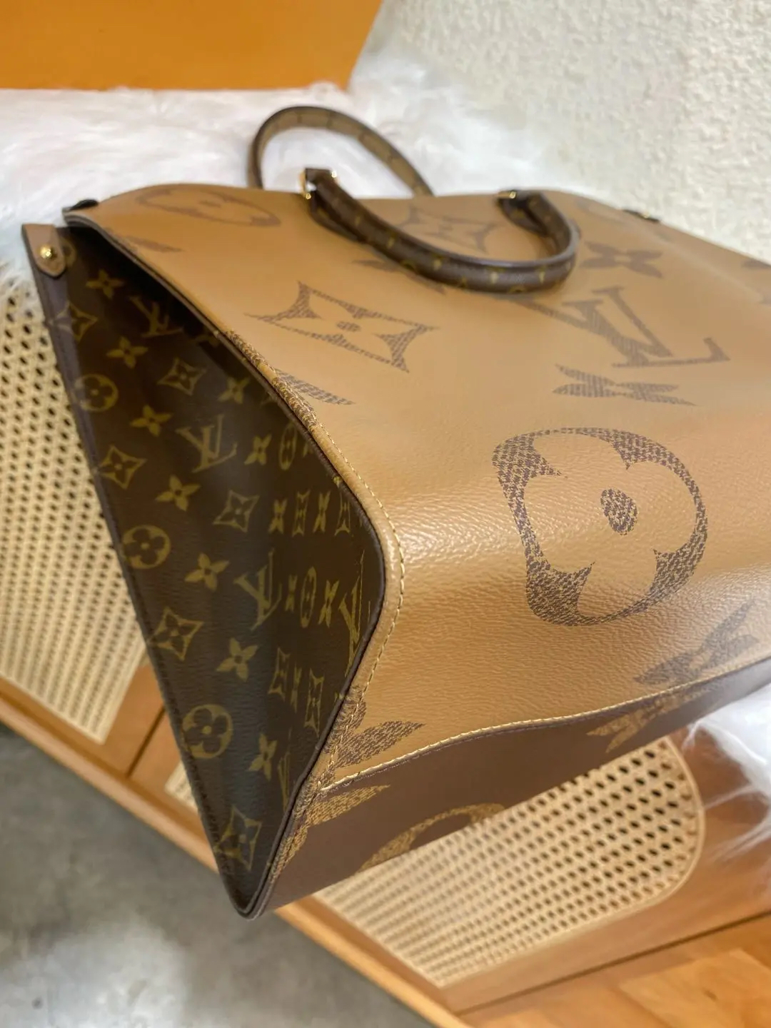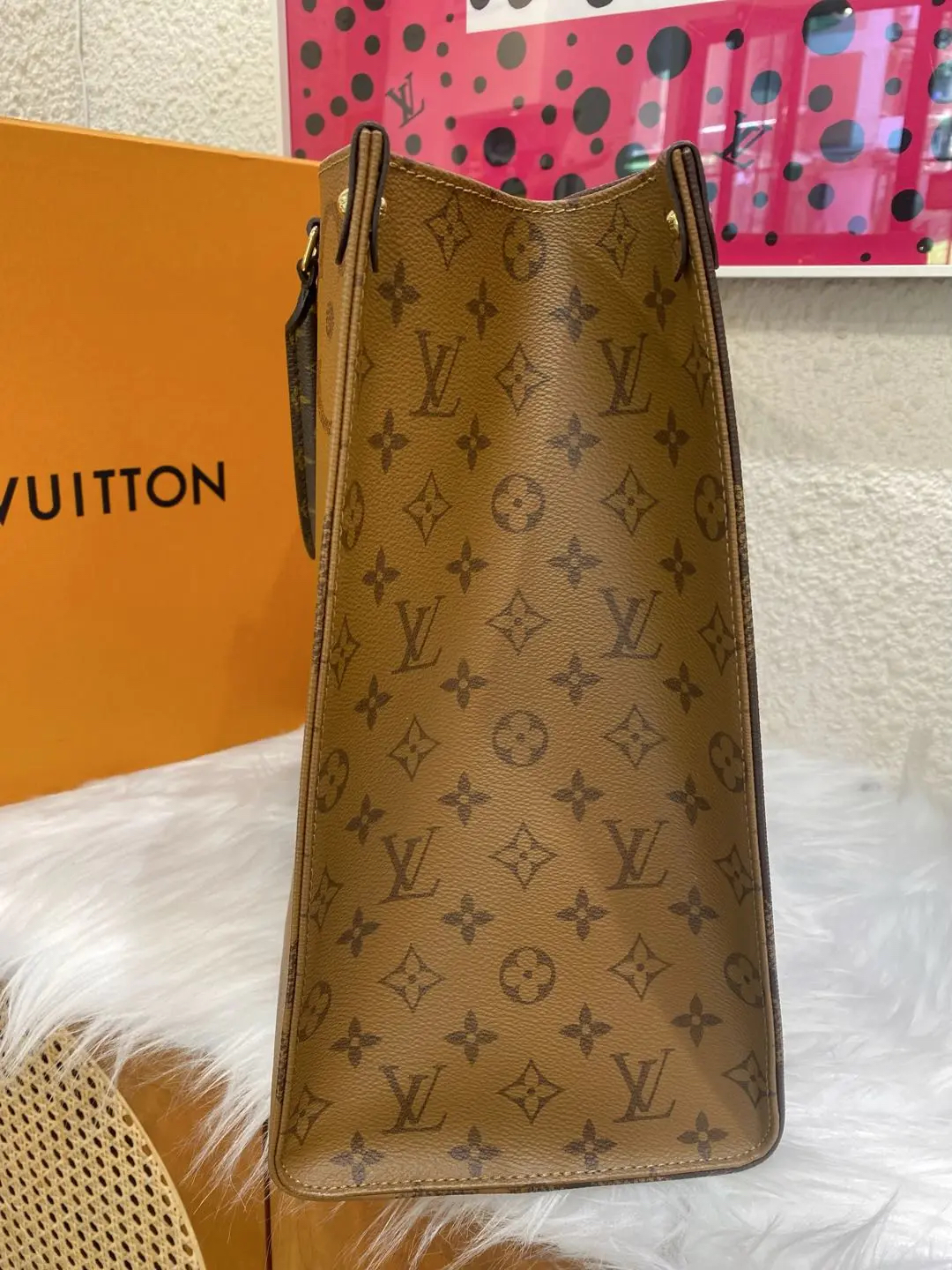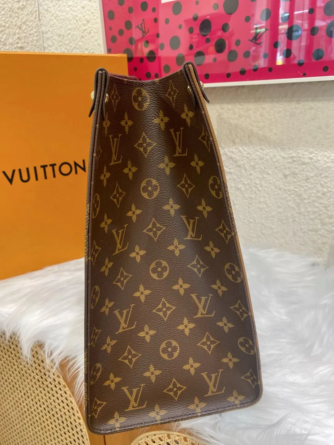 【商品详情】正品二手 Lv on the go 大号 老花拼色 托特包🥂 98新 42×34 全套配件:票 防尘袋 盒子。通勤必备