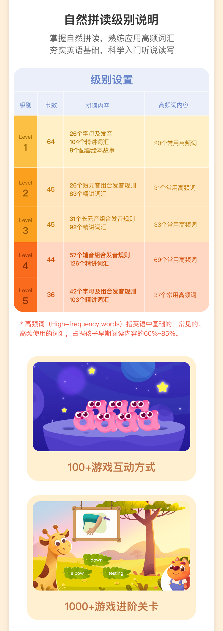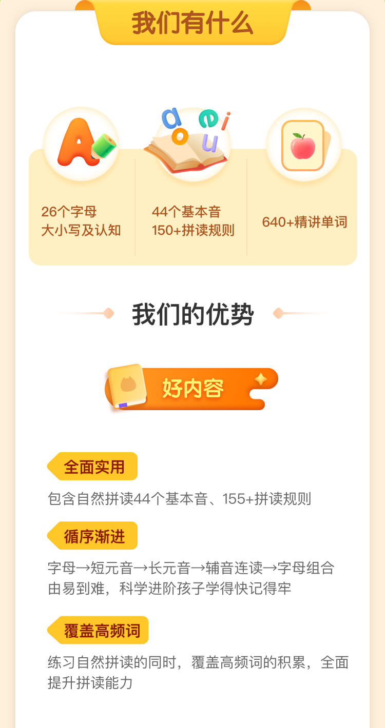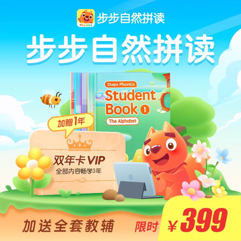 活动内容:步步自然拼读5个级别3年卡