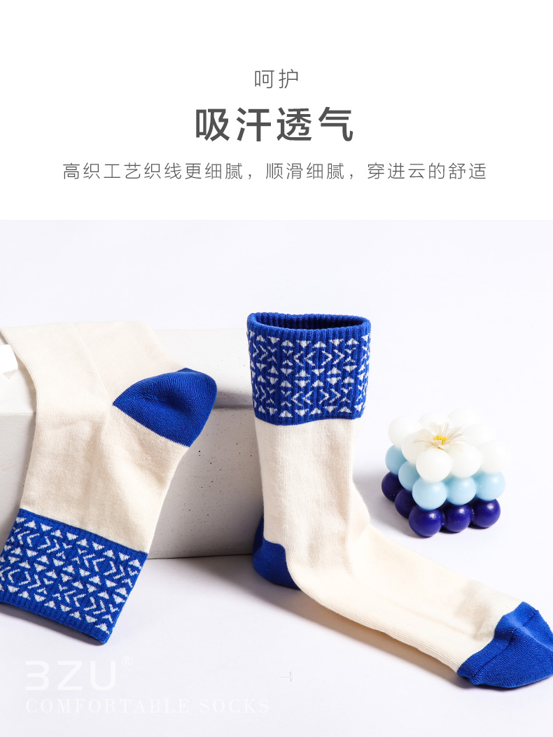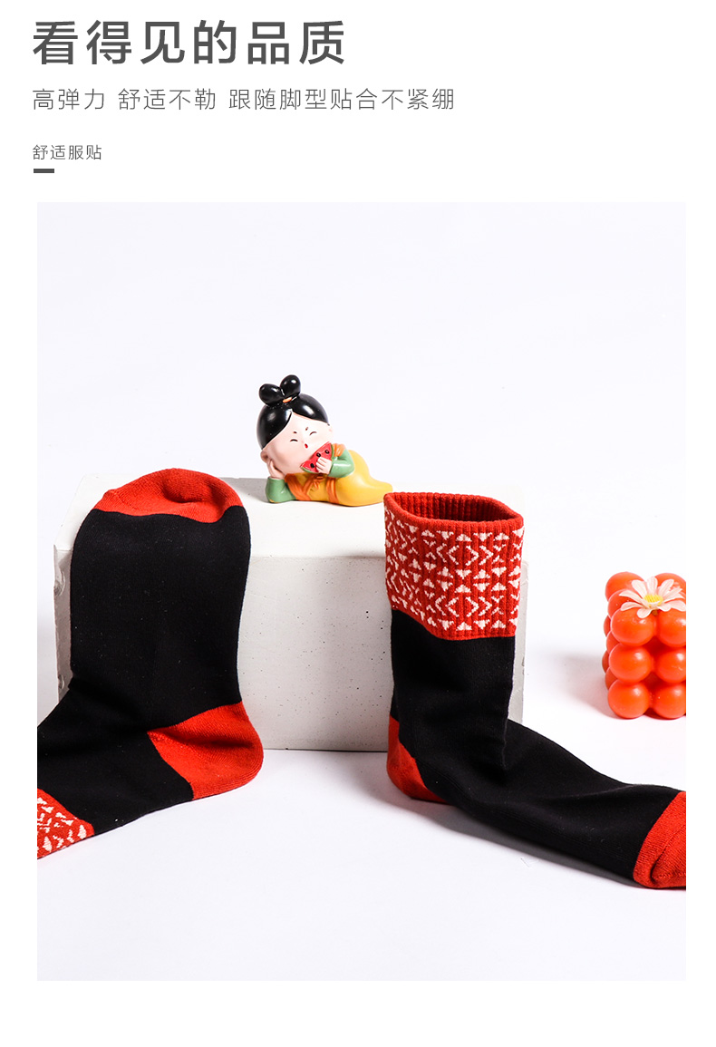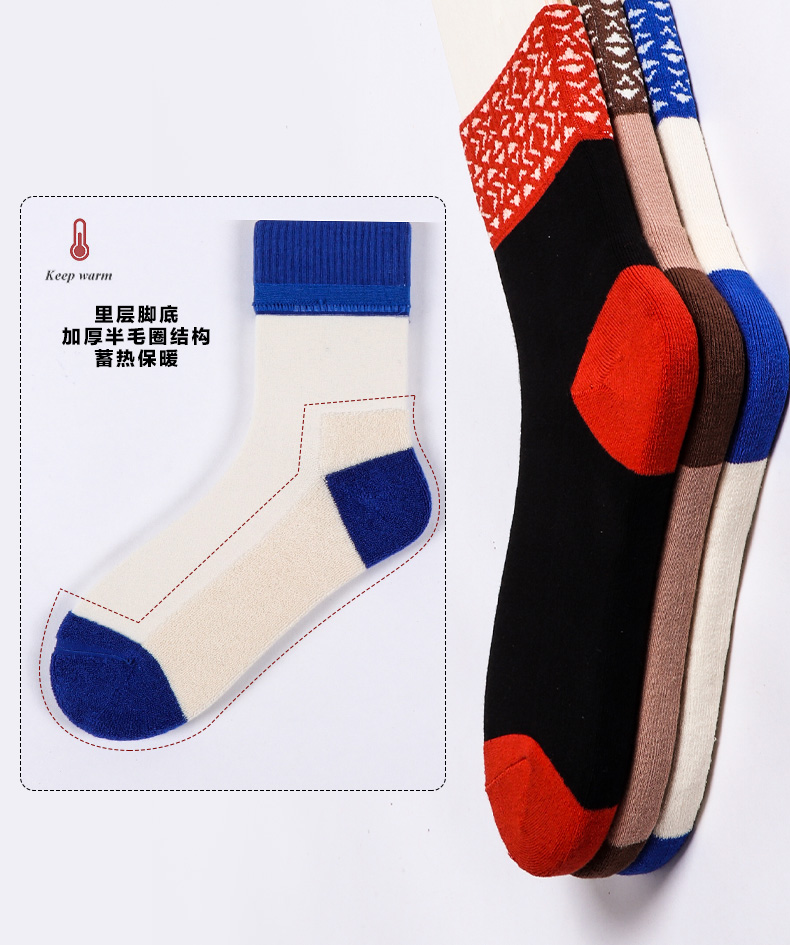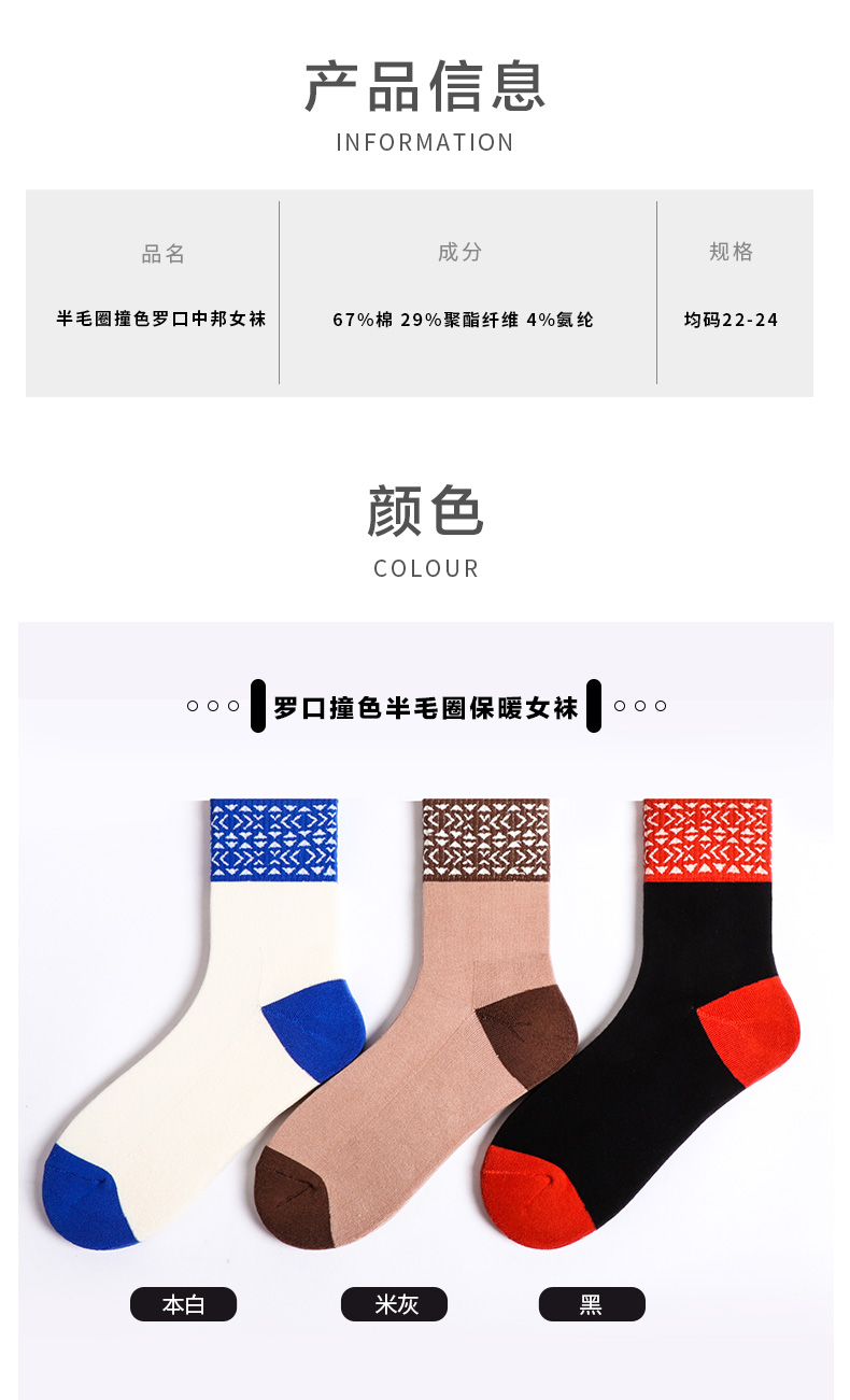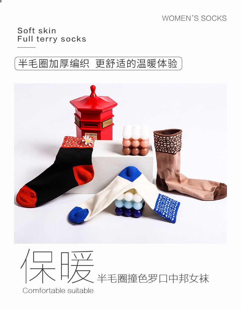 【任选6双99.5】足装秀秋冬女士春季中筒半毛圈撞色罗口中邦女袜