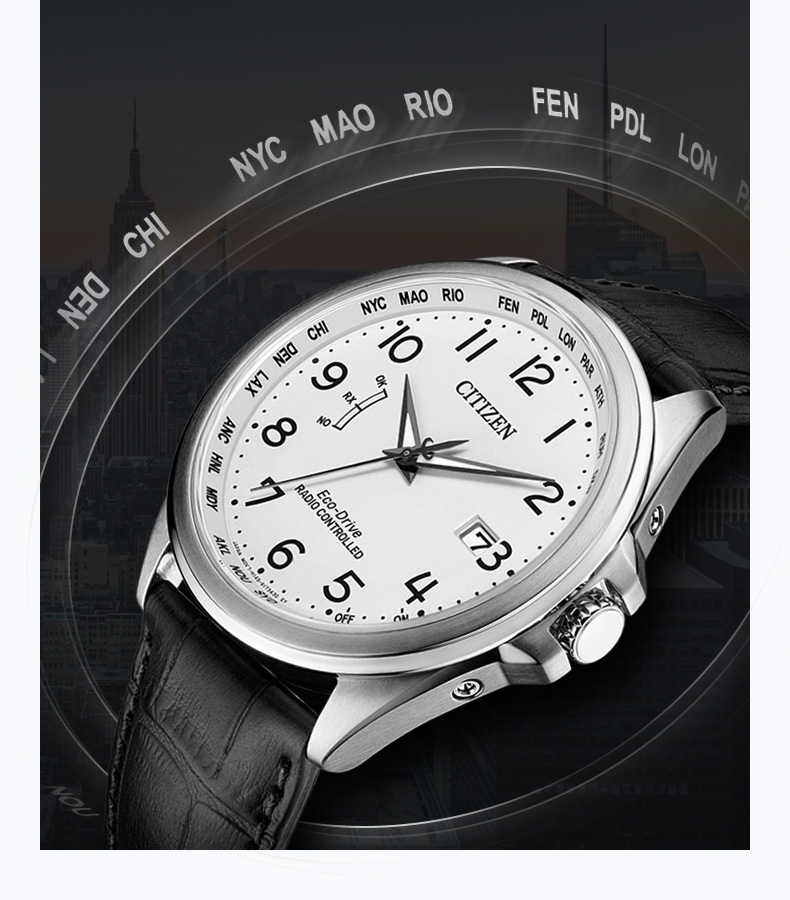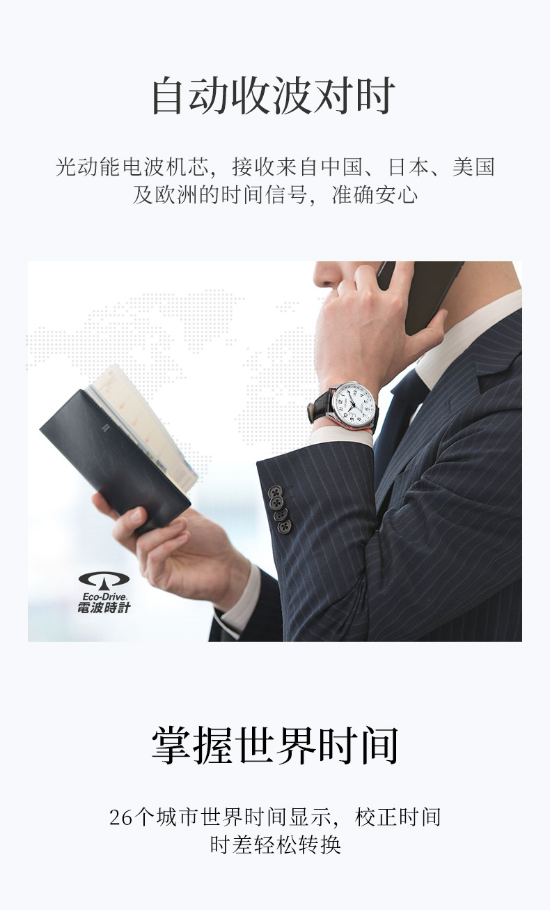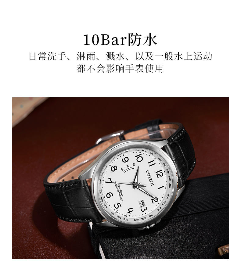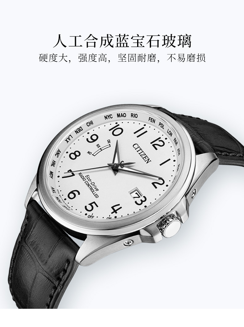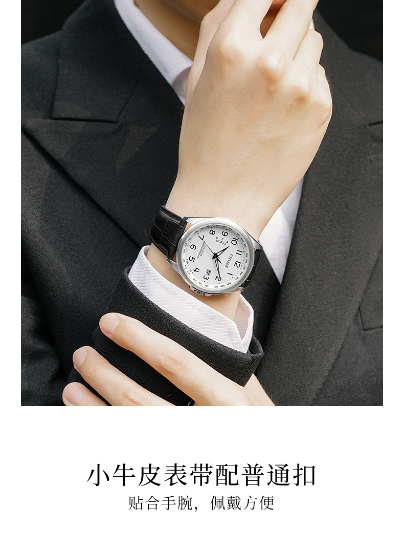 西铁城日本官方正品多局接收电波万年历光动能日历男表CB0250-17A