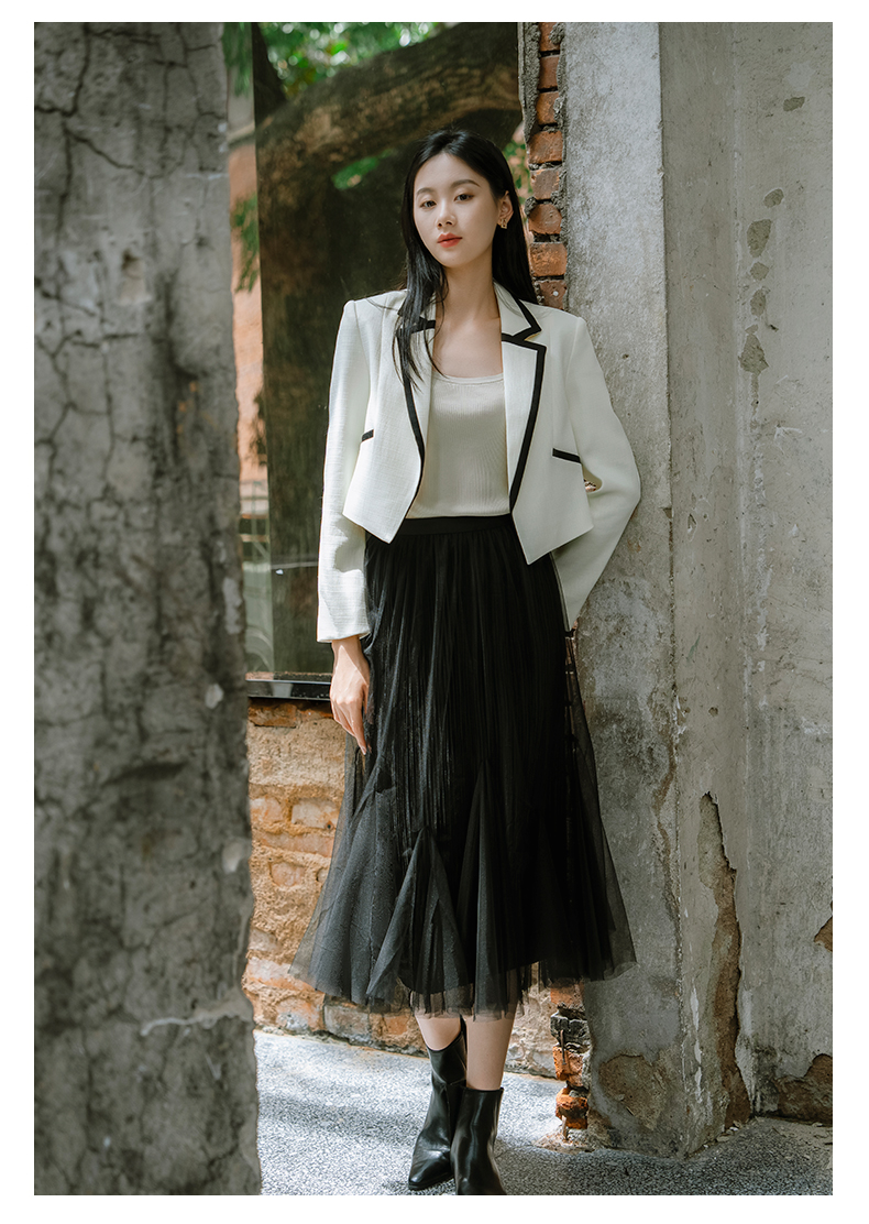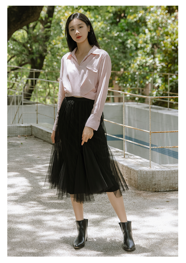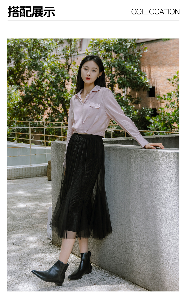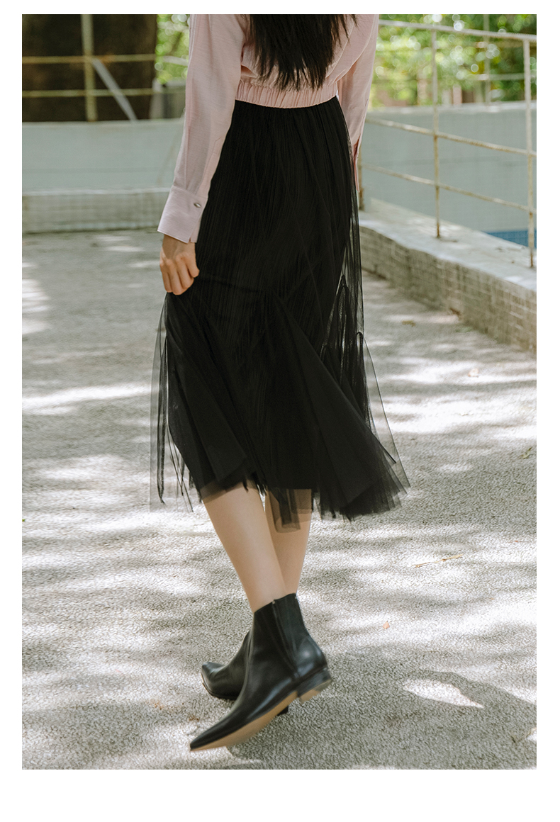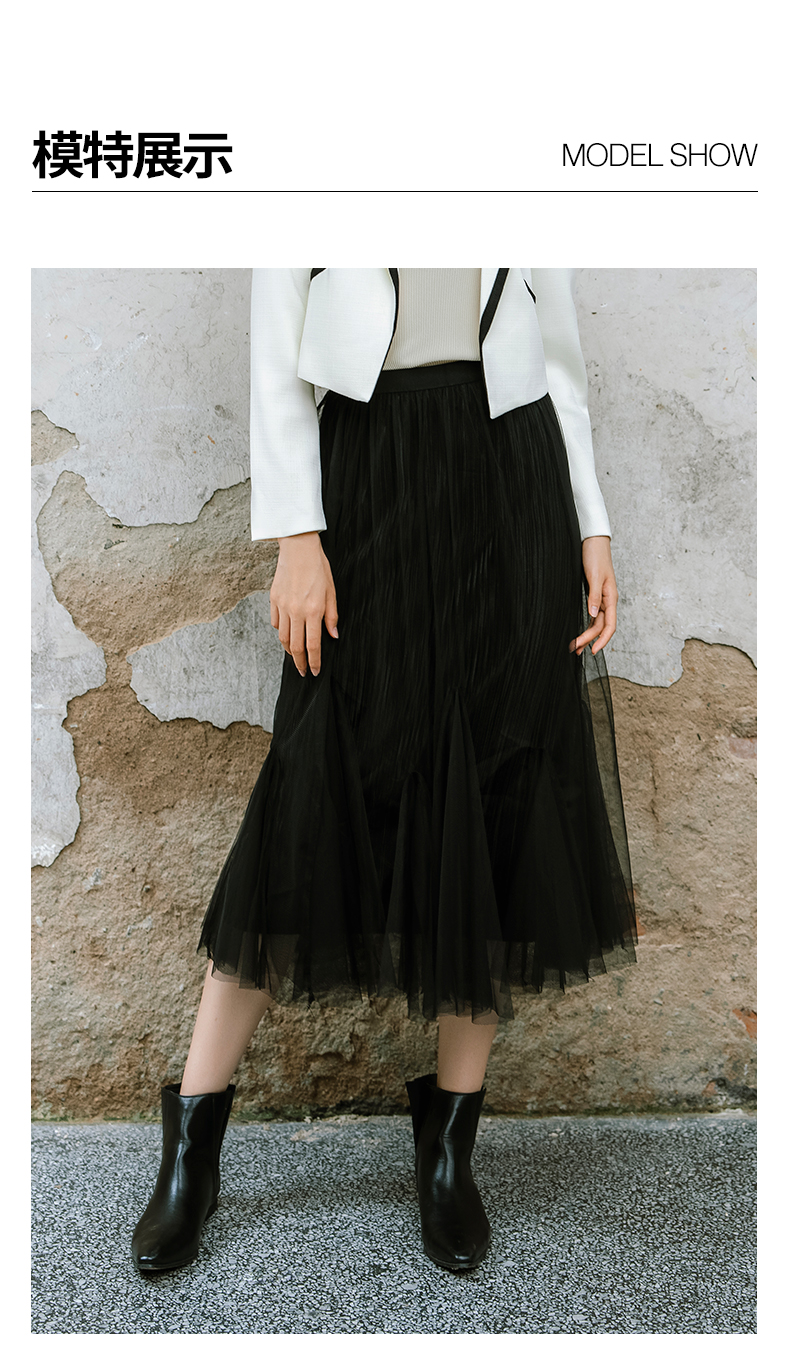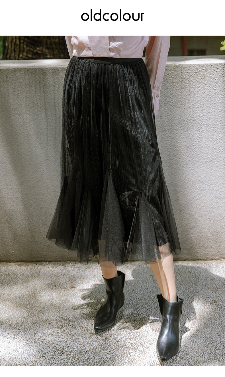 oldcolour春秋季新款通勤风时尚网纱百褶设计感半身裙女P320608A1
